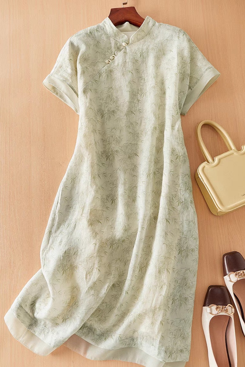 여름 요금 품격 슬림해 보이는 면 린넨 중국풍 개선 치파오 2026 여름 새로운 루즈핏 중간 길이 드레스
