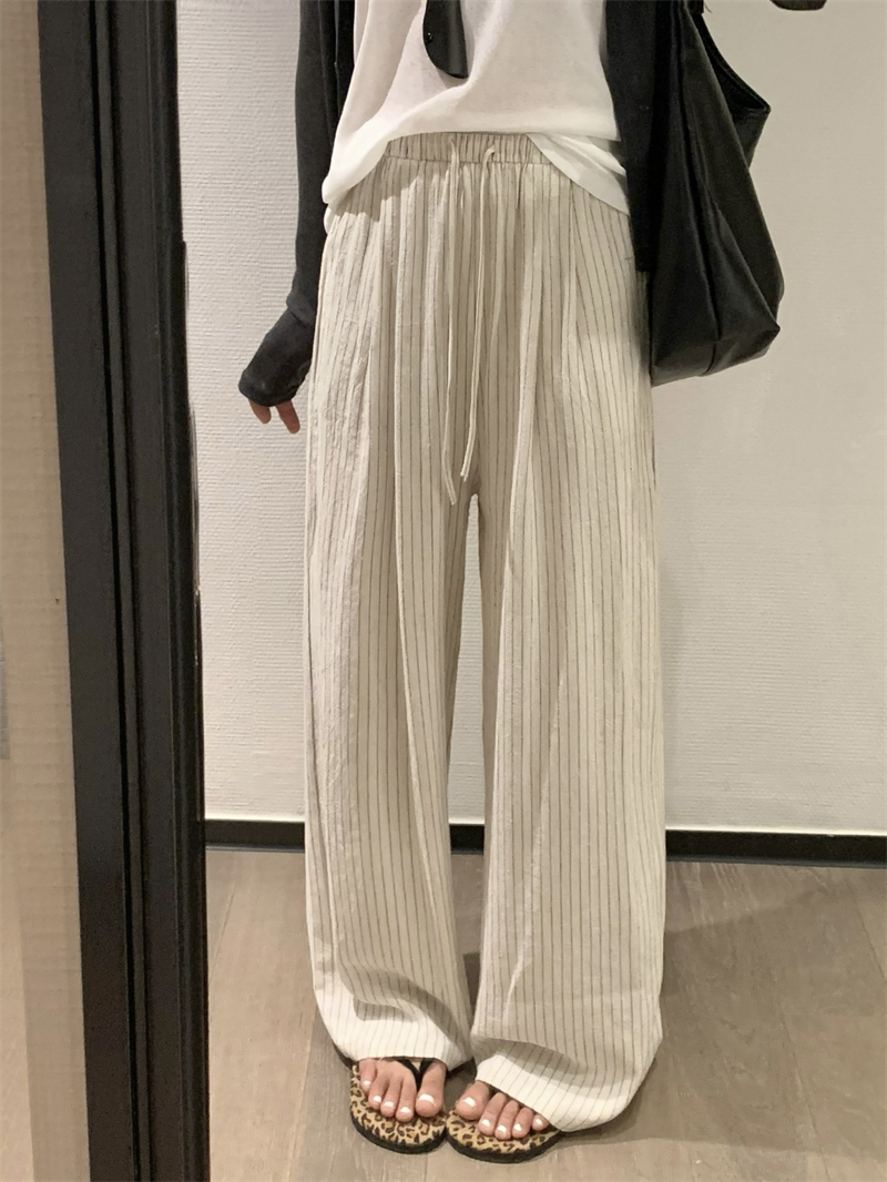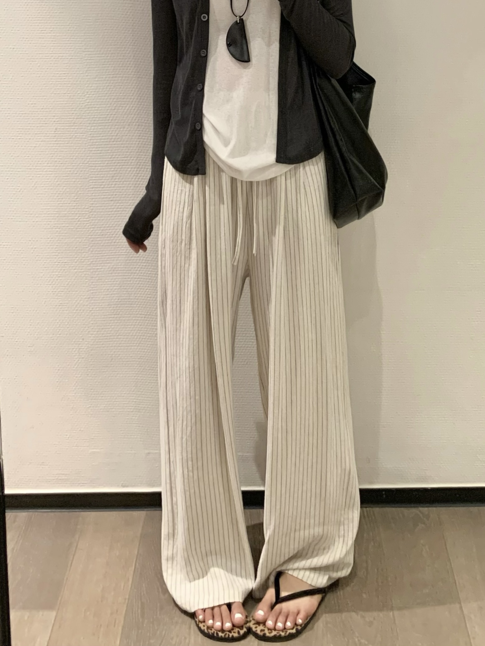 실사 정가 2026 새로운 한국 스타일 루즈핏 하이웨이스트 캐주얼 슬림해 보이는 면 린넨 핀 스트라이프 스트레이트 와이드 레그 팬츠