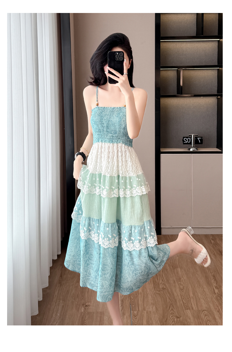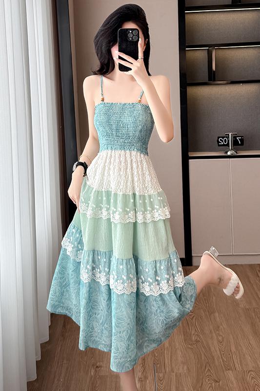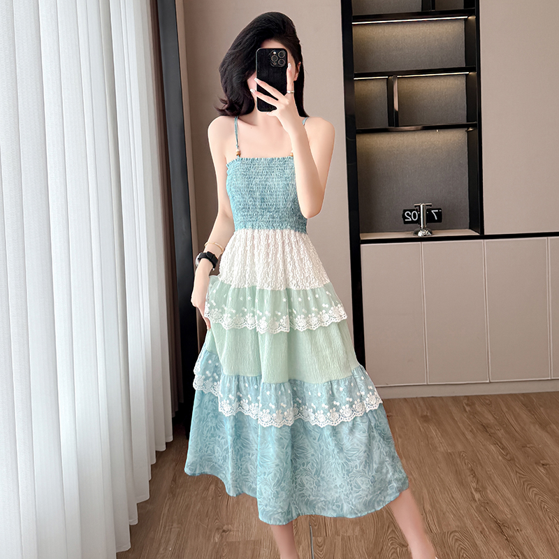 바다색 장미 차 휴식 프랑스식 드레스 2026 새로운 여성 여름 품격 쉬폰 슬립 드레스