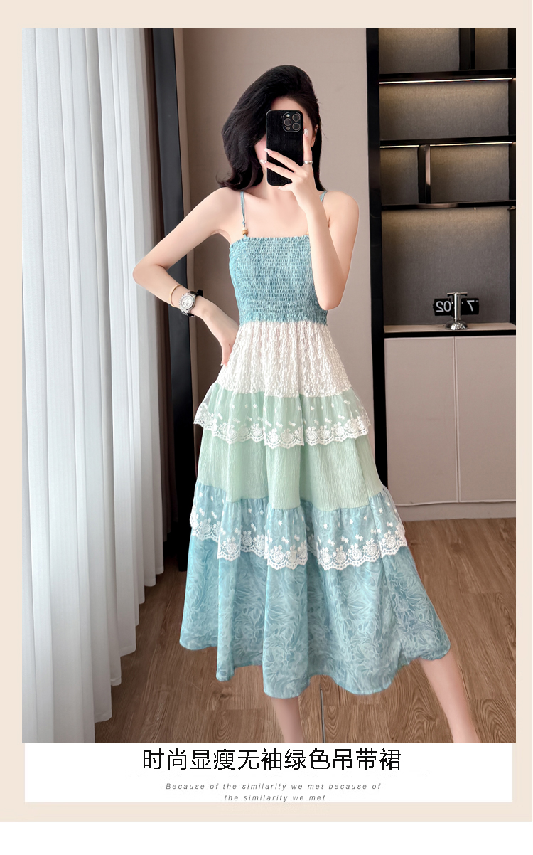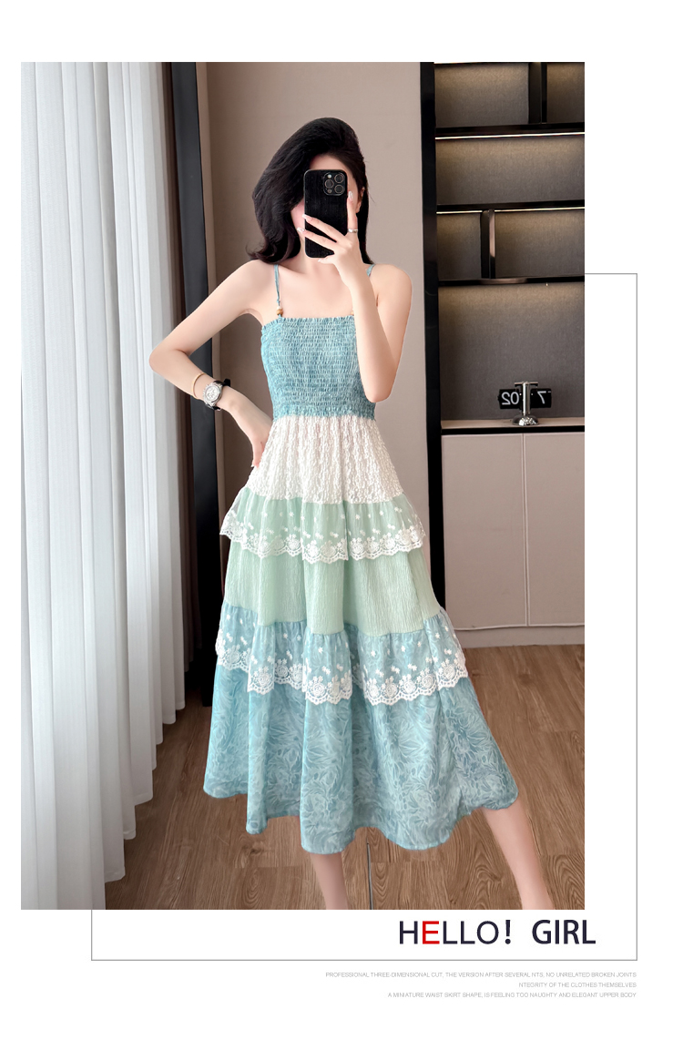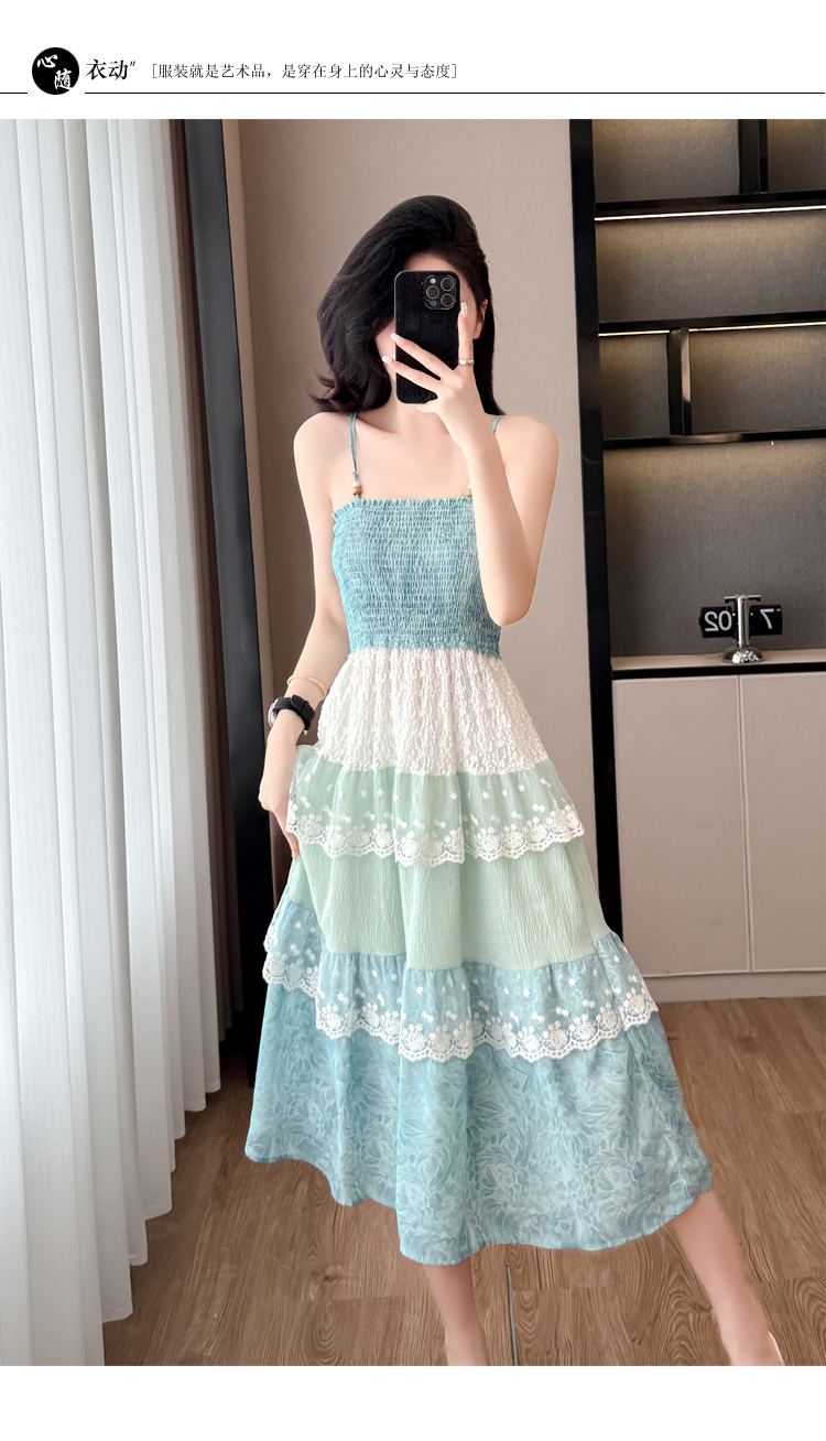 차 휴식 프랑스식 드레스 2026 새로운 여성 여름 부드러운 바람 프릴 요정 품격 쉬폰 슬립 롱 스커트