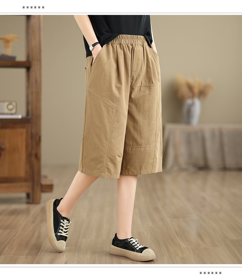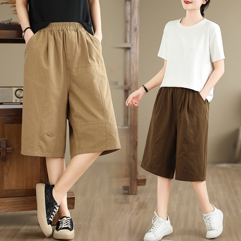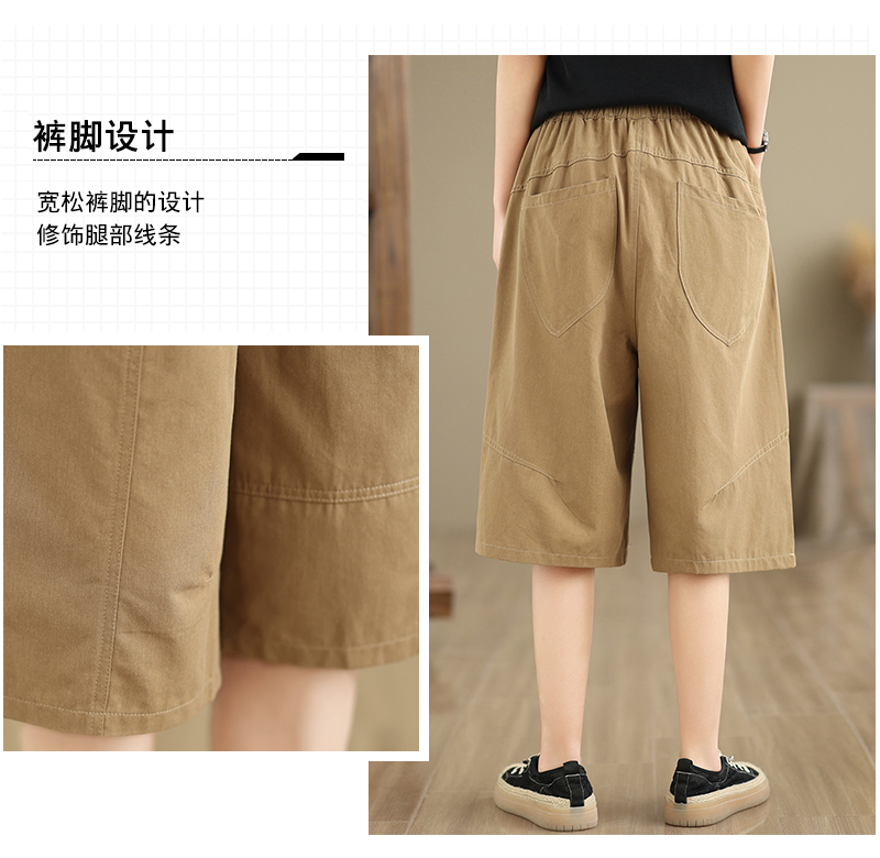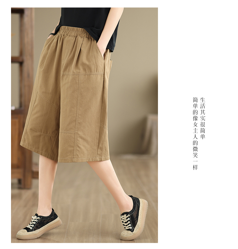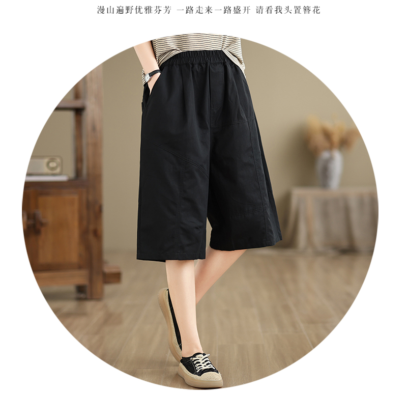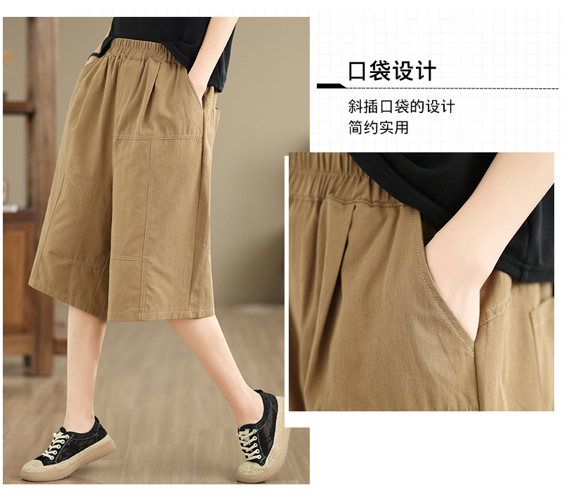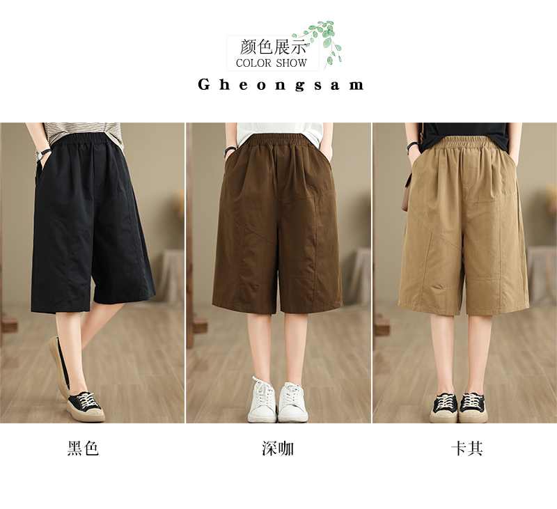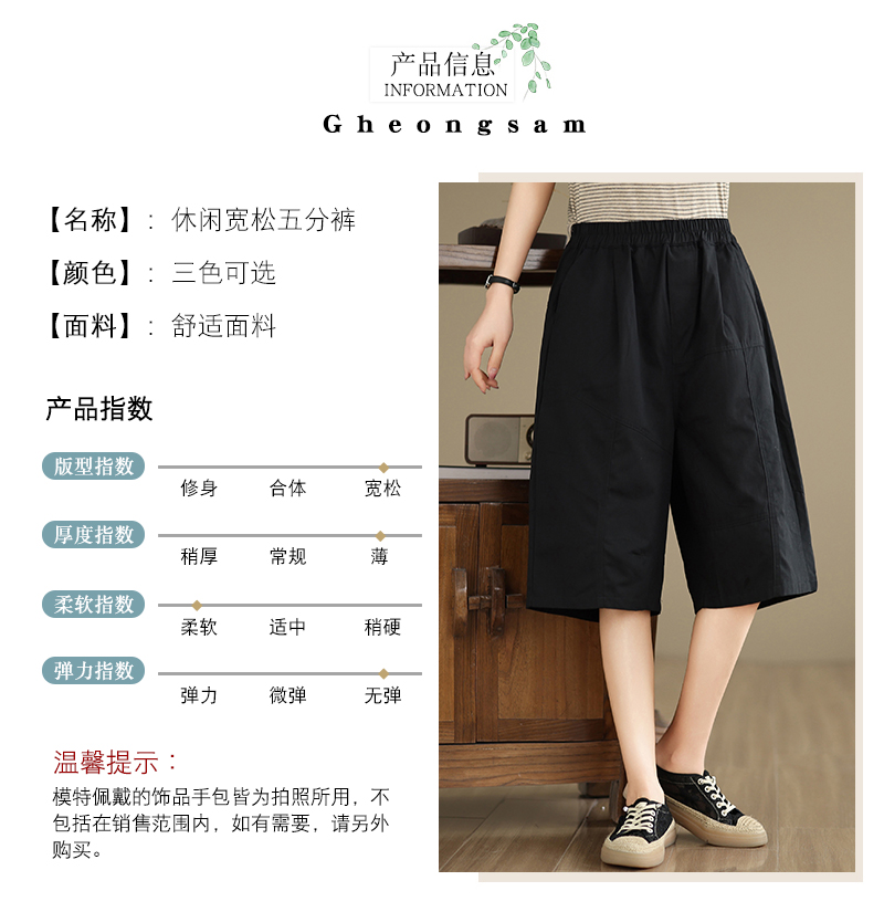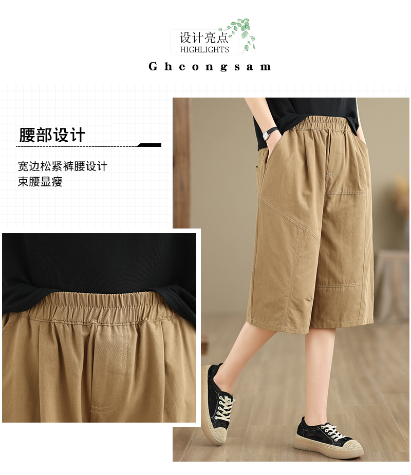 실사 2026 여름 새로운 면 100% 7부 바지 여성 루즈핏 바지 캐주얼 다용도 슬림해 보이는 허리밴드 와이드 레그 팬츠