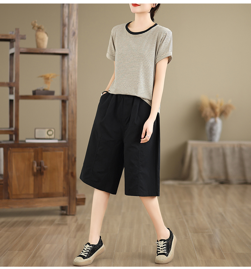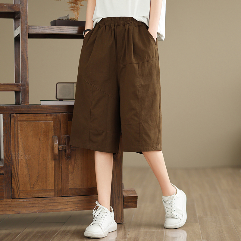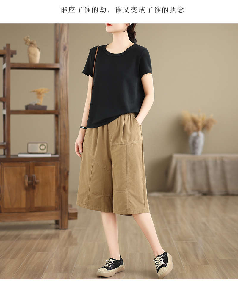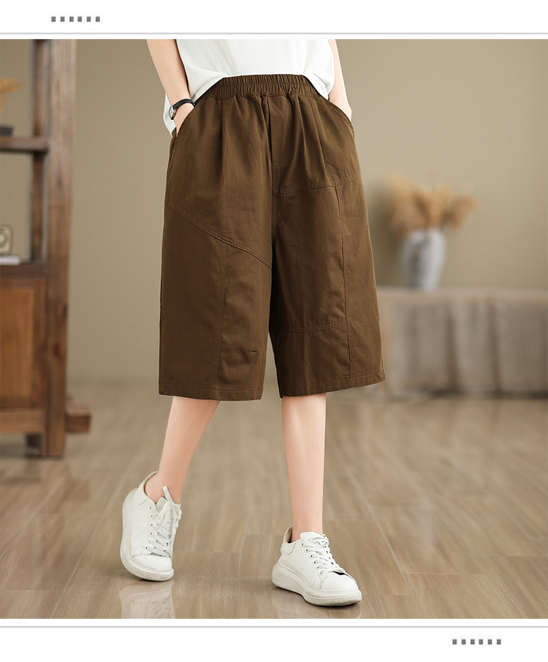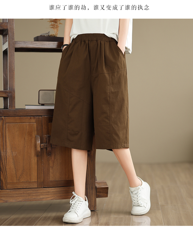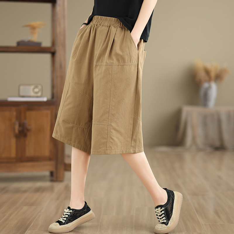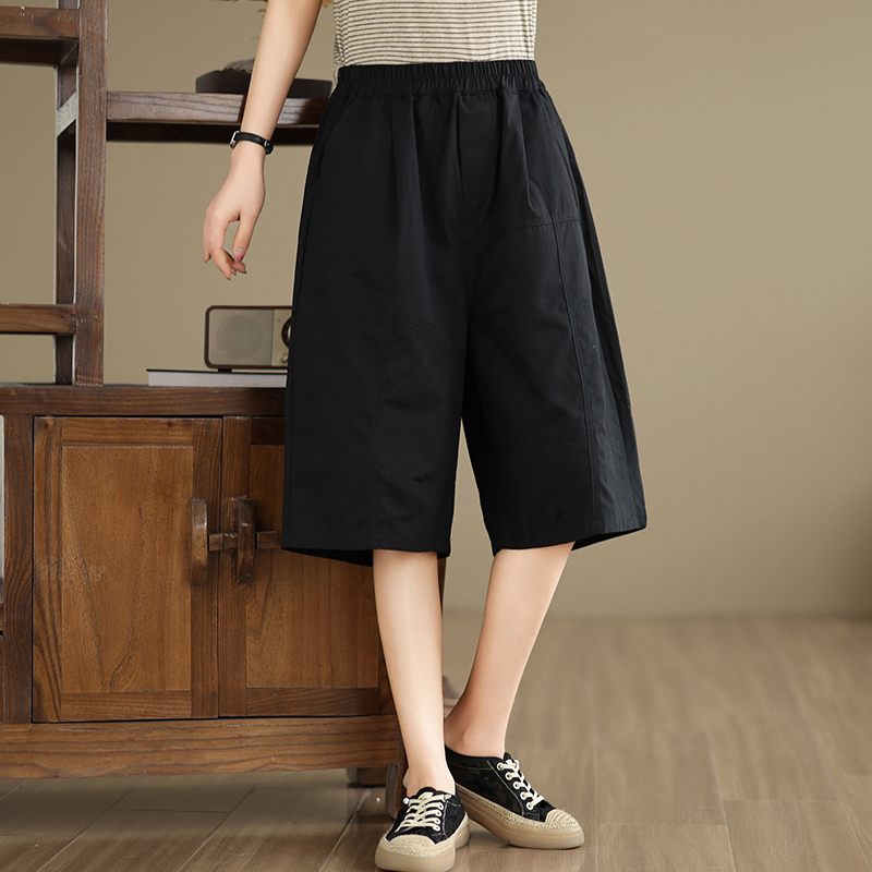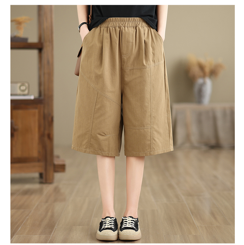 실사 2026 여름 새로운 면 100% 7부 바지 여성 루즈핏 바지 캐주얼 다용도 슬림해 보이는 허리밴드 와이드 레그 팬츠