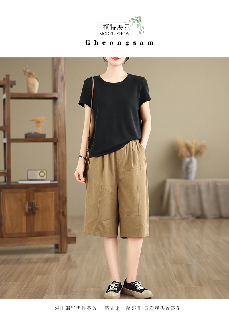 실사 2026 여름 새로운 면 100% 패션 캐주얼 와이드 레그 팬츠 루즈핏 표지 고기 슬림해 보이는 다용도 9 포인트 스트레이트 팬츠