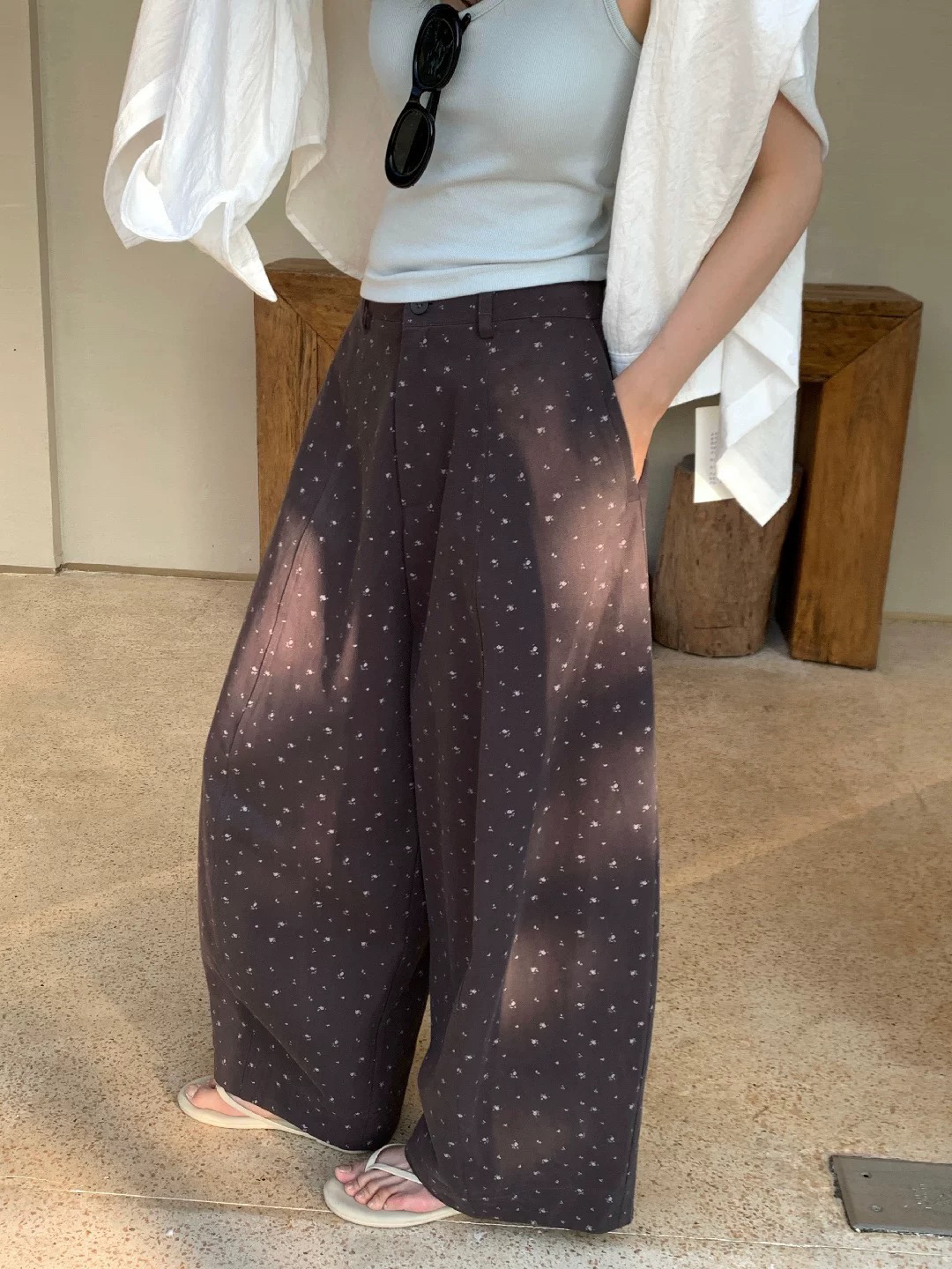 봄 새로운 디자인 센스 작은 대중 패션 꽃무늬 슬림해 보이는 품격 모통이 칼 바지 루즈핏 다용도 넓은 다리 캐주얼 바지