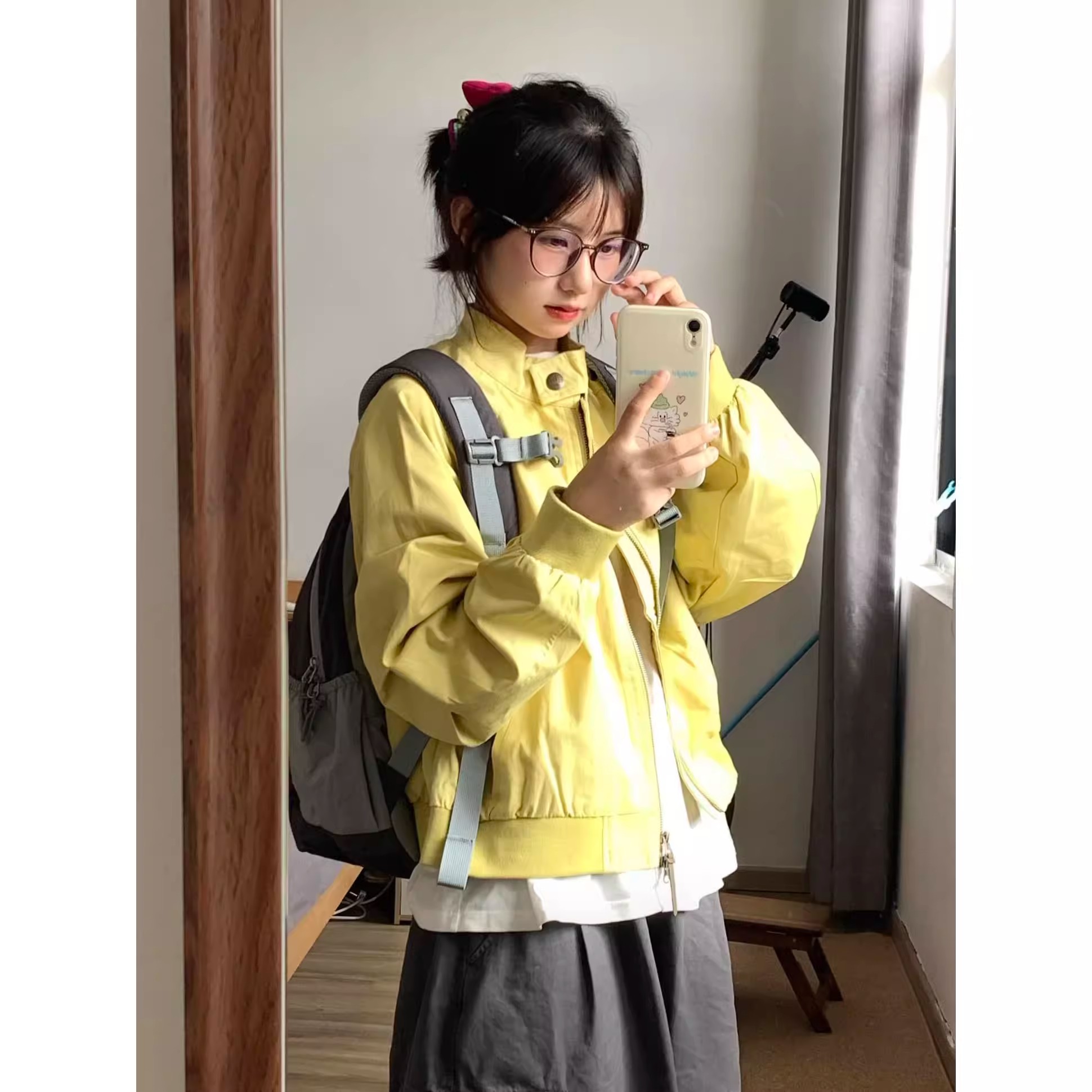 일본식 레트로 황색 워크웨어 여성 코트 새로운 작은 키 도파민 착용 가져 가라. 야구 유니폼 재킷