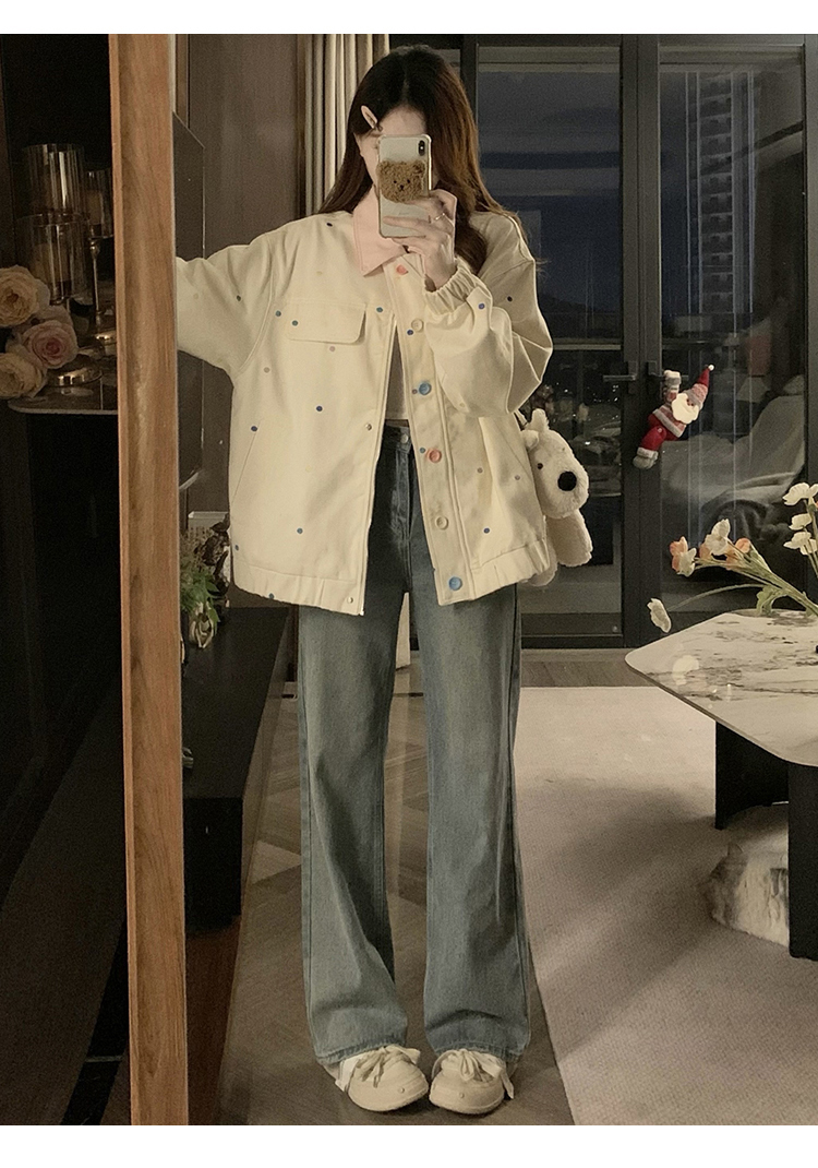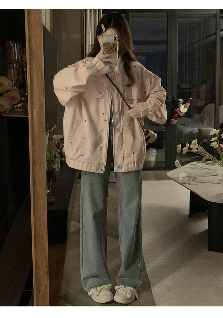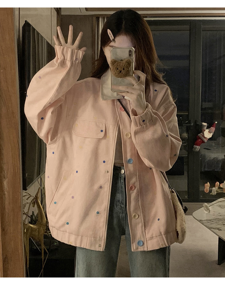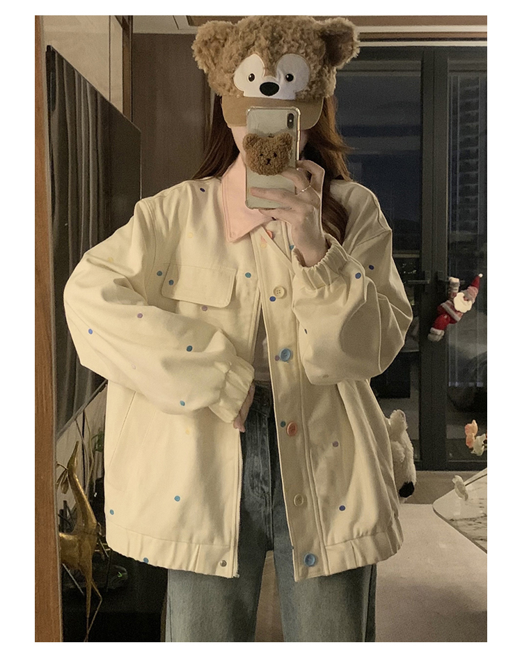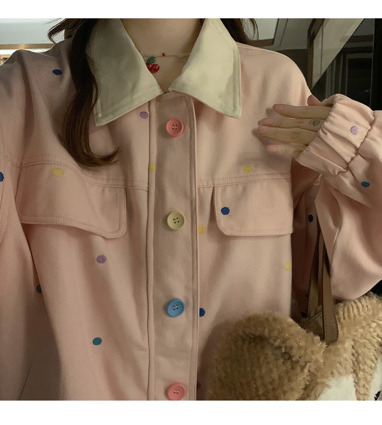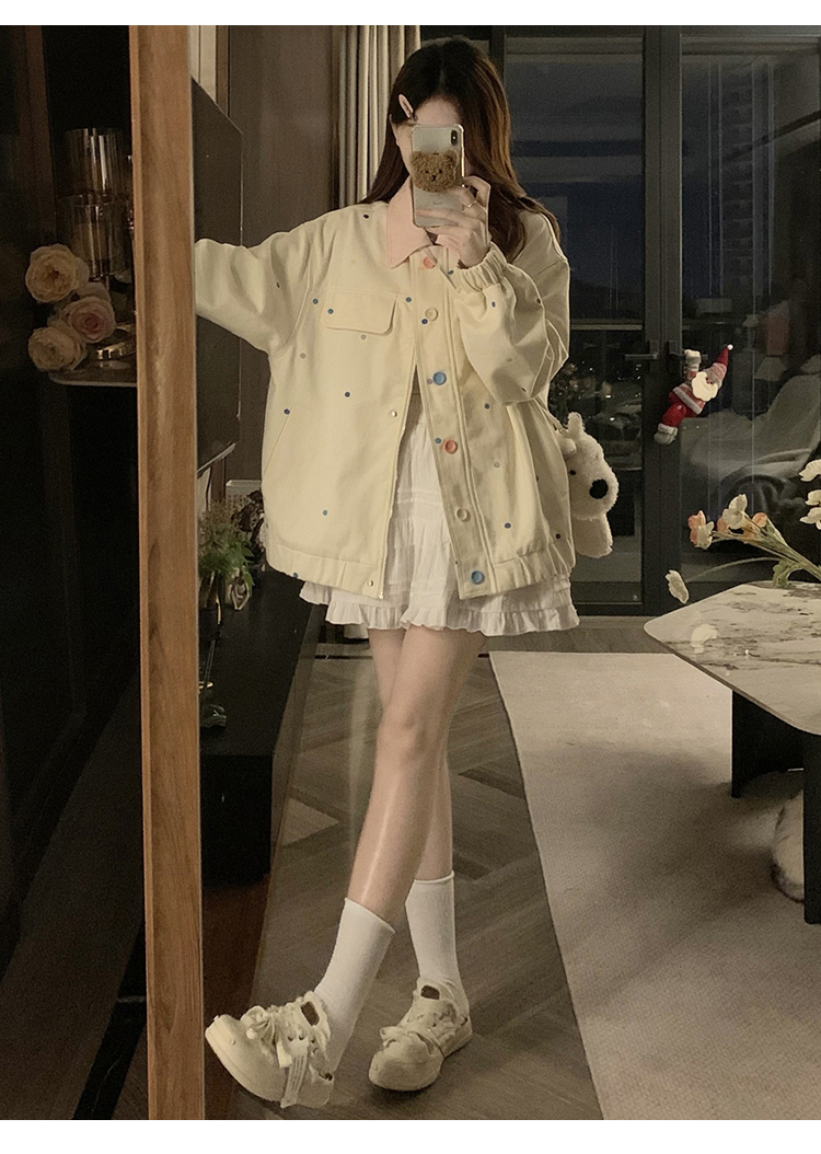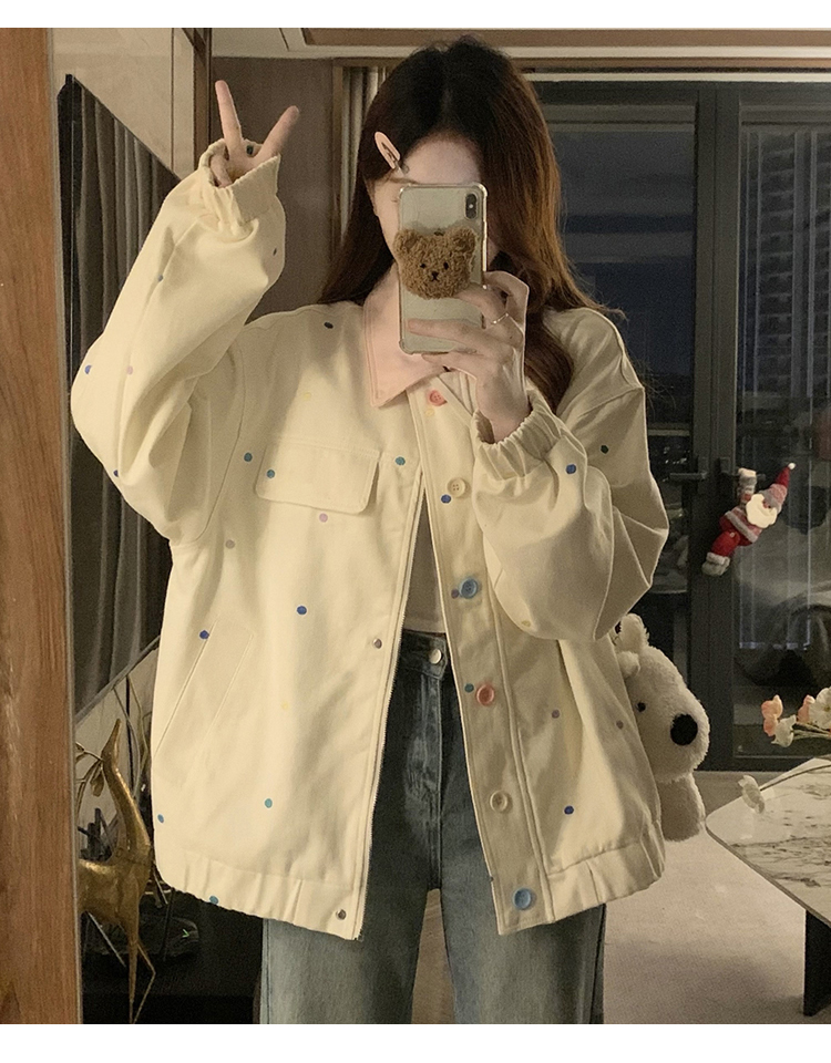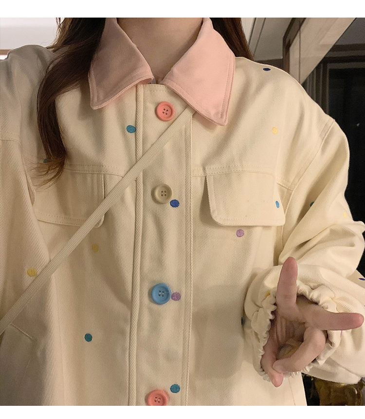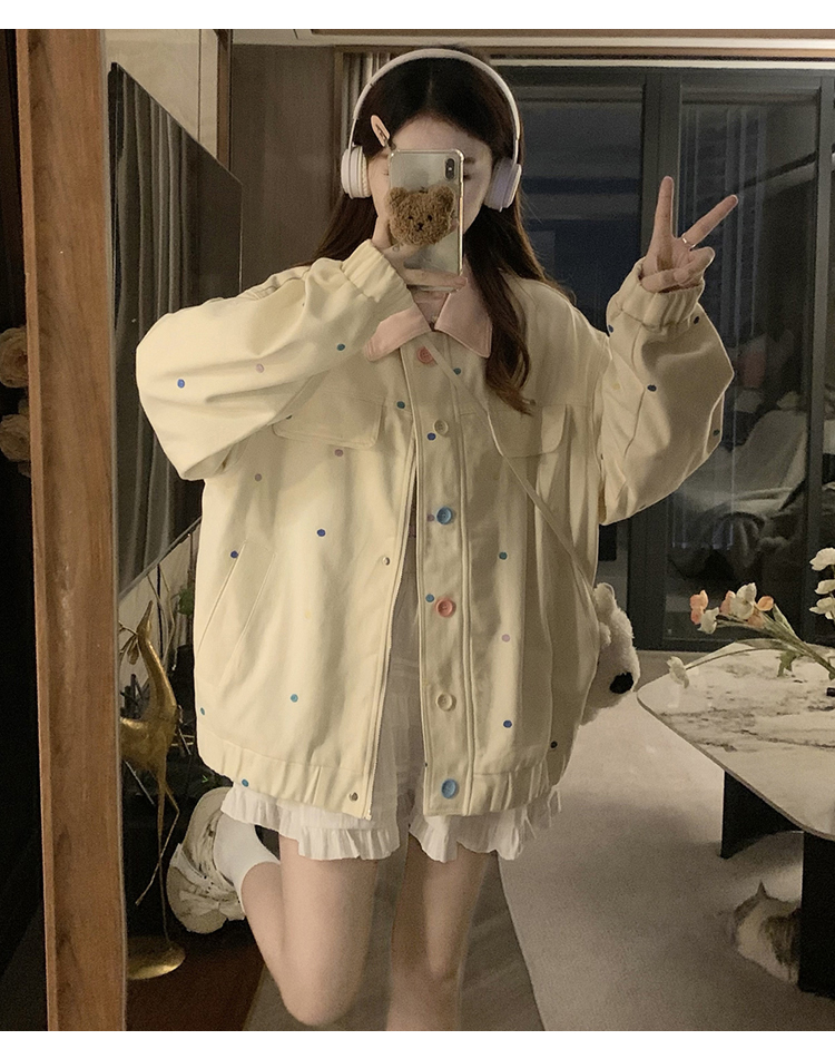 실사 새로운 색상 도트 무늬 재킷 맨위 봄 가을 오픈 가디건 데님 재킷