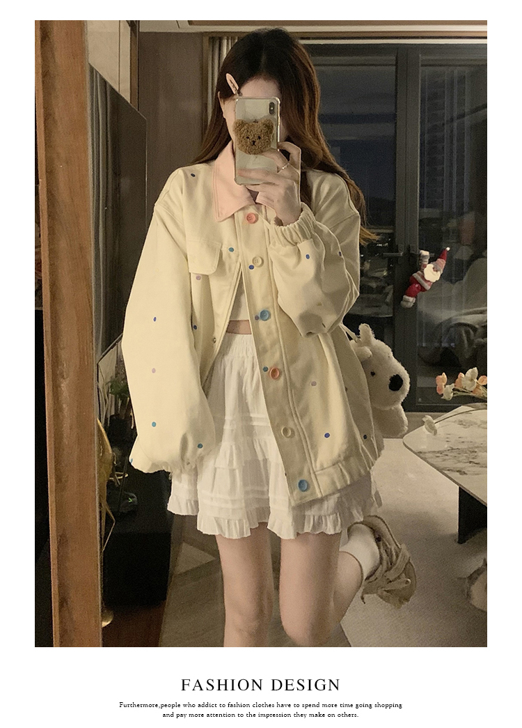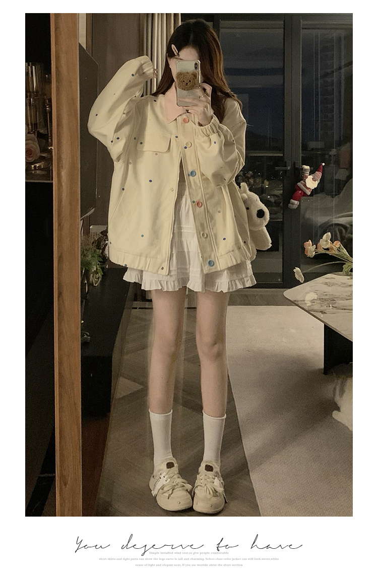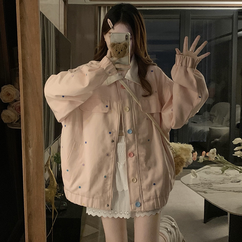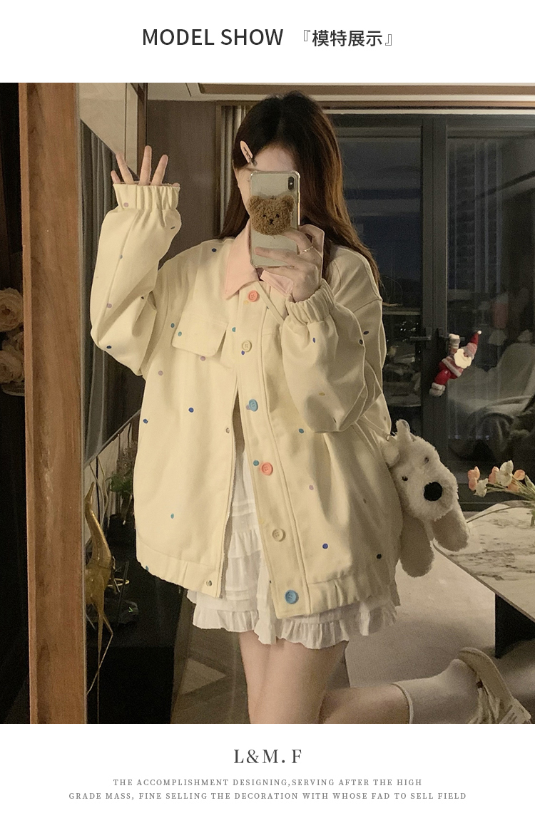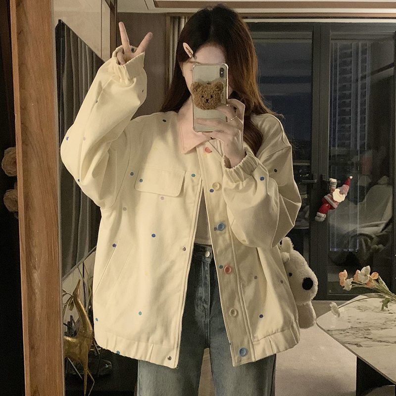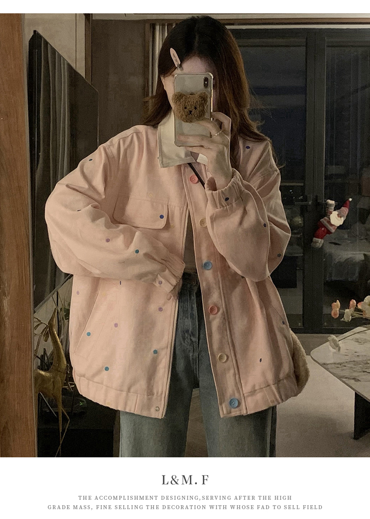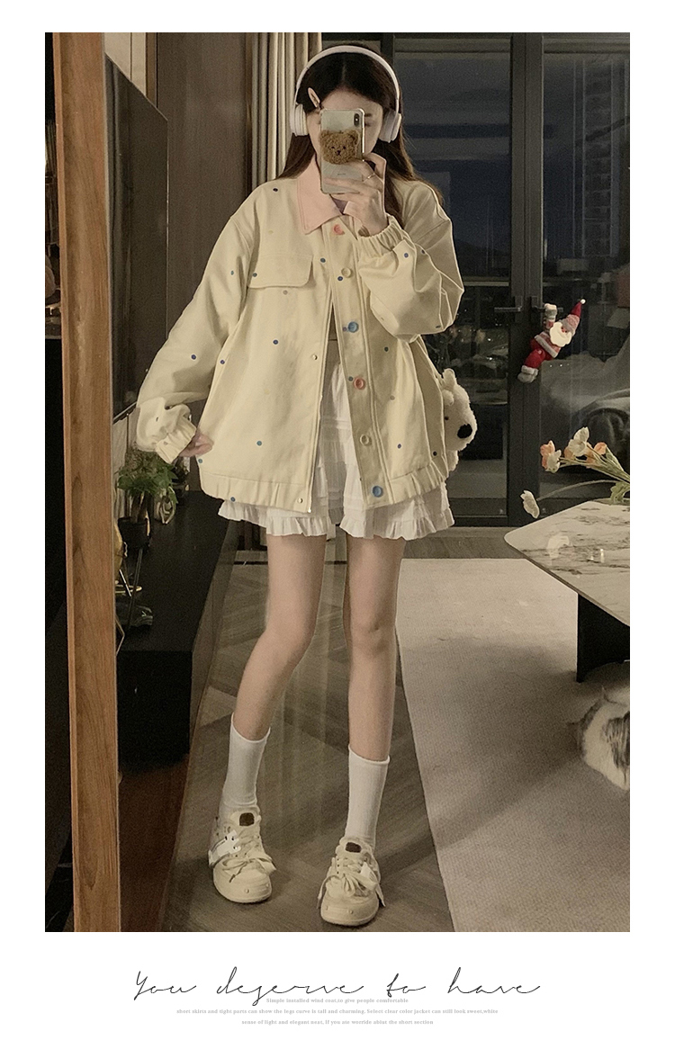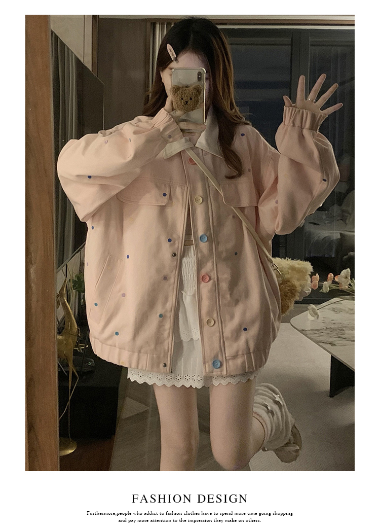 실사 새로운 색상 도트 무늬 재킷 맨위 봄 가을 오픈 가디건 데님 재킷