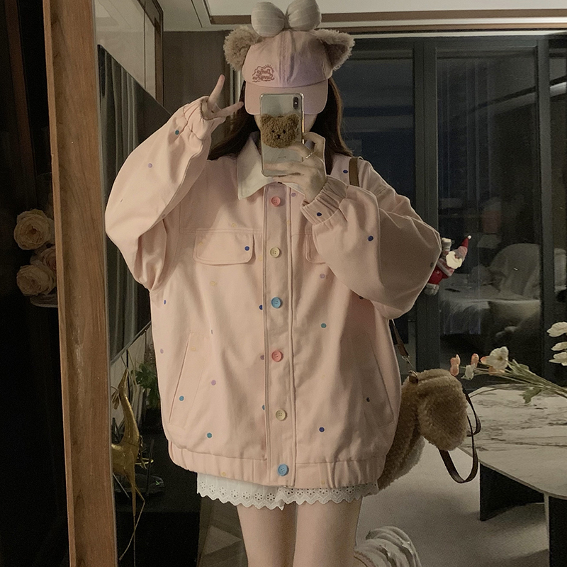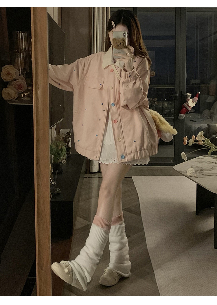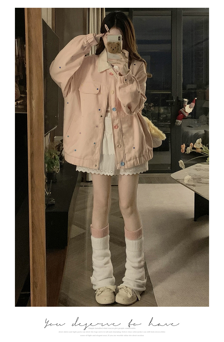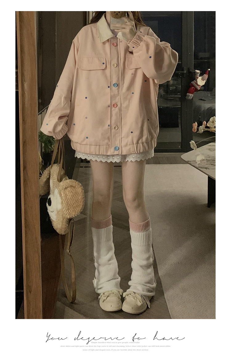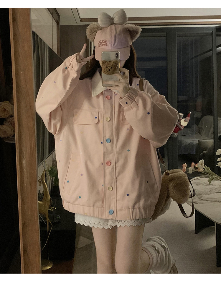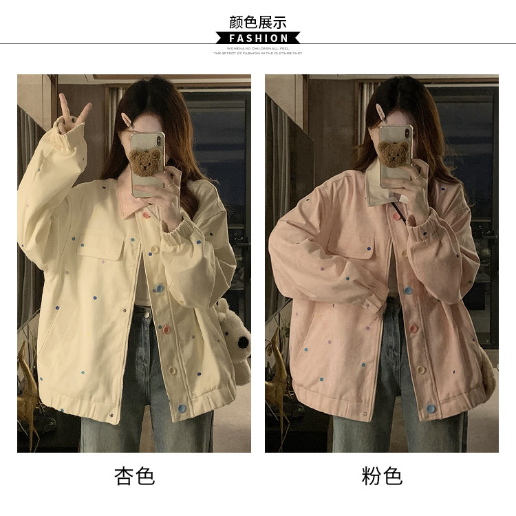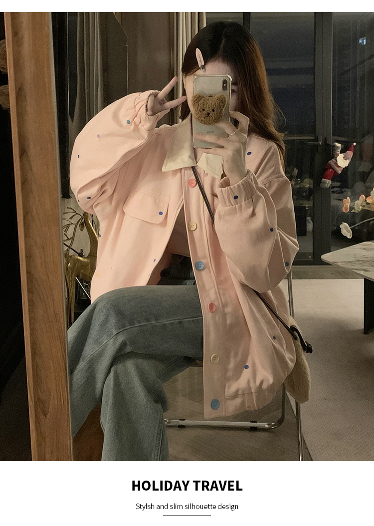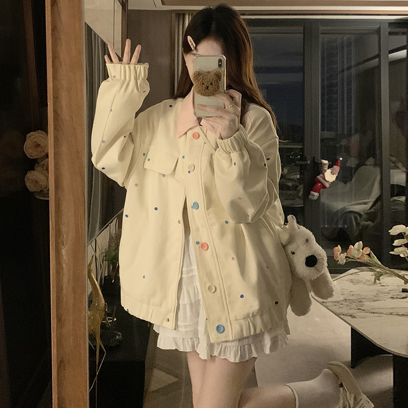 실사 새로운 색상 도트 무늬 재킷 맨위 봄 가을 오픈 가디건 데님 재킷