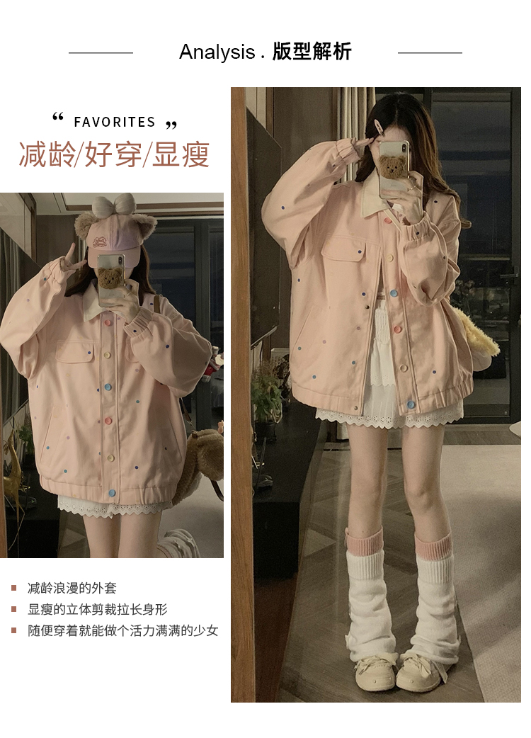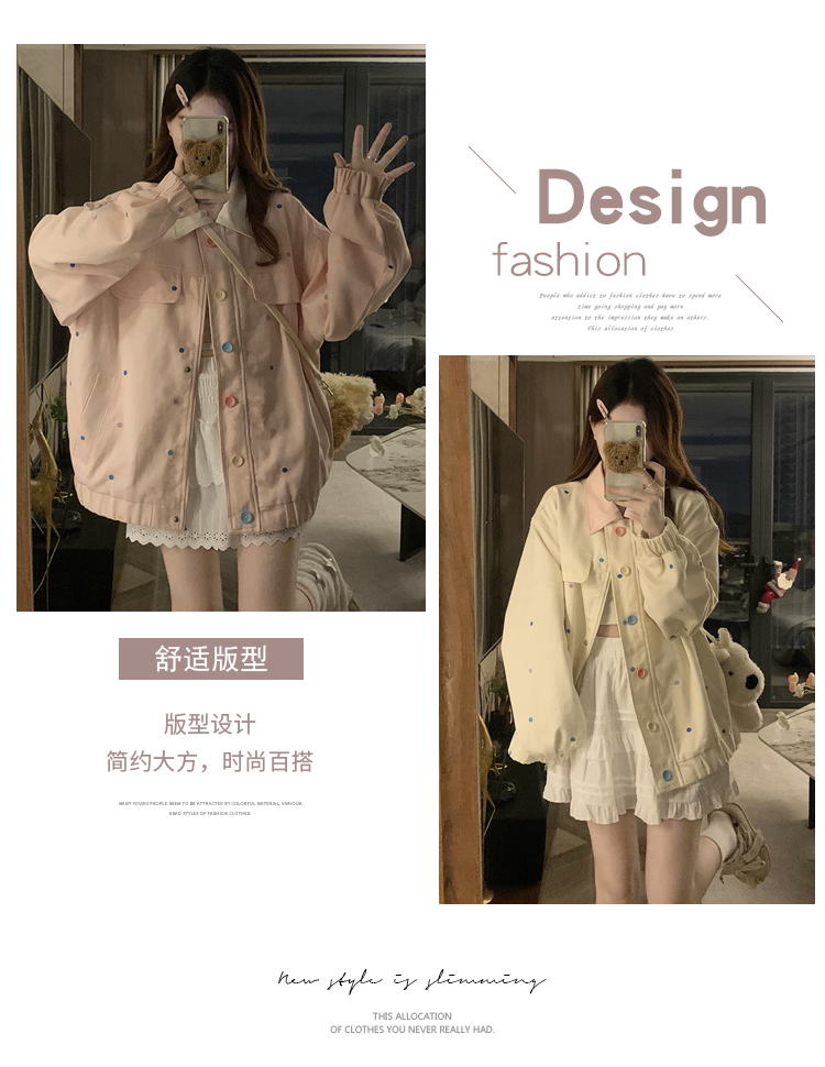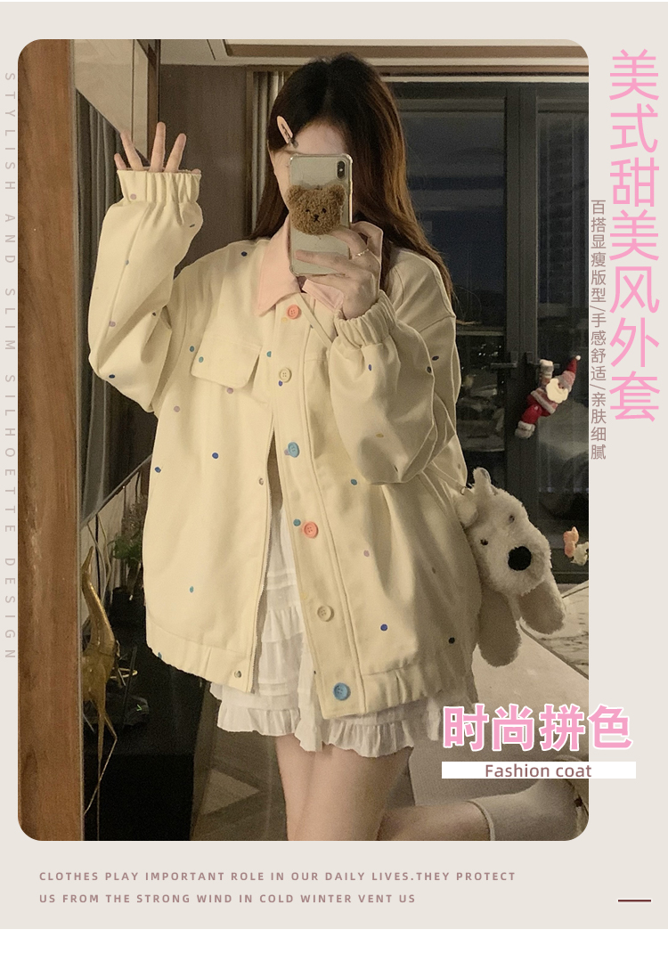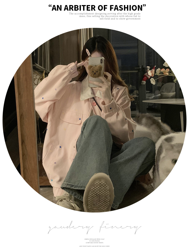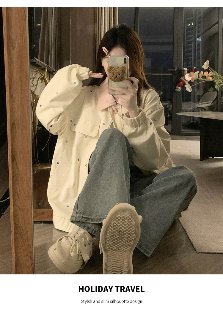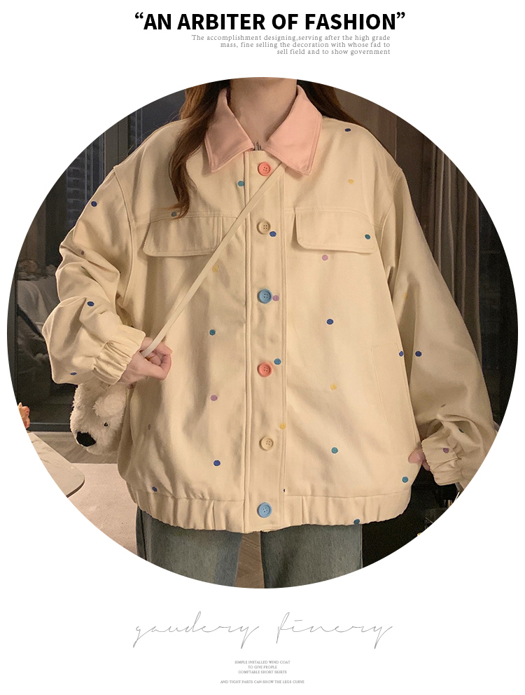 실사 봄 새로운 배색 폴로 칼라 재킷 학원 스타일 캐주얼 야구 여성 코트