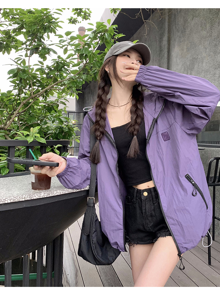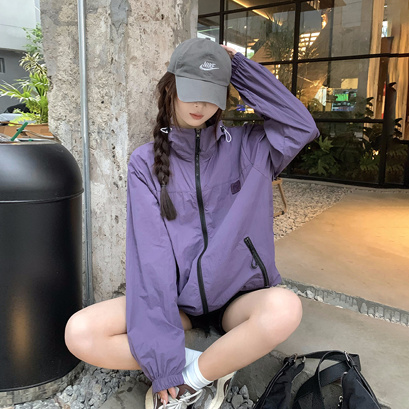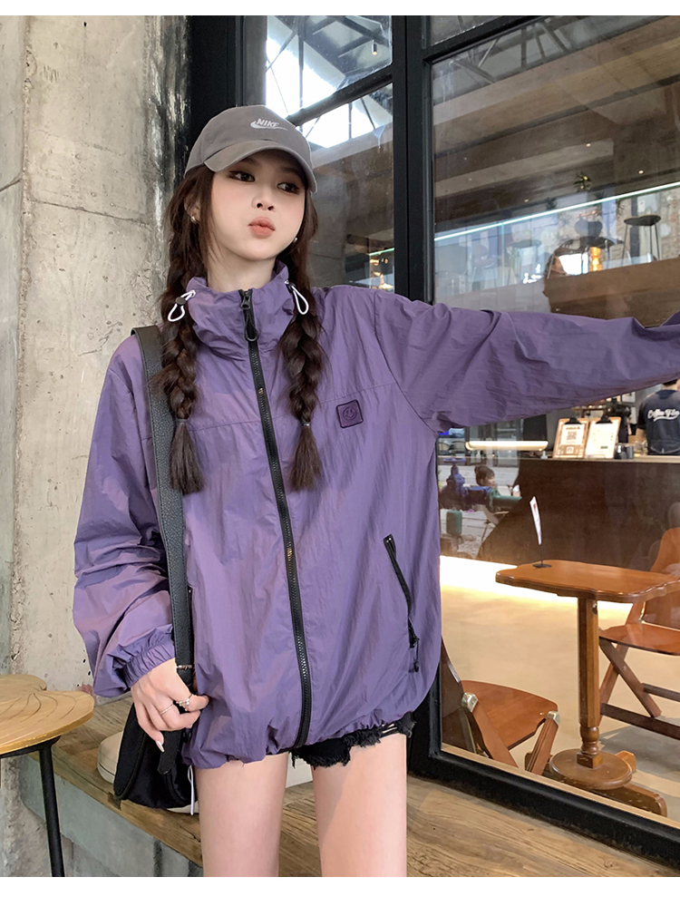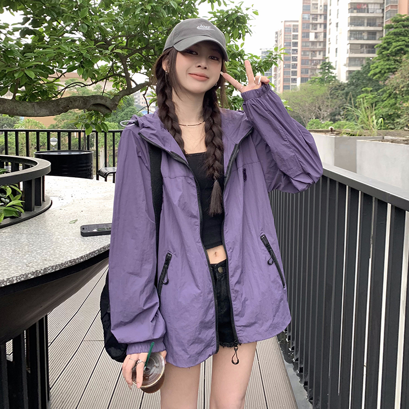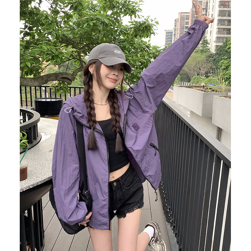 실사 보라색 자외선 차단 의류 여성 여름 얇고 가벼운 통기성 사이클링 자외선 차단 복 운동 블라우스 얇은 코트