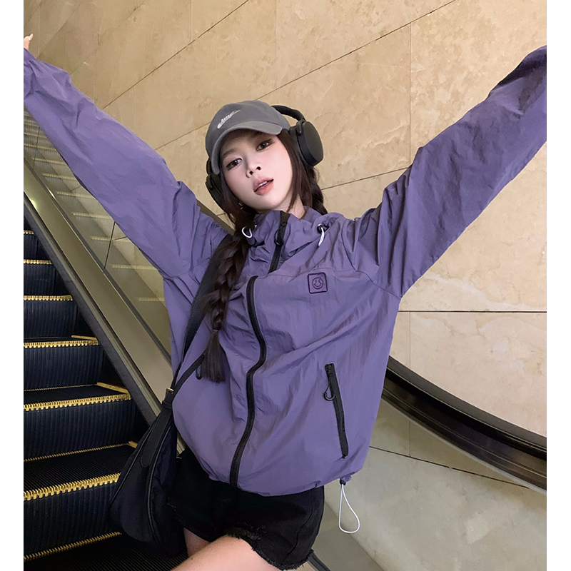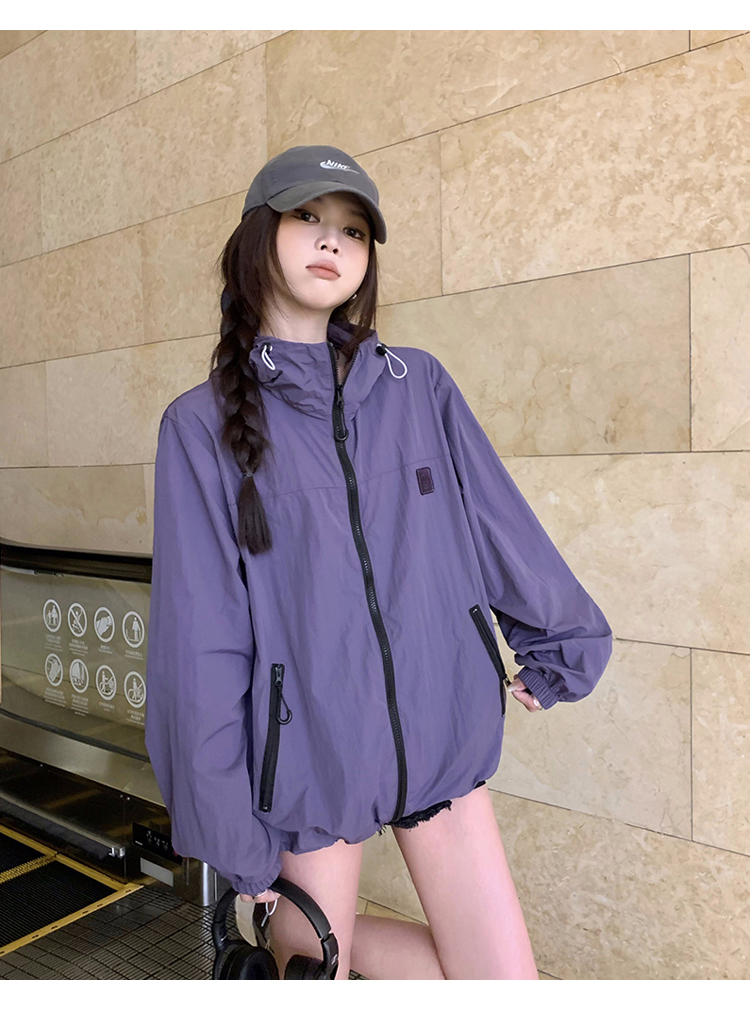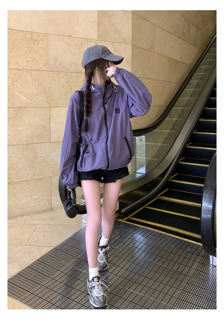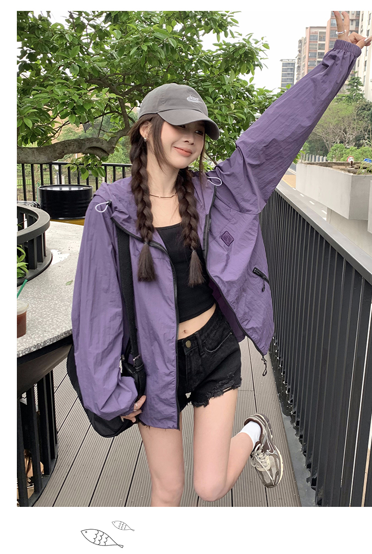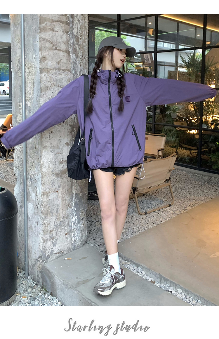 실사 보라색 자외선 차단 의류 여성 여름 얇고 가벼운 통기성 사이클링 자외선 차단 복 운동 블라우스 얇은 코트