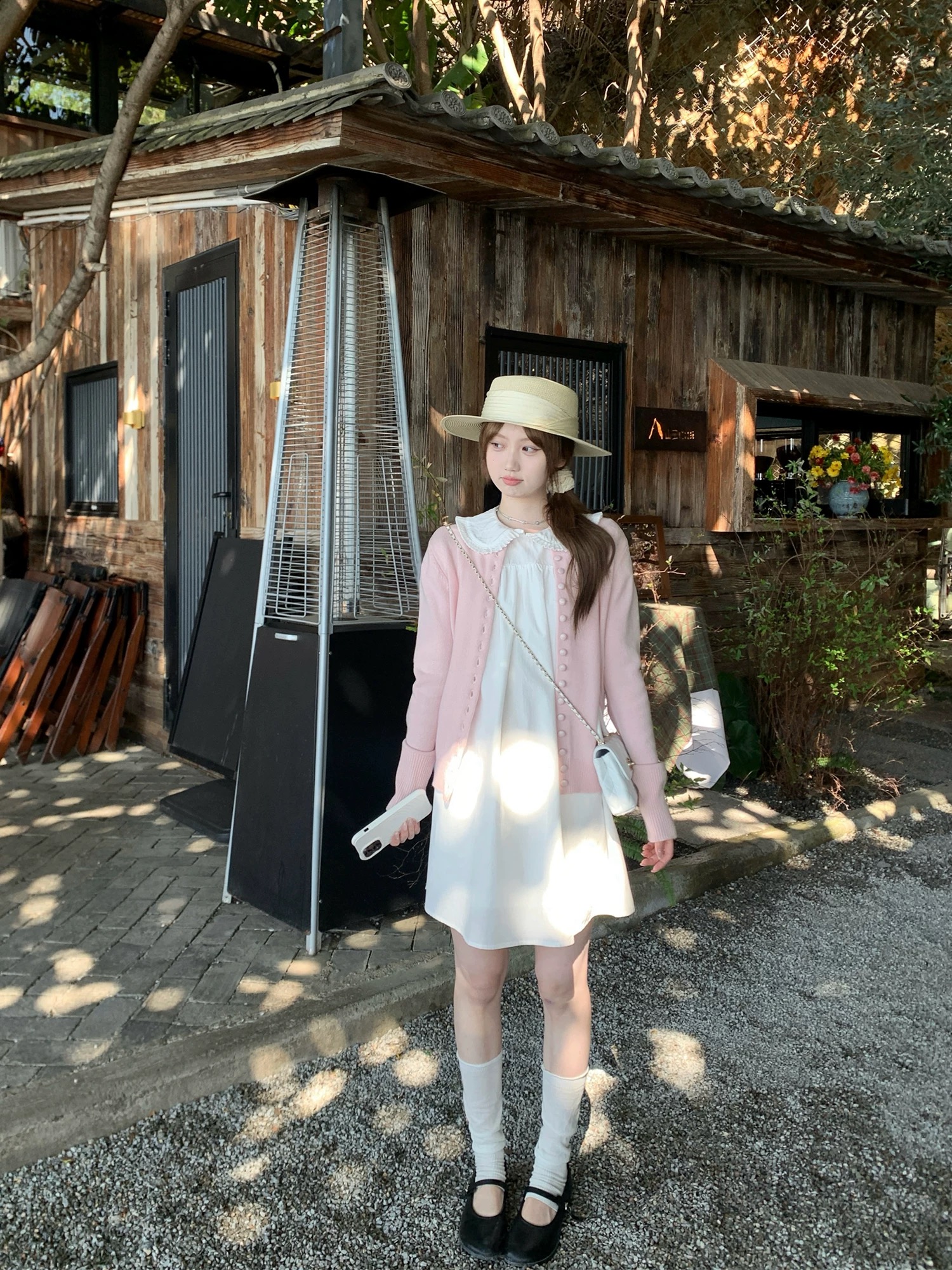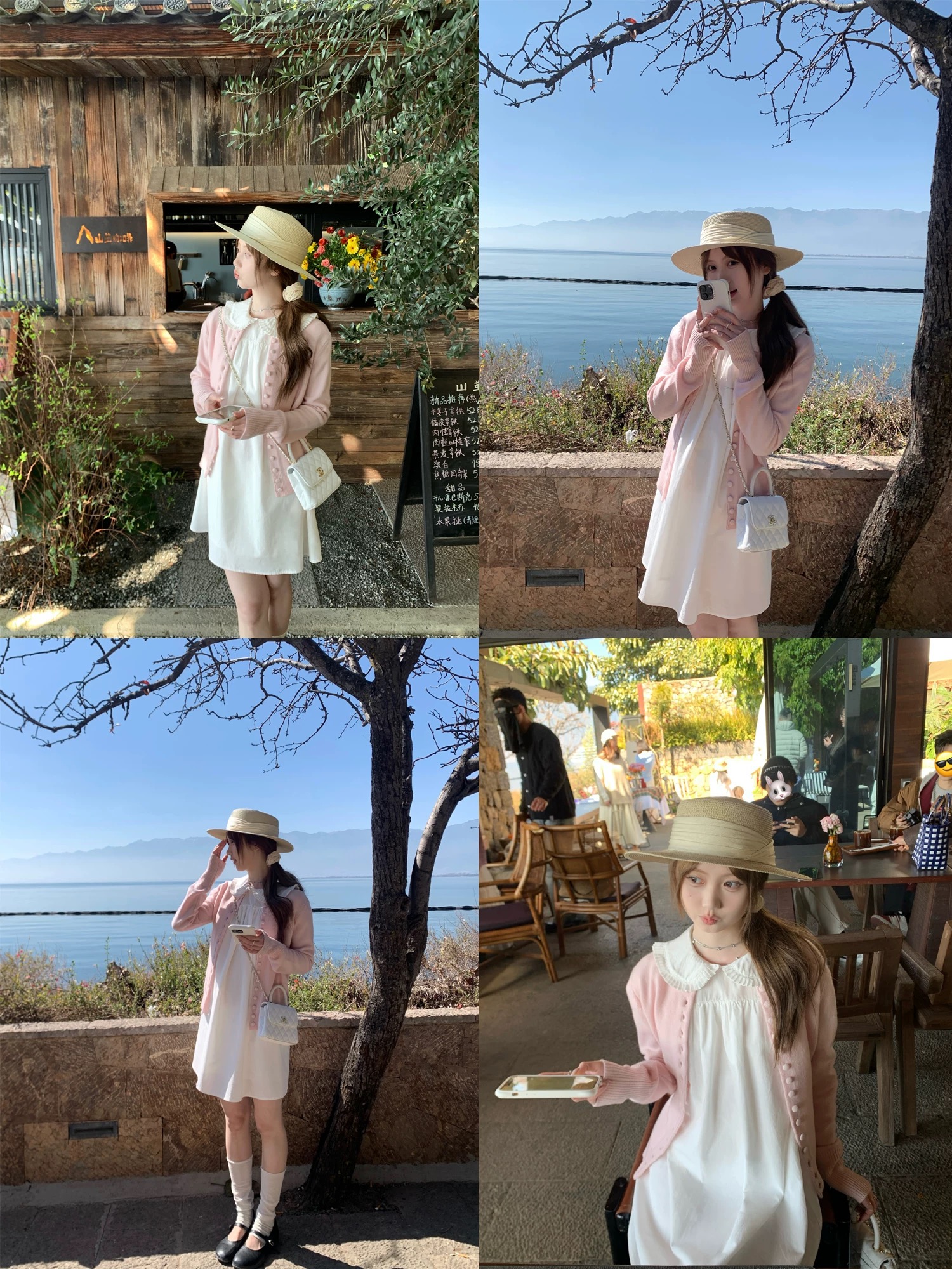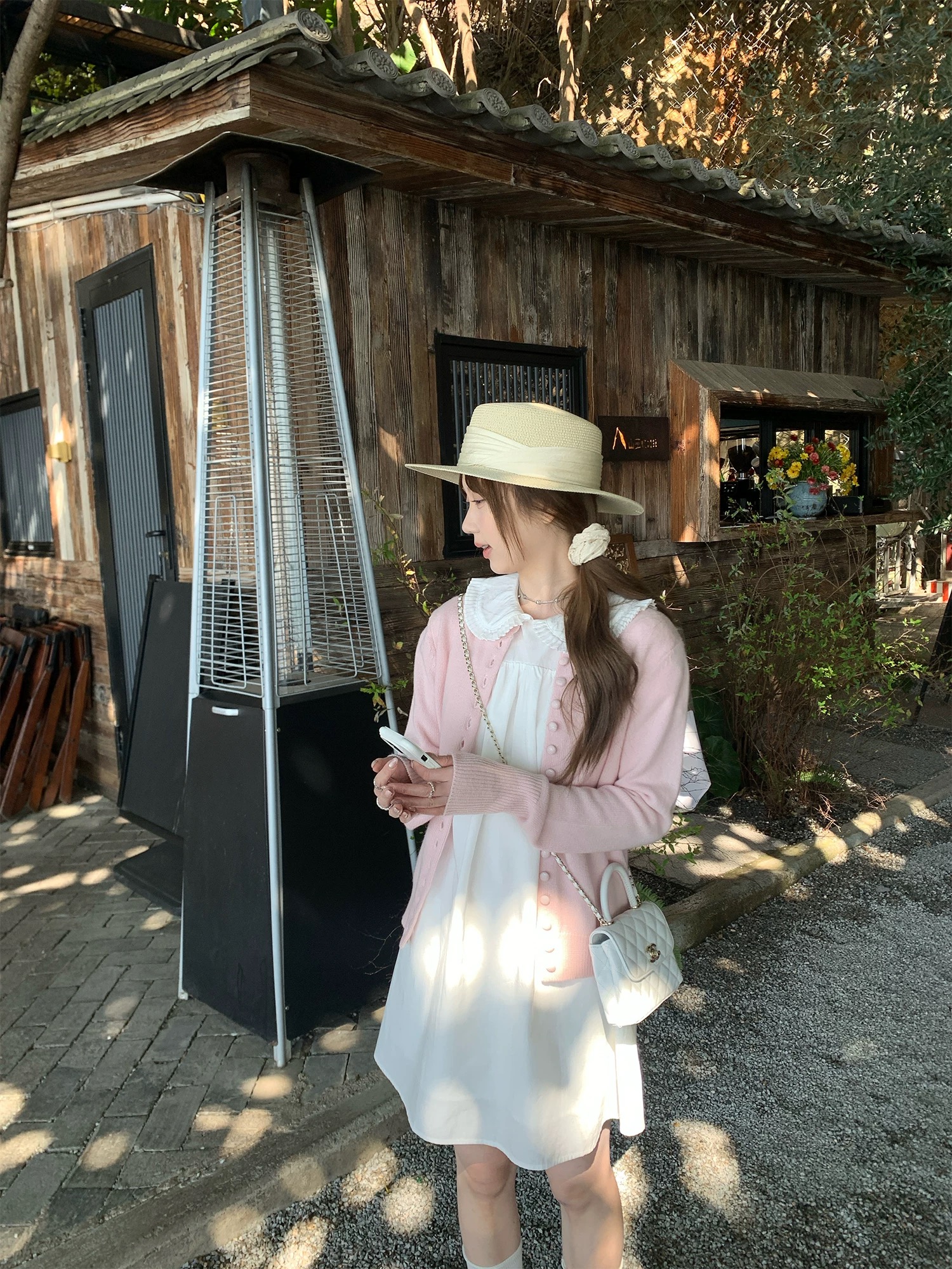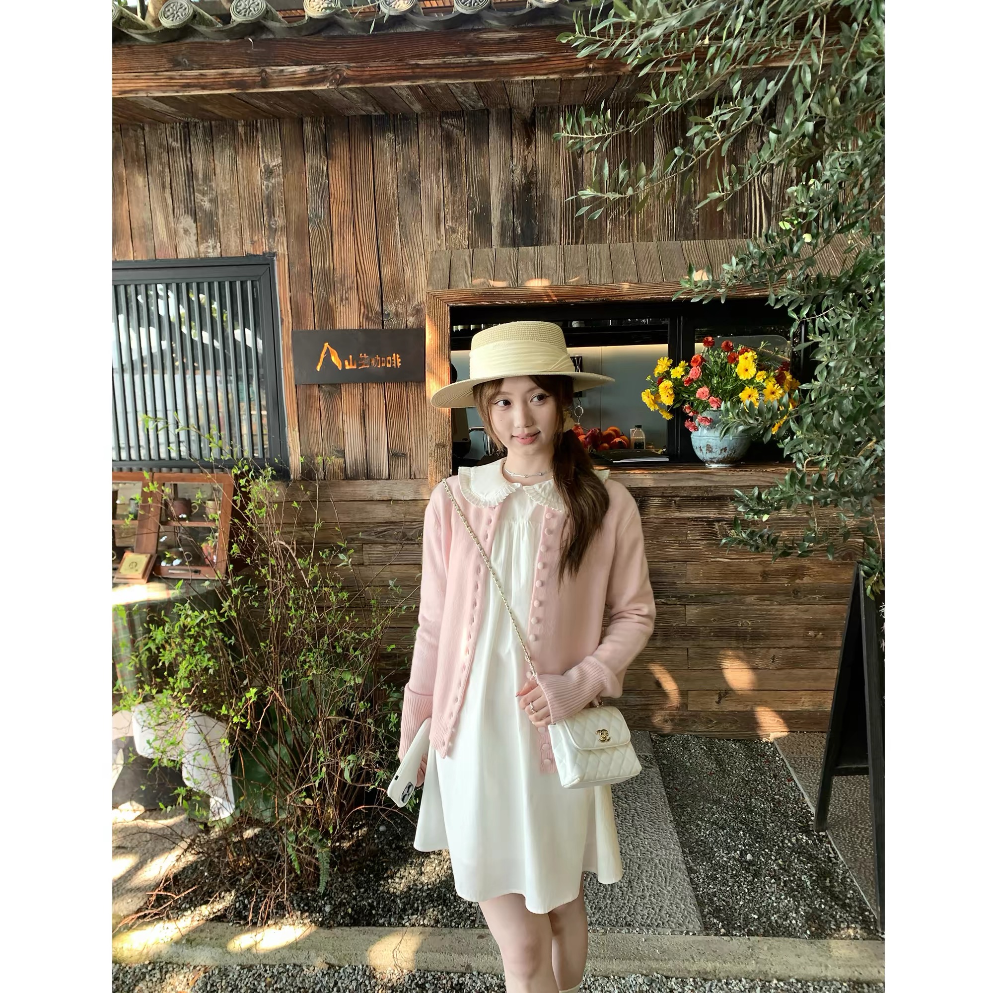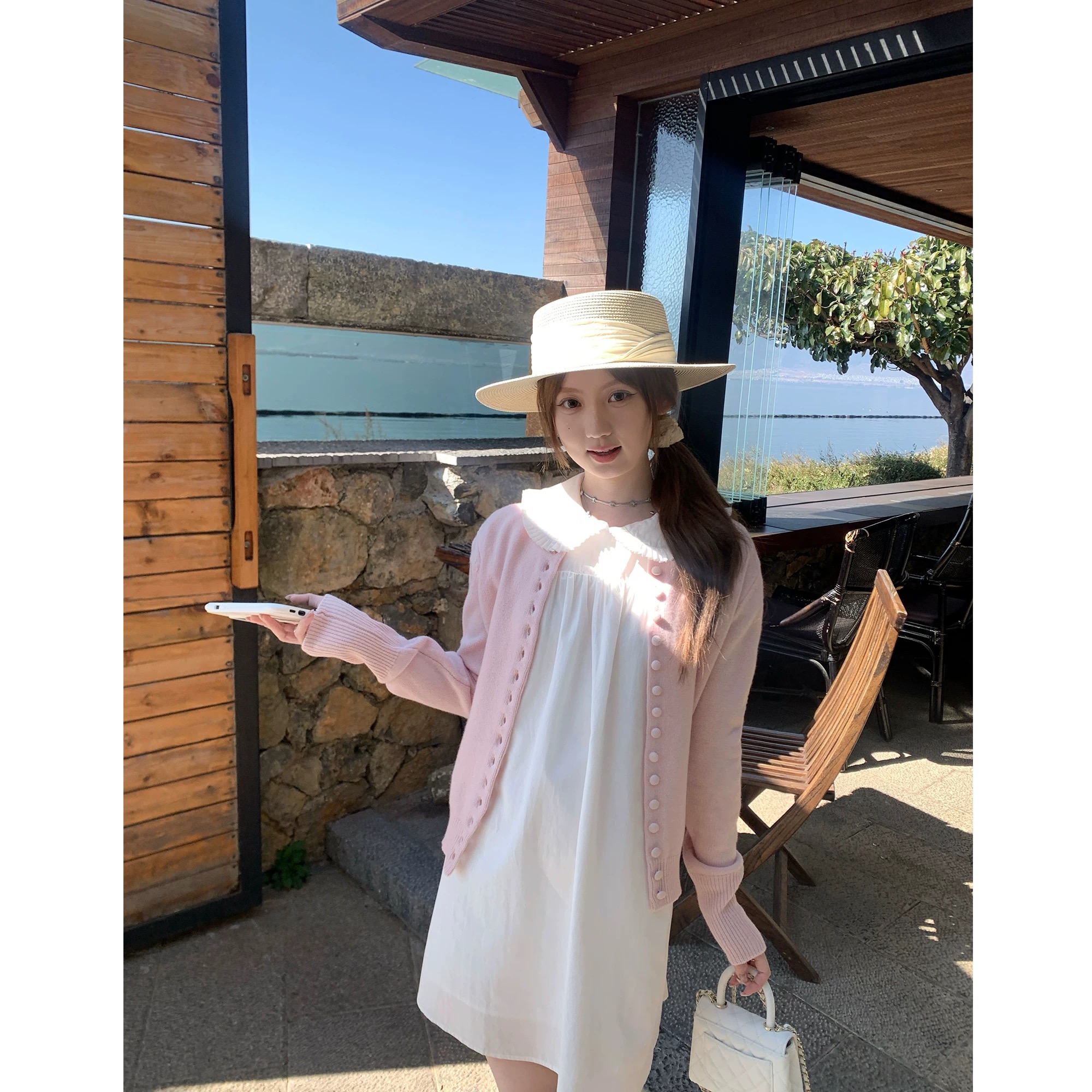 너 ~ 중 게으른 llan 화이트 연인 삼색 트위스트 꽃 스트랩 니트 스웨터 드레스