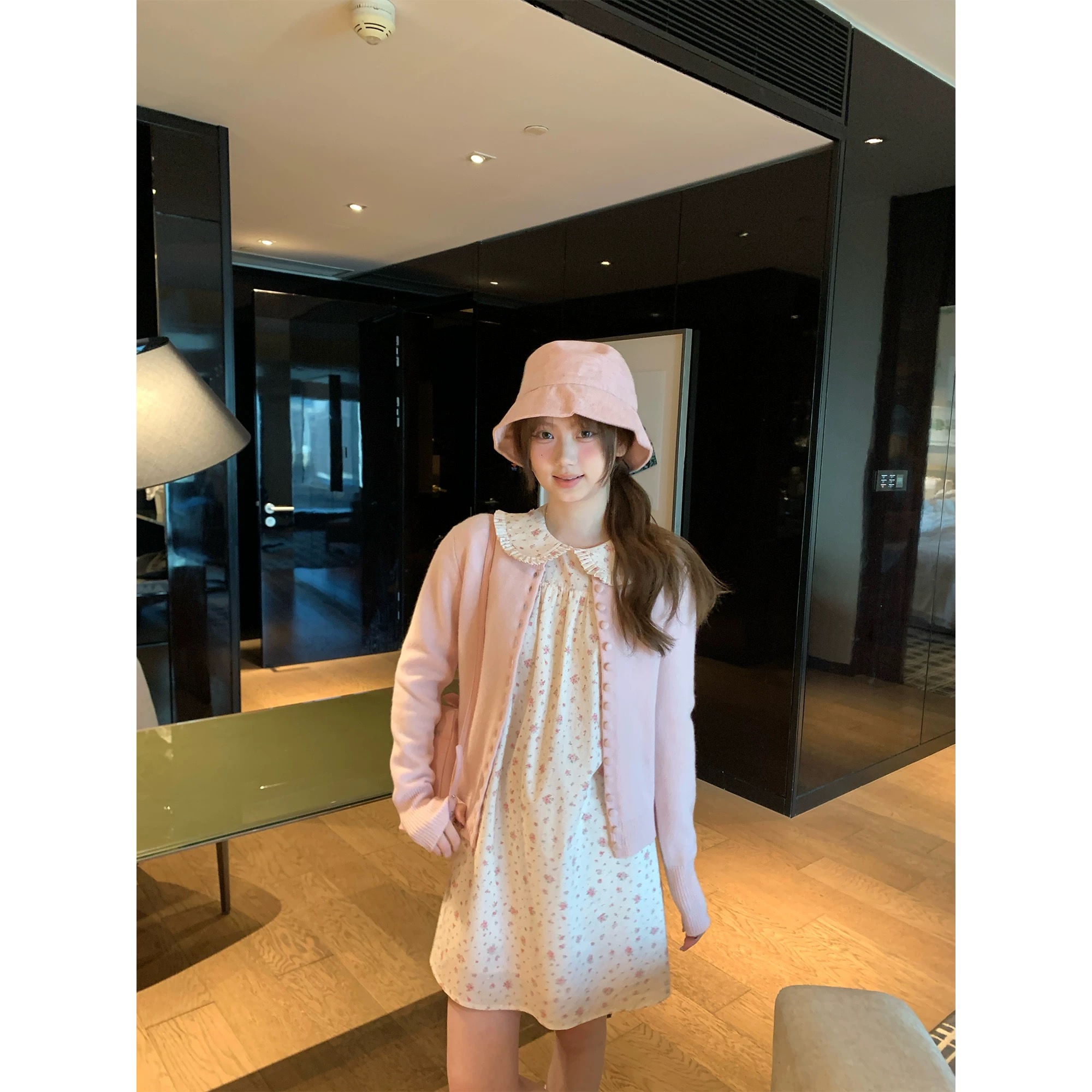 audwyn 신년 작은 말 자카드 라운드 넥 오픈 가디건 스웨터 여자 몸매 가꾸기 슬림해 보이는 배색 패치워크 mini 반바지 세트