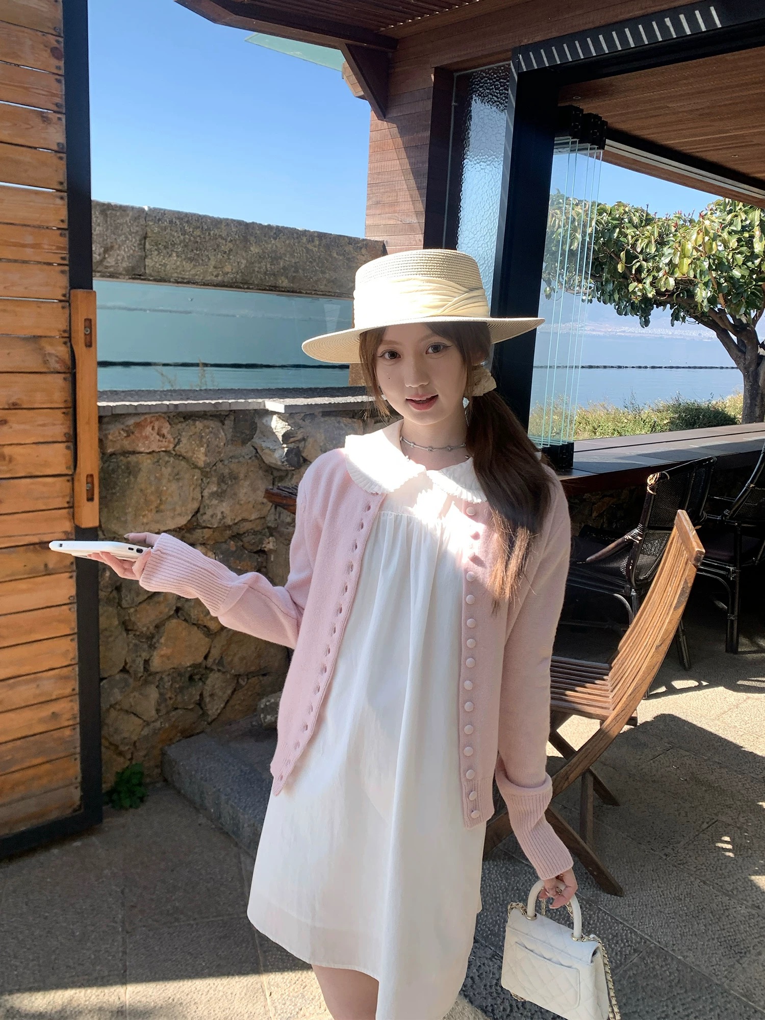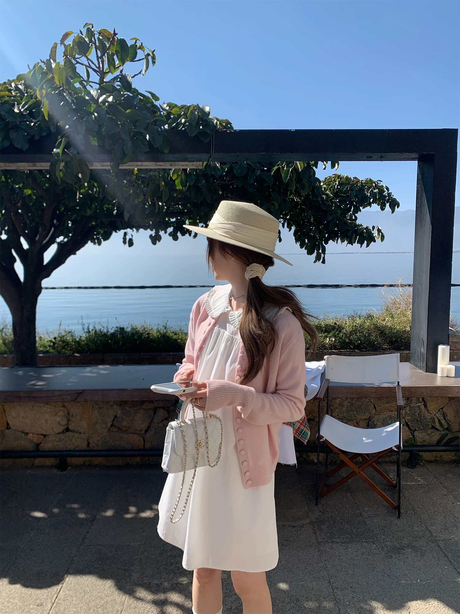 marie.coco 가스 전계 강도 대 명문 여성 품격 여신 프랑스식 빛 요리 한 관대 한 점잖은 우유 화이트 드레스