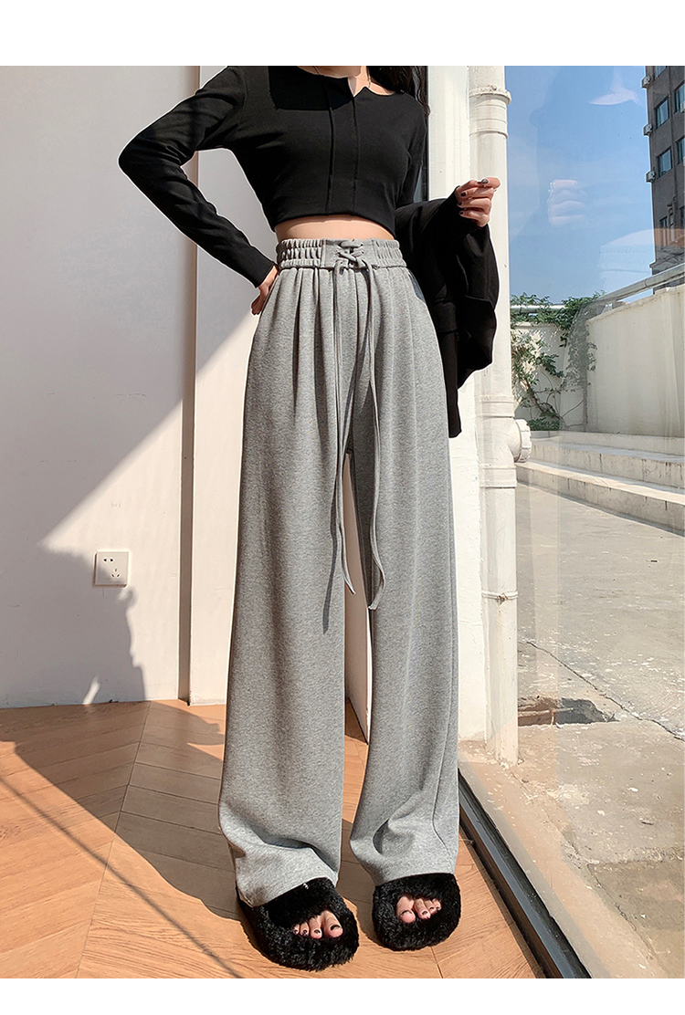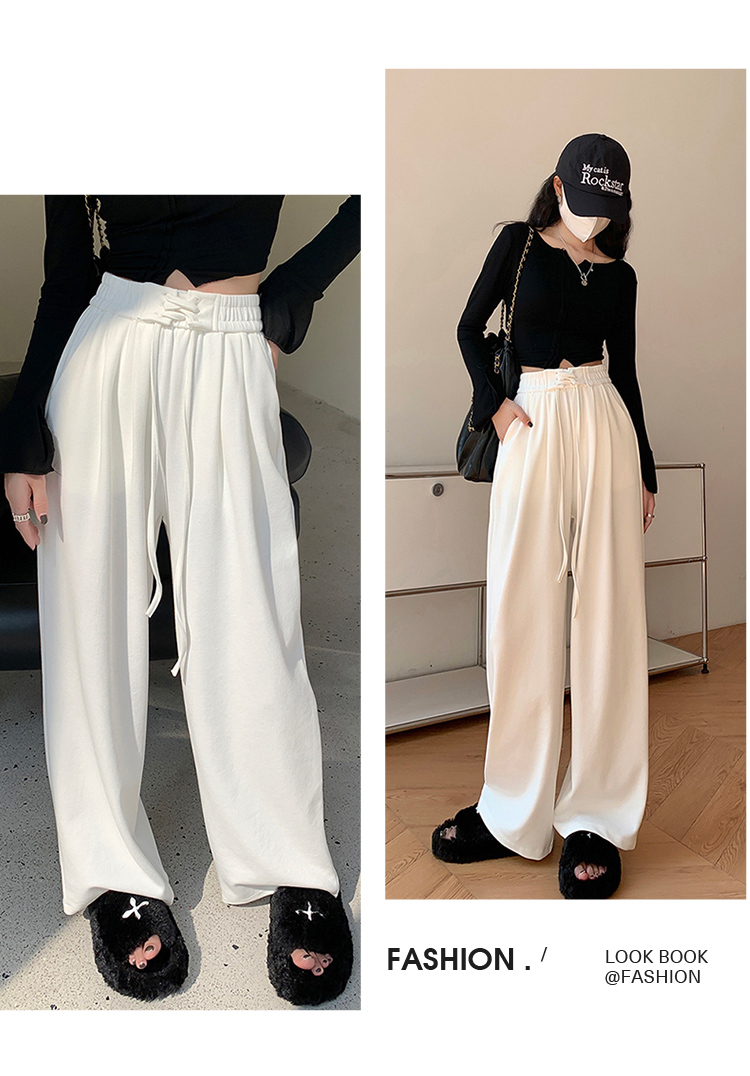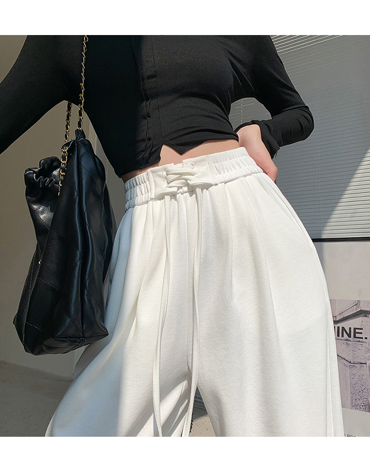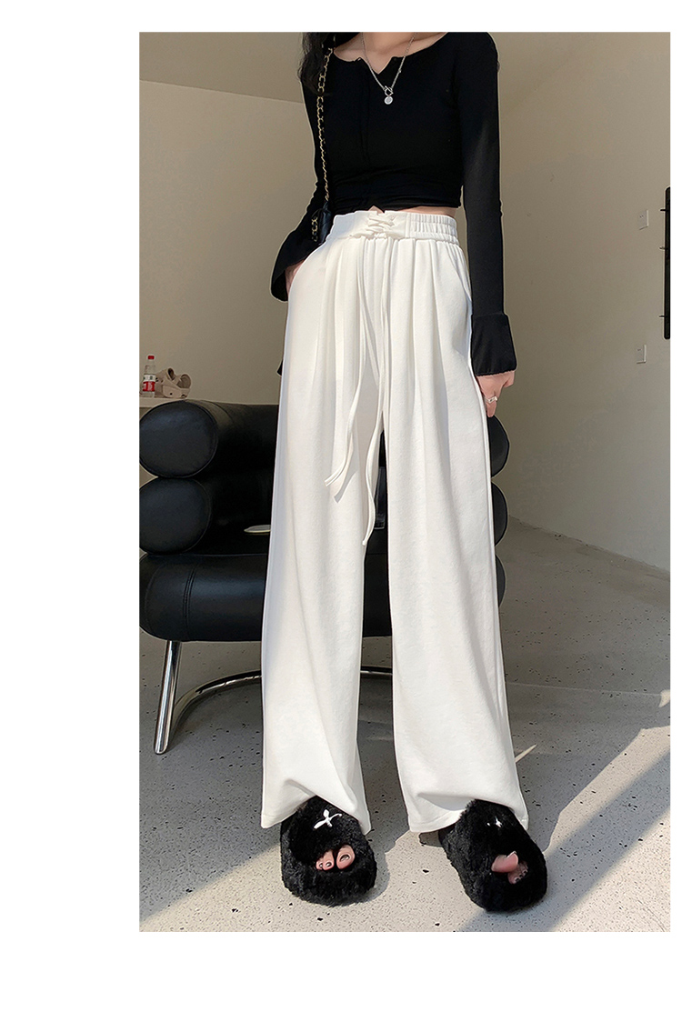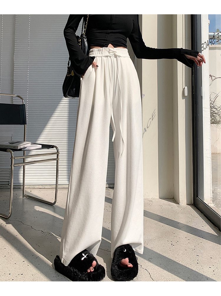 운동 바지 여성 봄 2026 새로운 캐주얼 루즈핏 하이웨이스트 스트레이트 웨이 바지 작은 키 화이트 좁은 에디션 와이드 레그 팬츠
