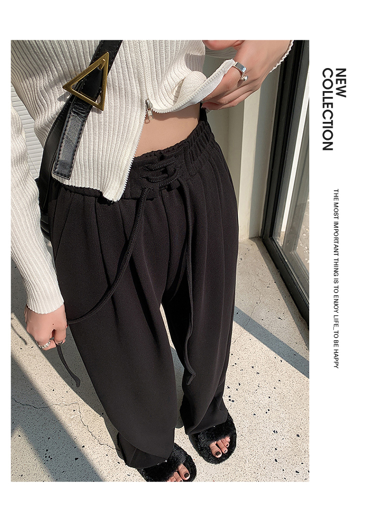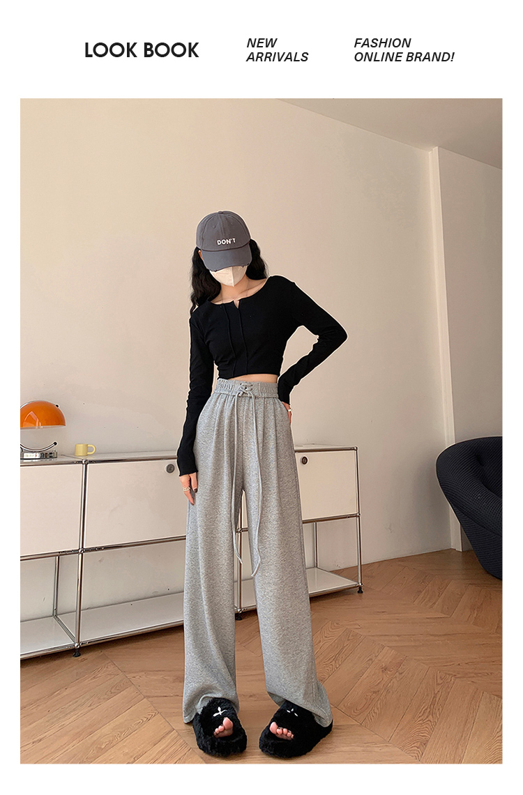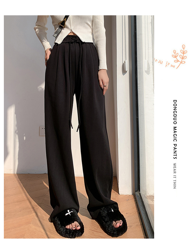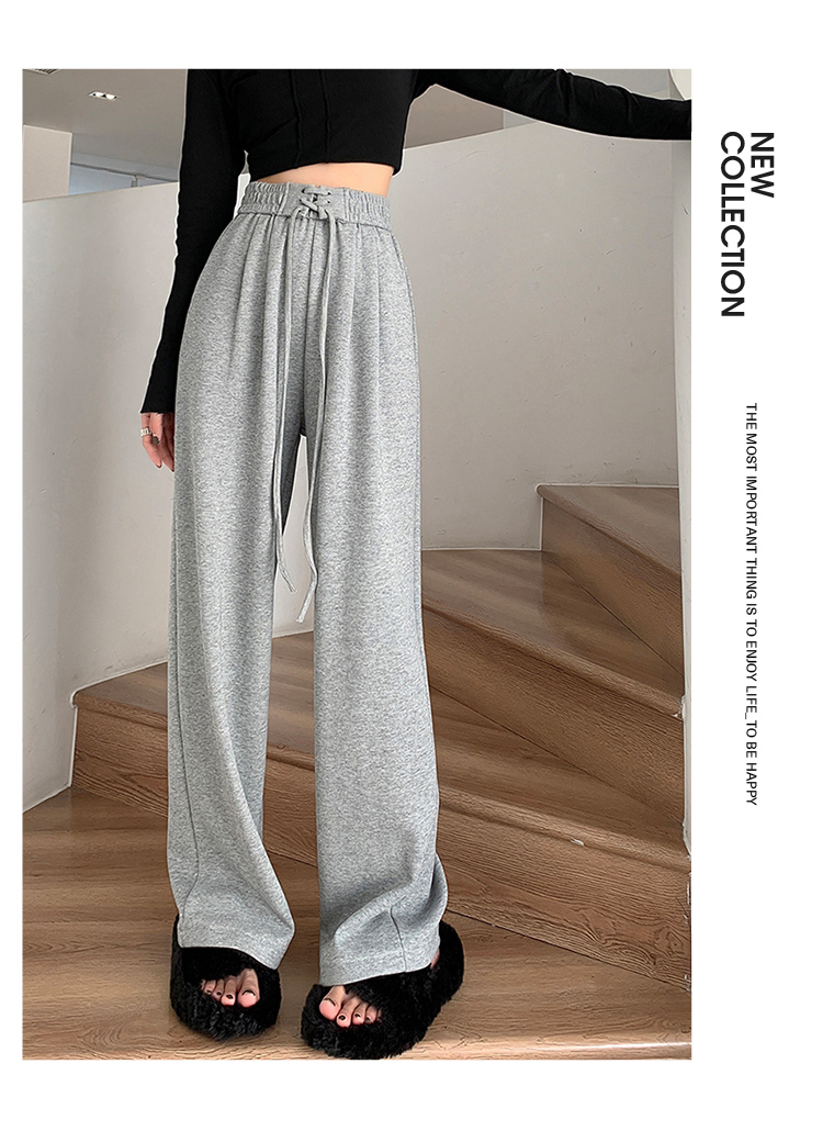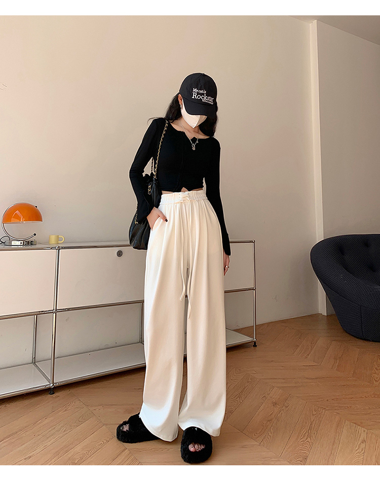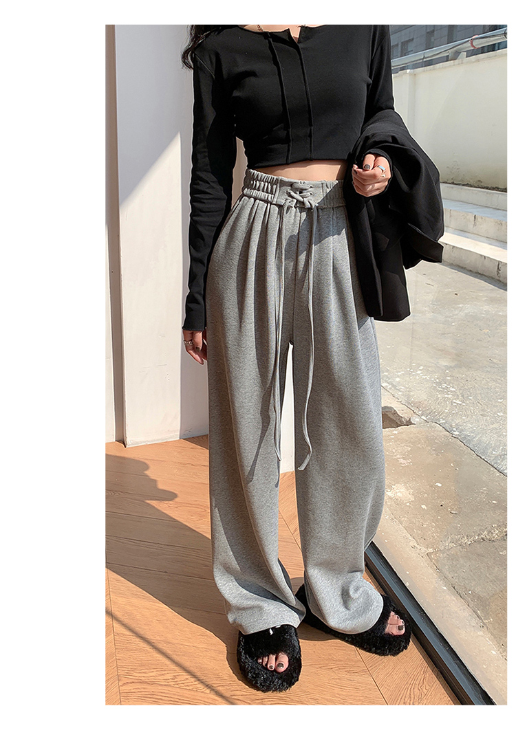 운동 바지 여성 봄 2026 새로운 캐주얼 루즈핏 하이웨이스트 스트레이트 웨이 바지 작은 키 화이트 좁은 에디션 와이드 레그 팬츠