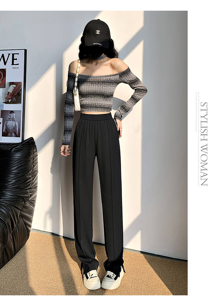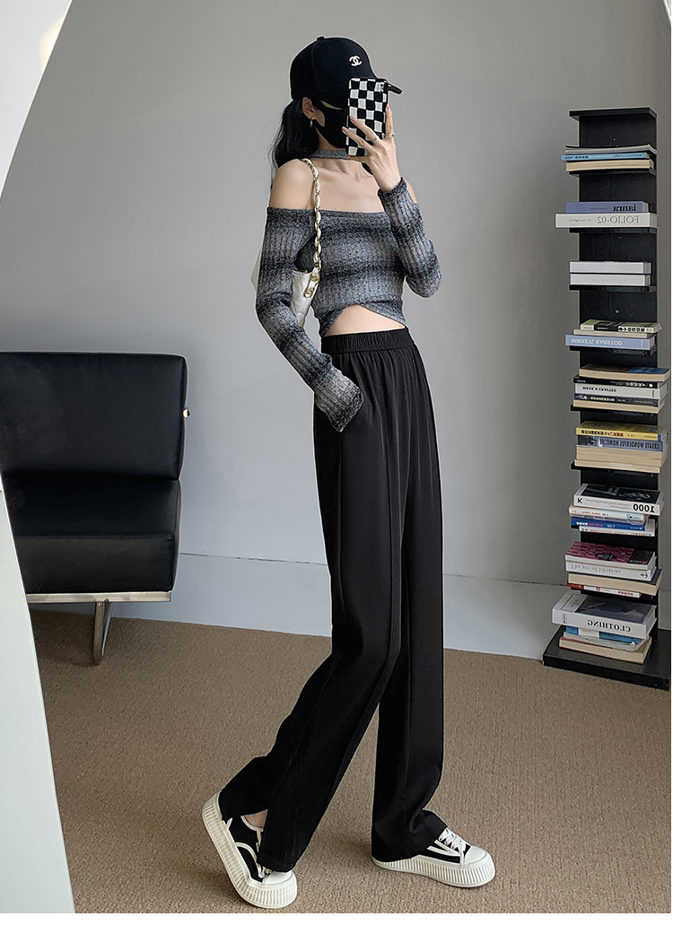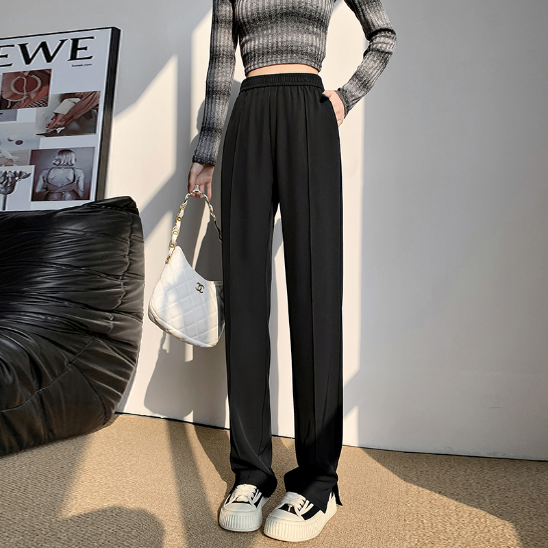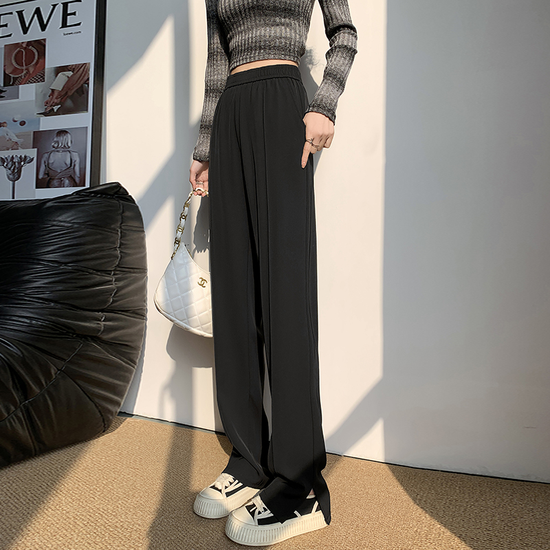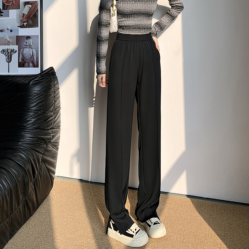좁은 에디션 정장 와이드 레깅스 바지 2026 새로운 하이웨이스트 도루 센스 봄 가을 슬림해 보이는 검정색 캐주얼 스트레이트 일 바지