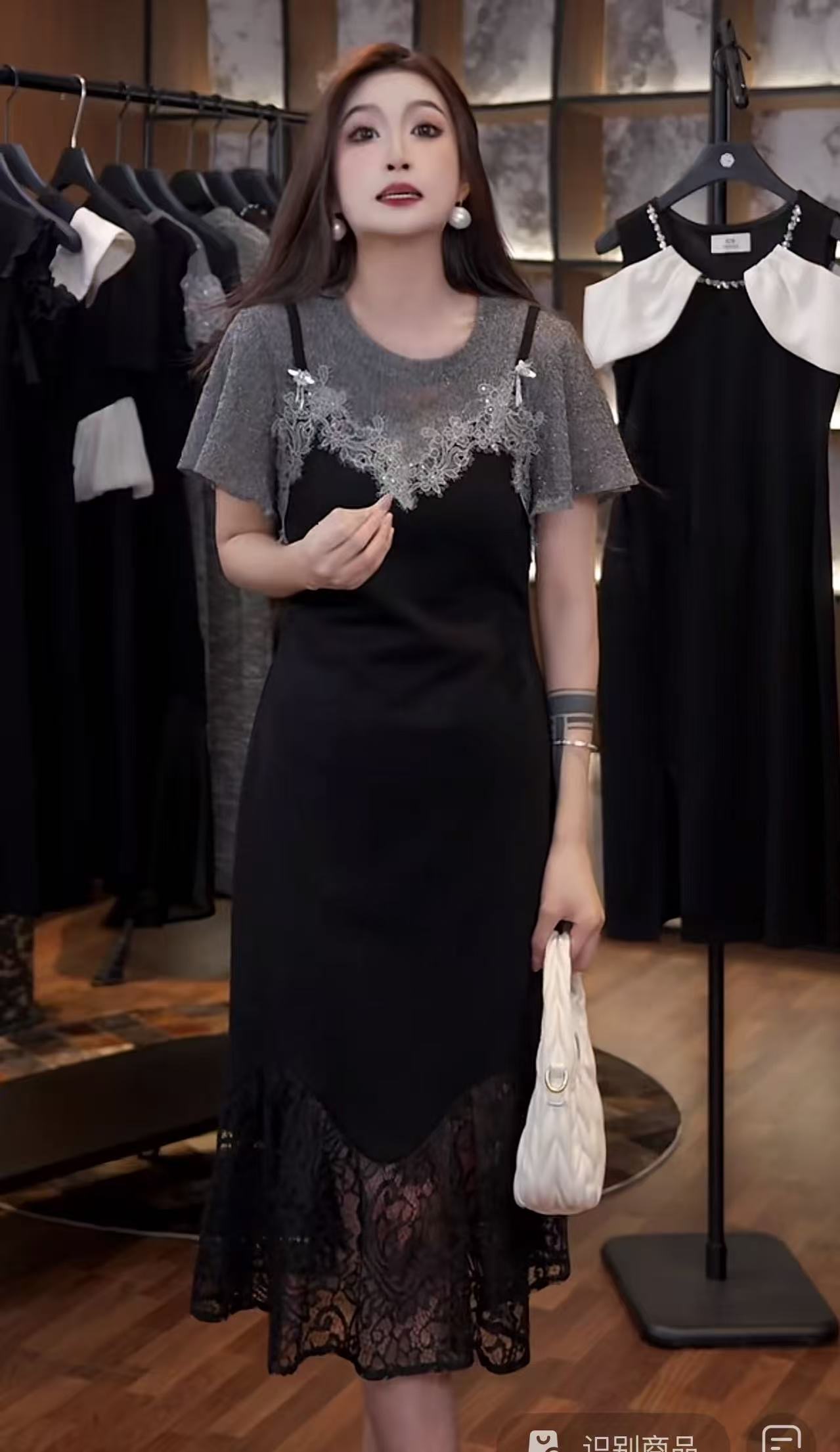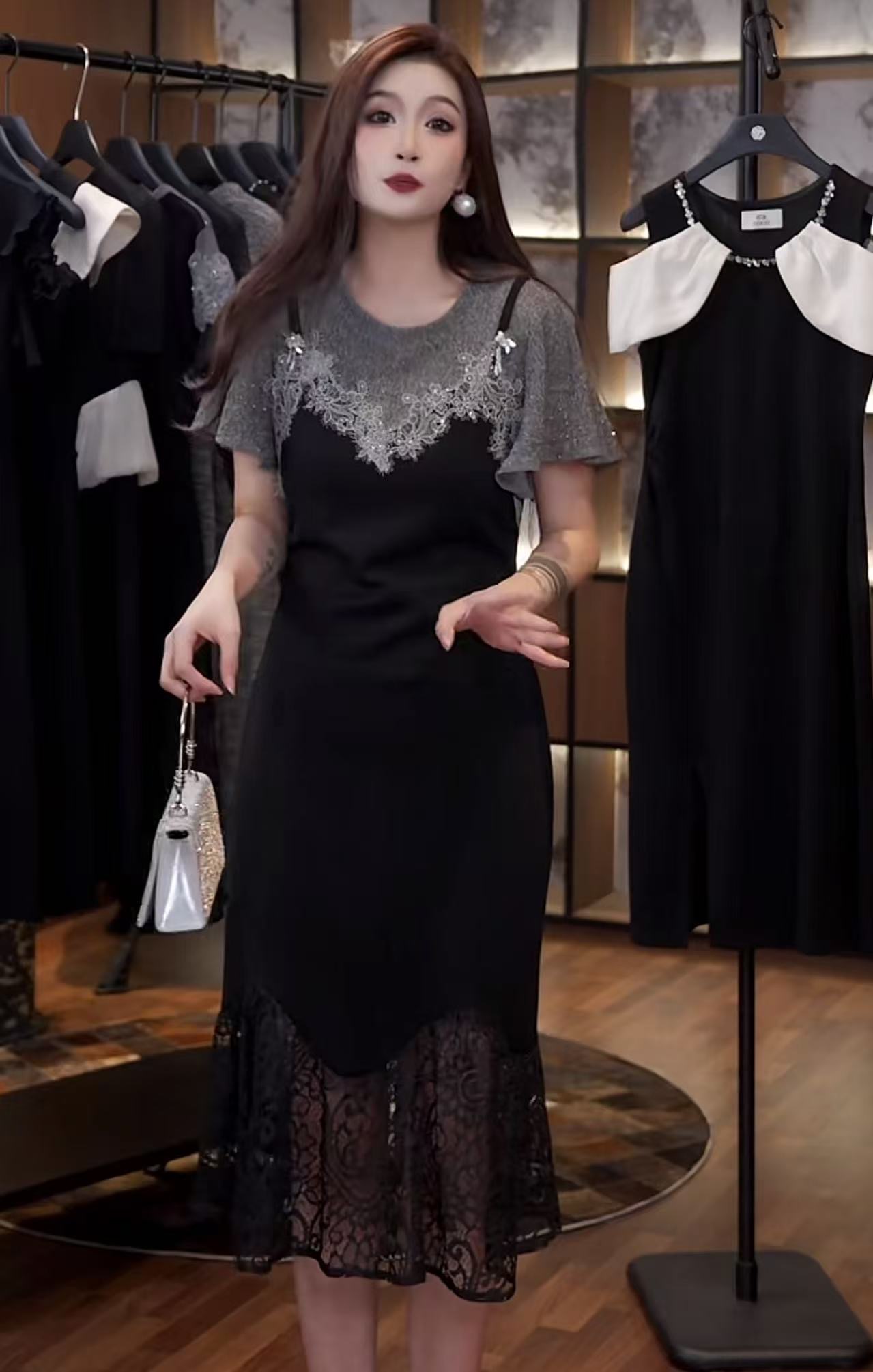 있음 선적 빛 럭셔리 무거운 작업 비즈 박기 스팽글 검정색 드레스 고급 센스 연령 감소 품격 작은 검은 드레스