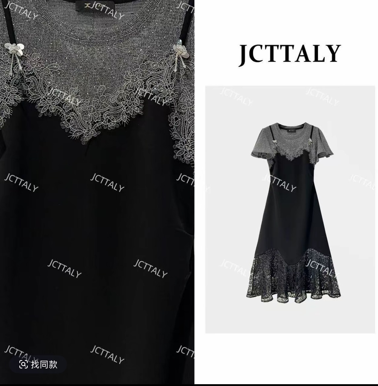 선적 중 망사 패치워크 드레스