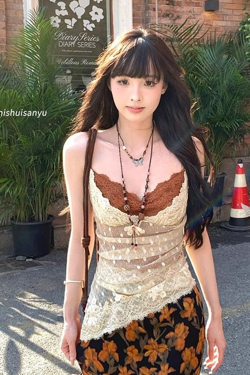 2026 새로운 한국 스타일 패션 다용도 디스플레이 슬림 수준 센스 품격 도트 무늬 쉬폰 캐미솔