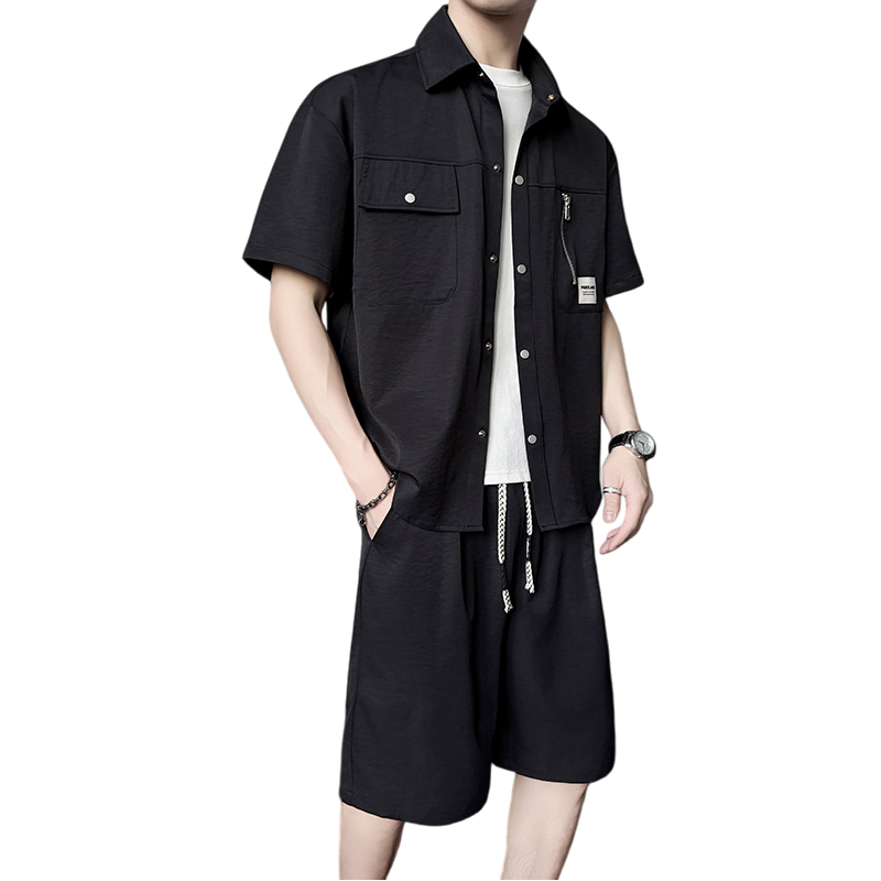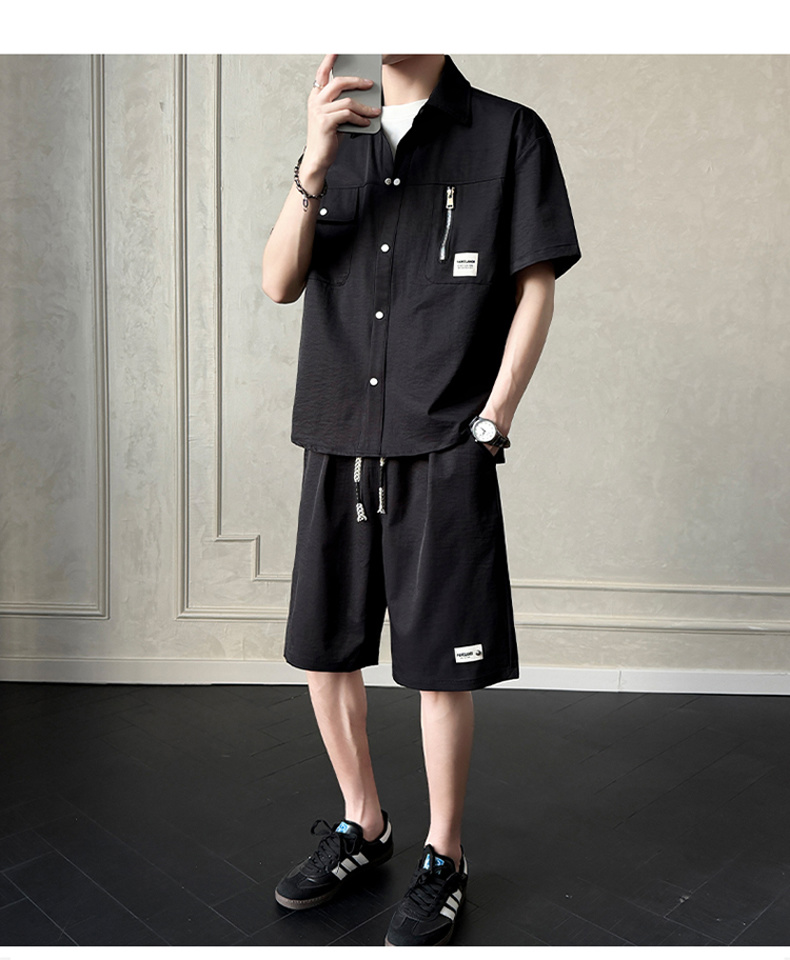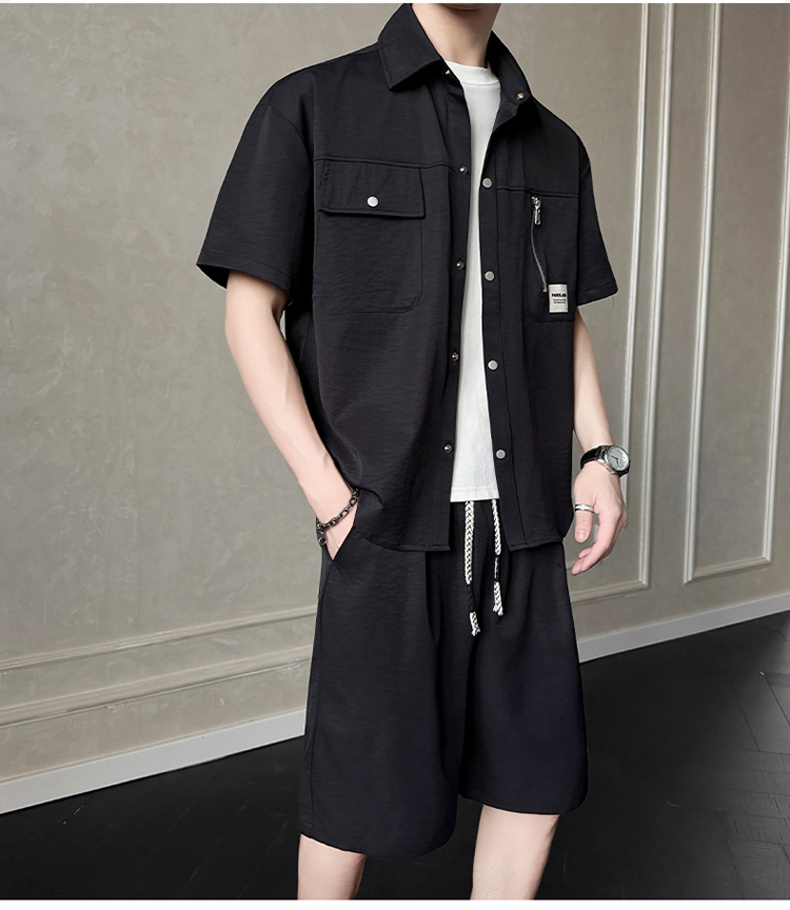 새로운 산소 면 청소년 미니멀리즘 여름 새로운 캐주얼 스포츠 슈트 남자 260 그램 새로운 산소 면 세트