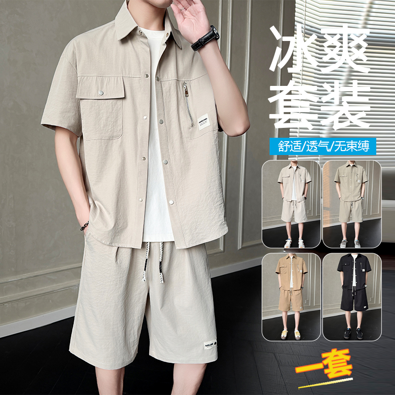 새로운 워크웨어 남자 루즈핏 캐주얼 오부 바지 커플 조수 브랜드 반바지 야외 얼음 실크 속도 말라 죽다 호흡 곤란 바지