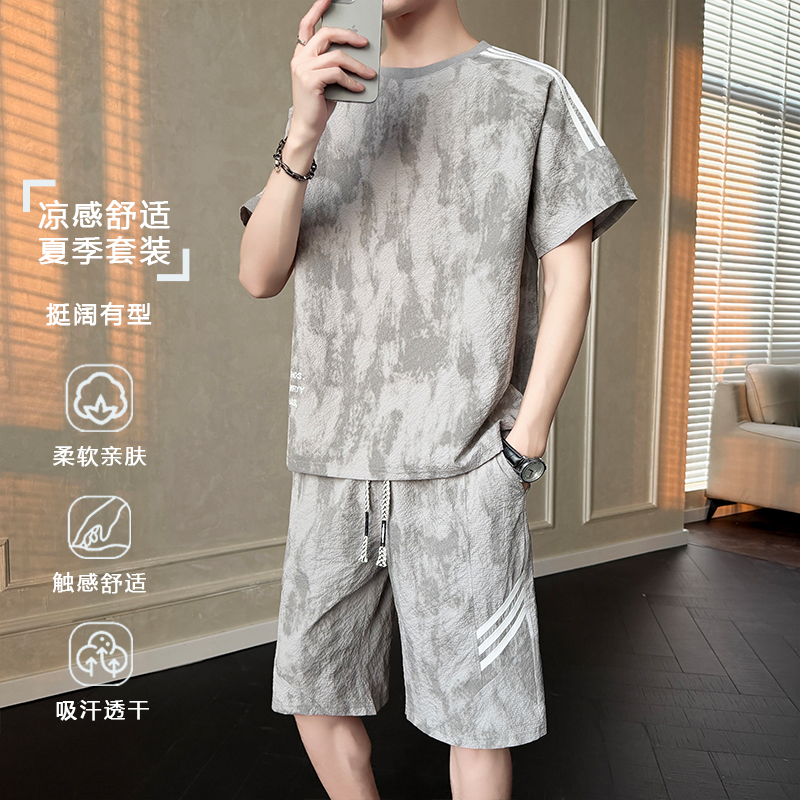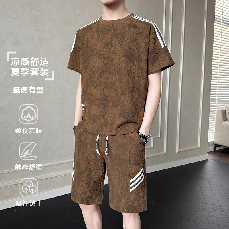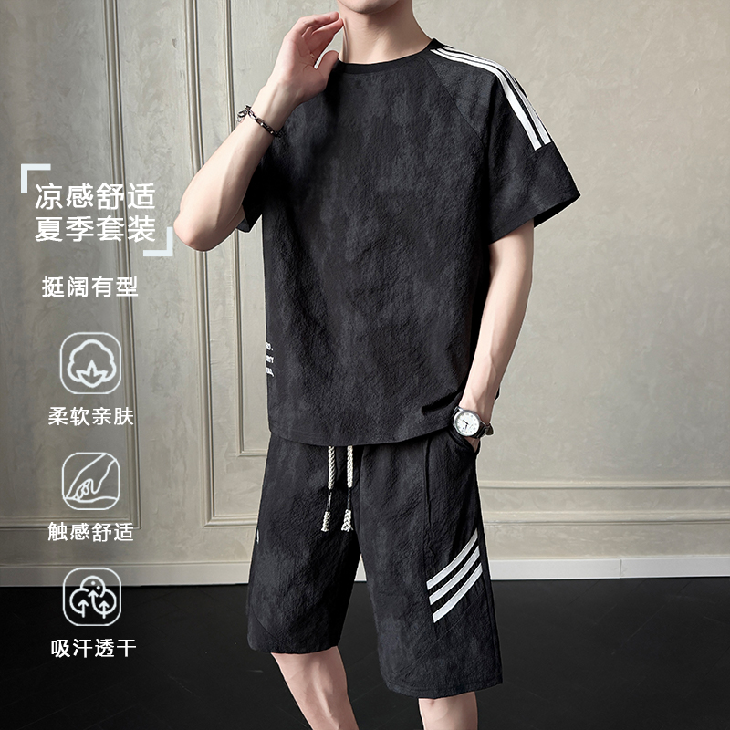 260 그램 갱신 산소 면 청소년 미니멀리즘 여름 새로운 캐주얼 스포츠 슈트