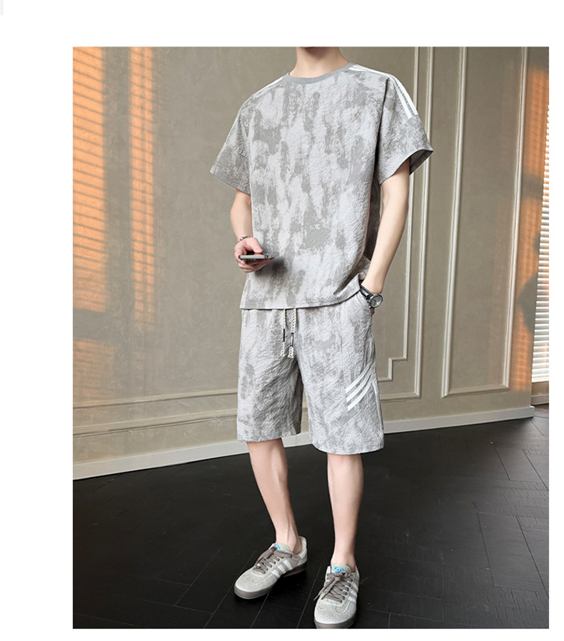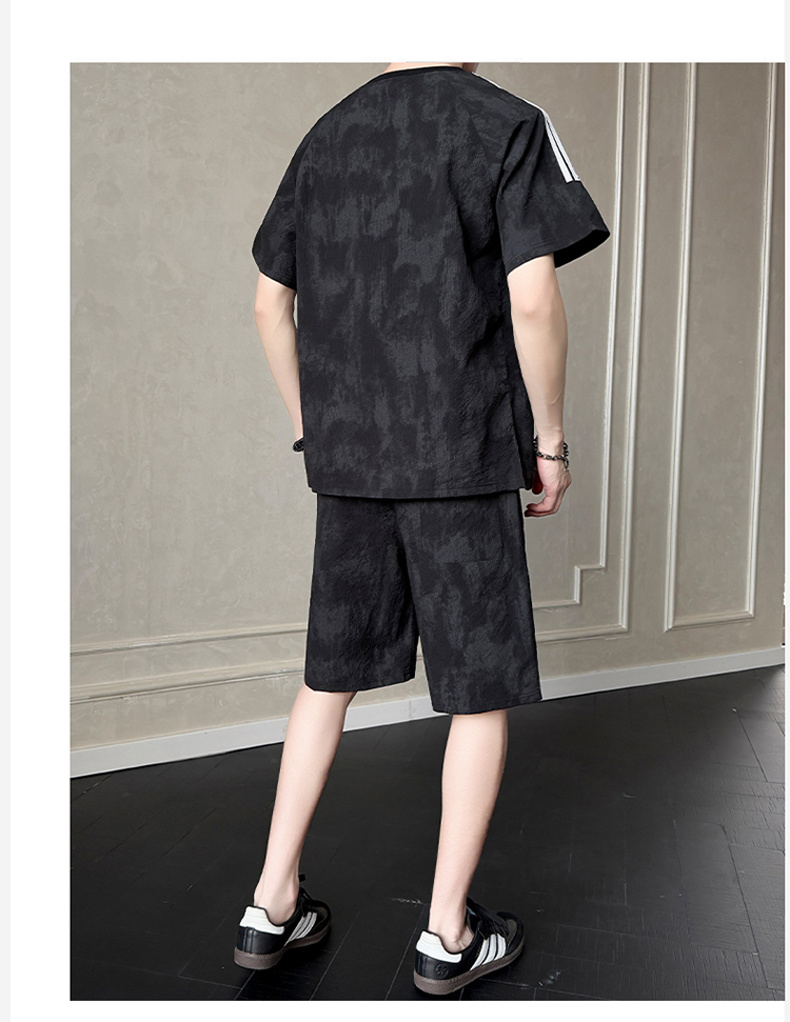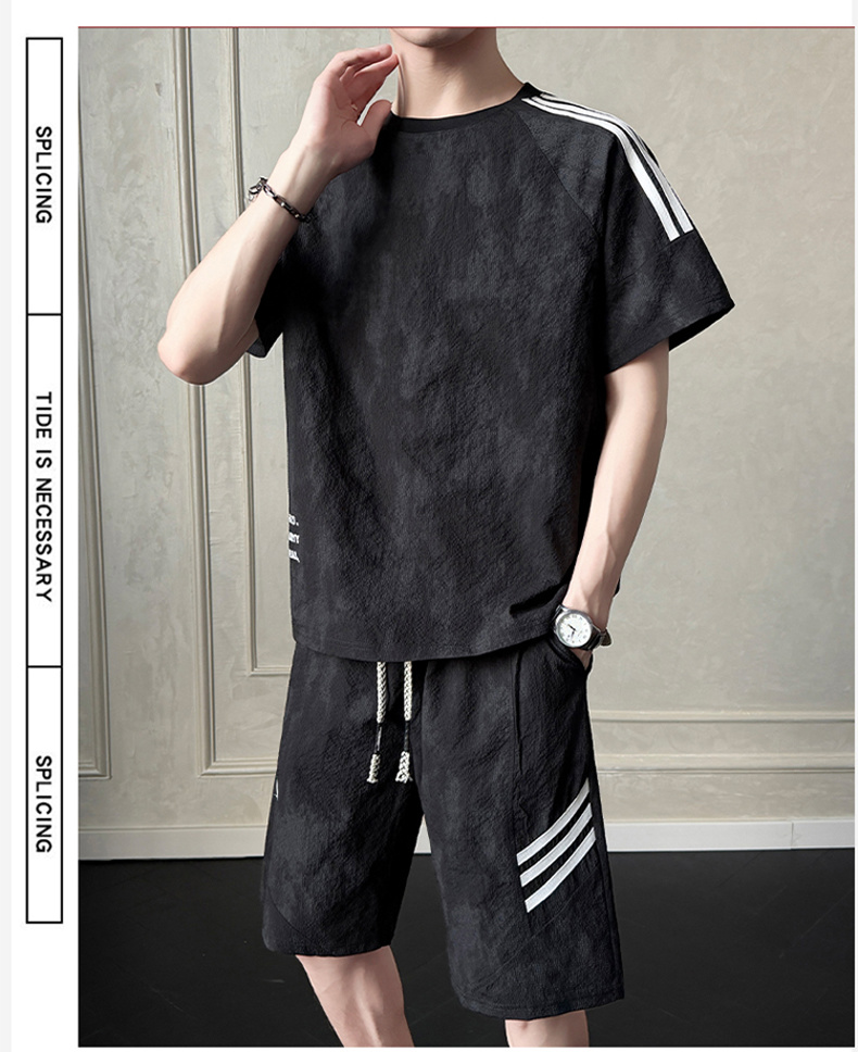 새로운 산소 면 청소년 미니멀리즘 여름 새로운 캐주얼 스포츠 슈트 남자 260 그램 새로운 산소 면 세트