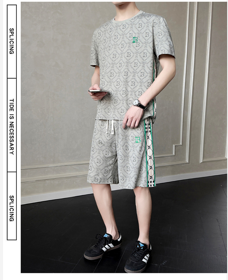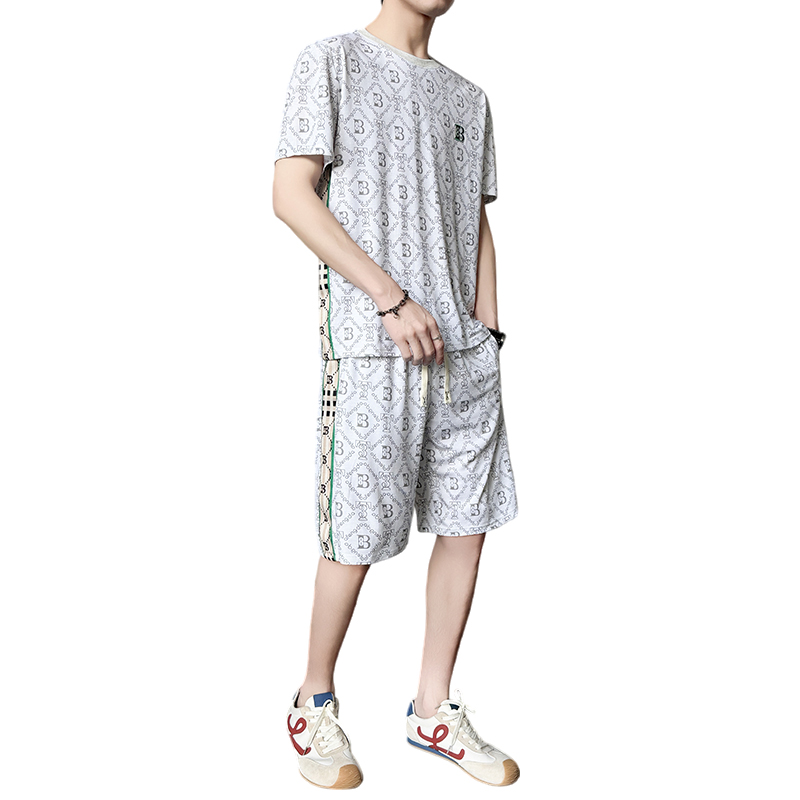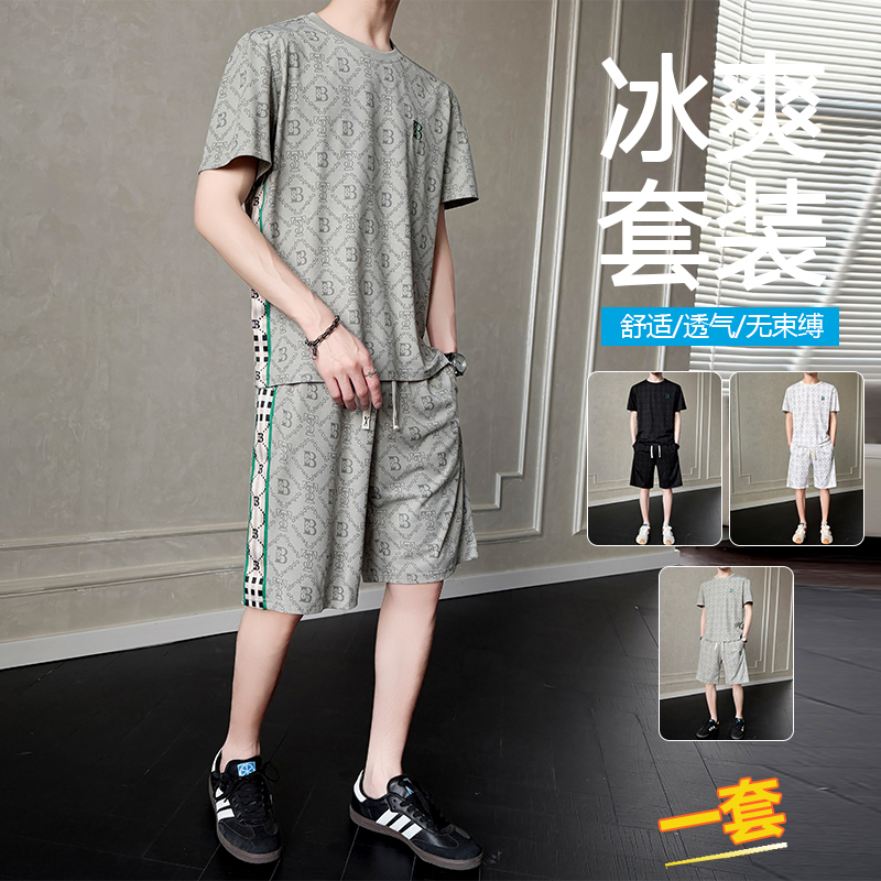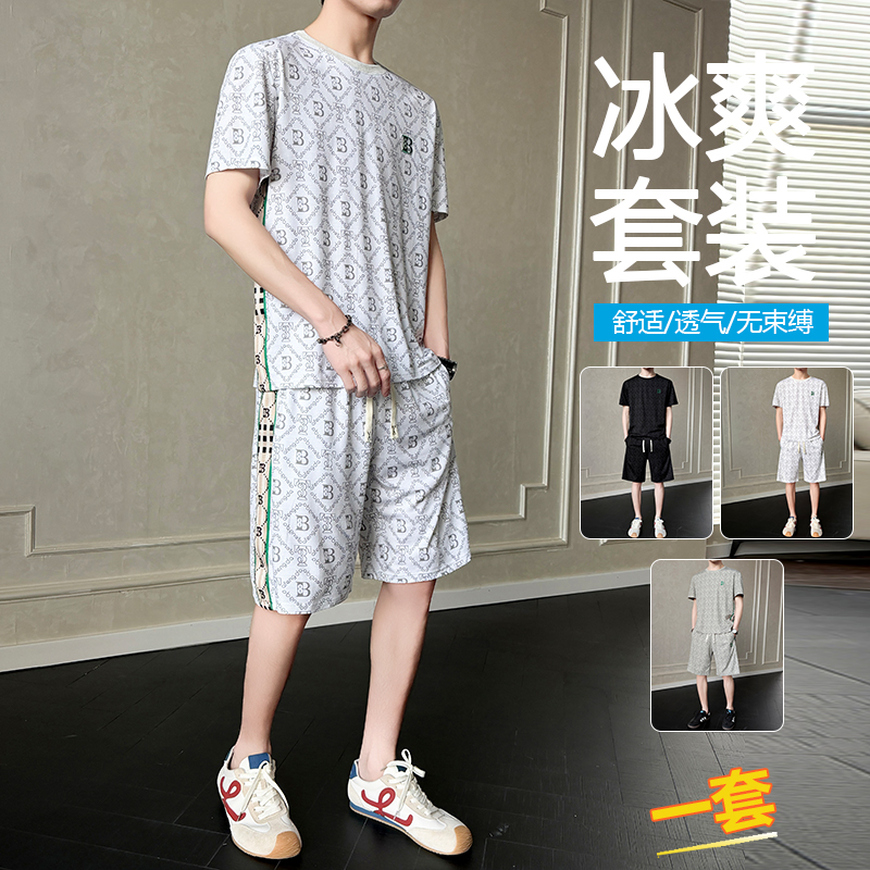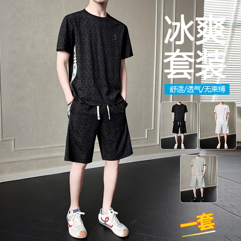 여름 새로운 홀치기 염색 얼음 실크 세트 남성 캐주얼 운동 해변 반팔 티셔츠 반바지 남성 의류 조수 브랜드