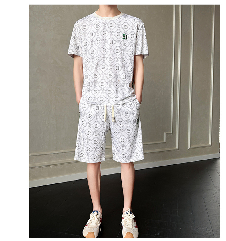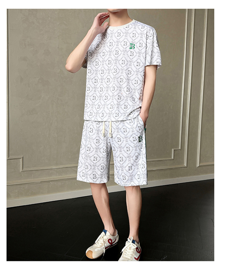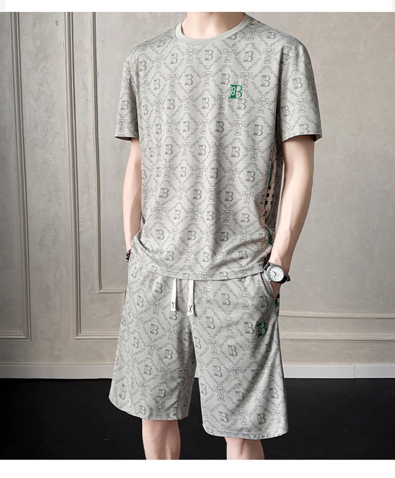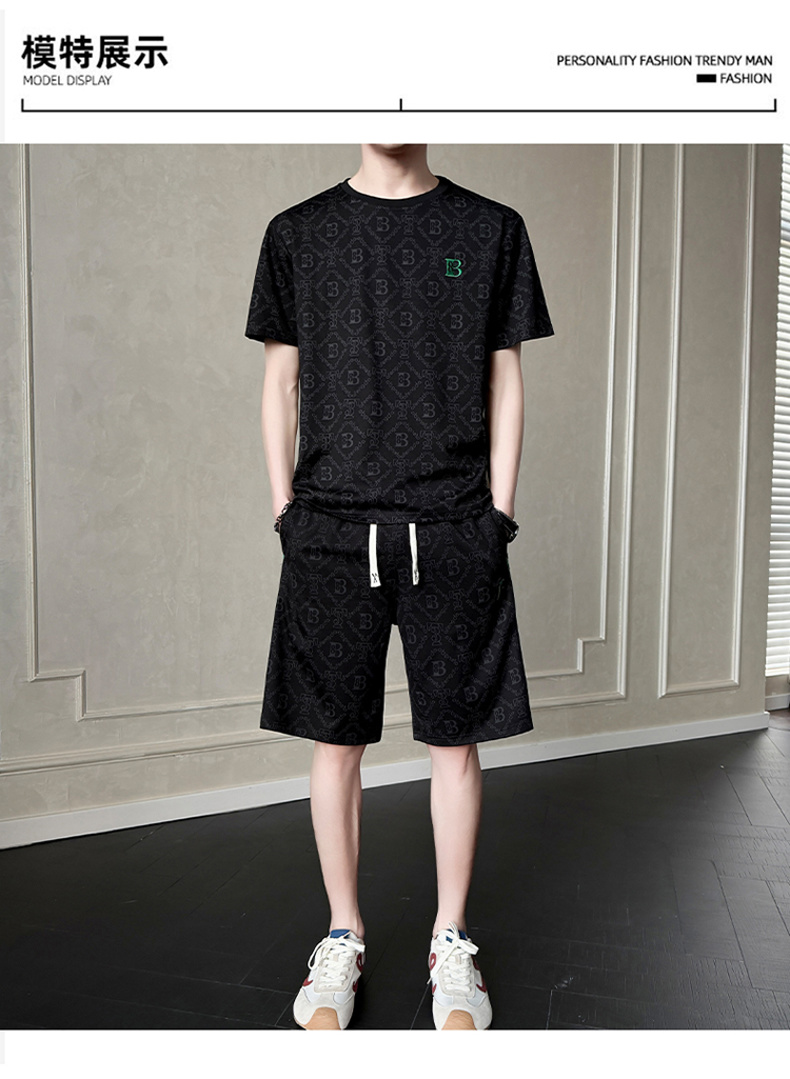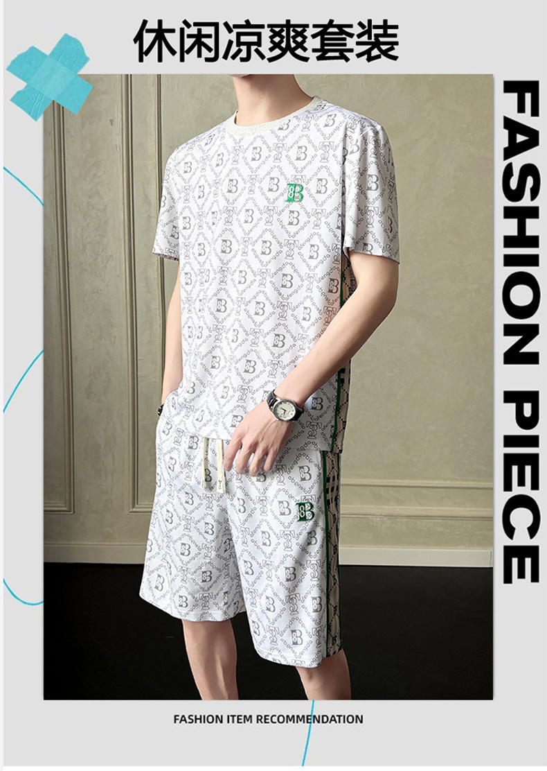 여름 새로운 홀치기 염색 얼음 실크 세트 남성 캐주얼 운동 해변 반팔 티셔츠 반바지 남성 의류 조수 브랜드