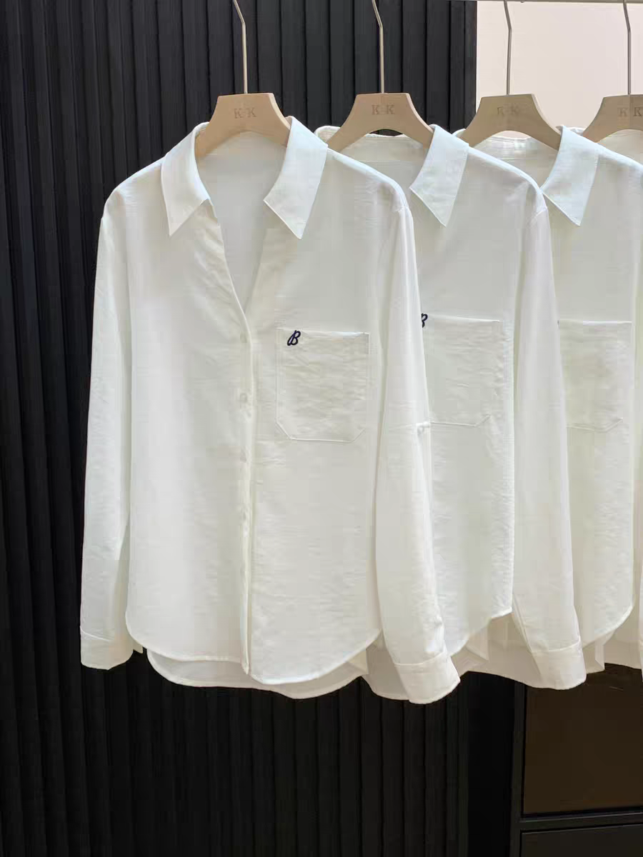 화이트 순면 자카드 질감 얇은 스타일 셔츠 여성 여름 루즈핏 가을 어깨 긴팔 맨위 다용도 캐주얼 셔츠