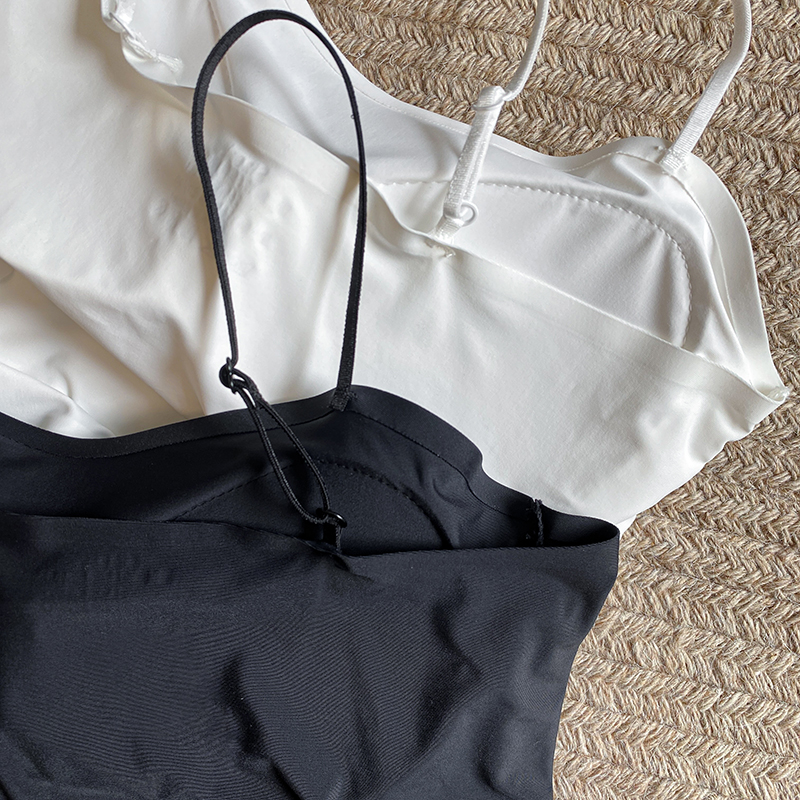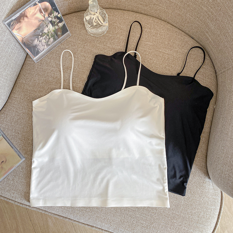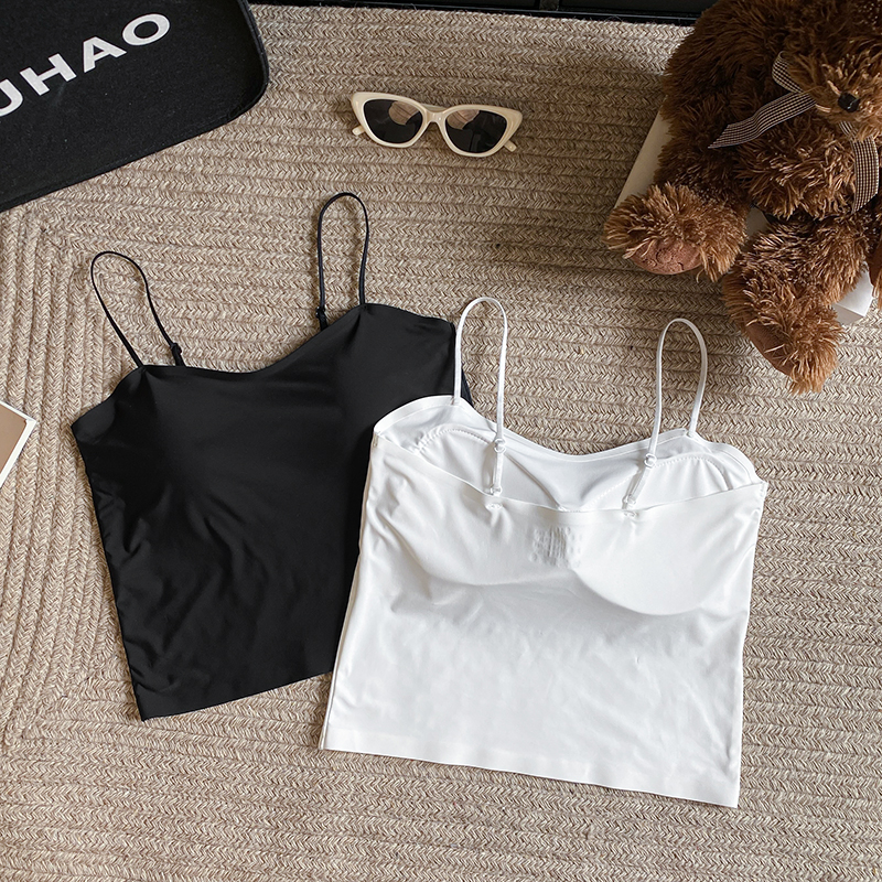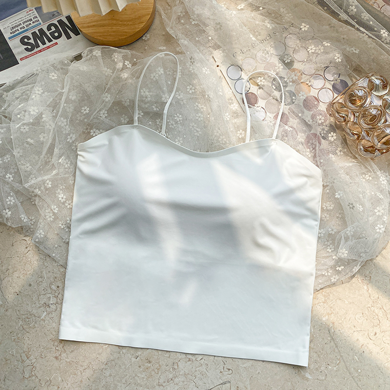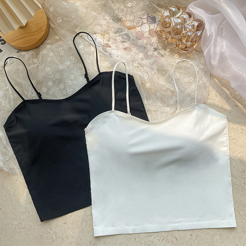 실사 한 단어 와이 얼음 실크 없음 흔적 만나는 속옷 인사이드 가져 가라. 캐미솔 미니멀리즘 바람 외출용 민소매 맨위