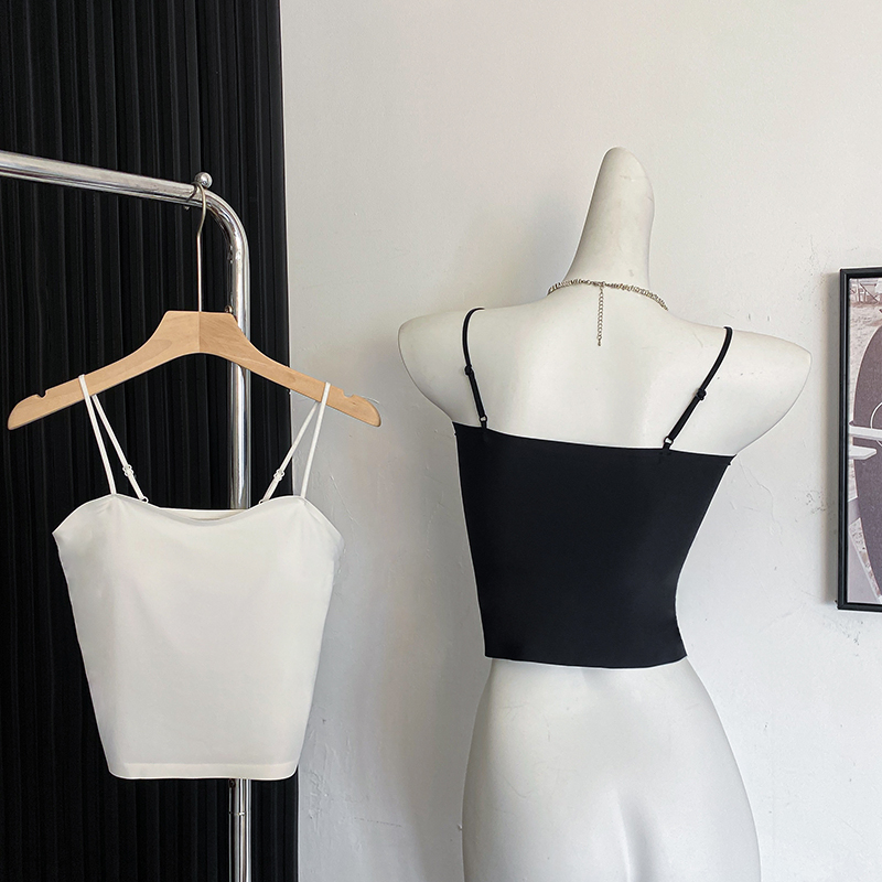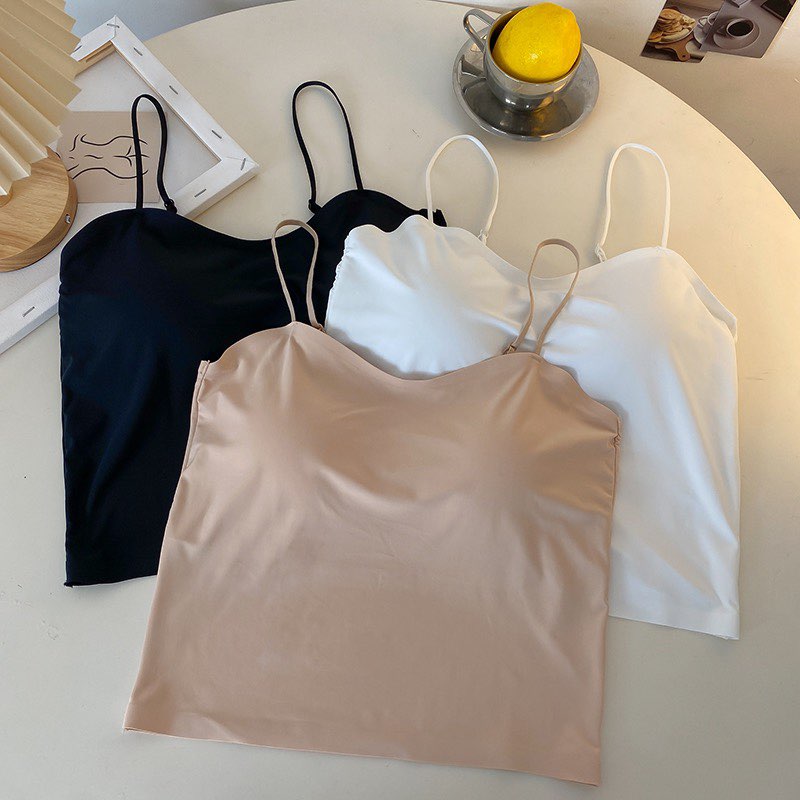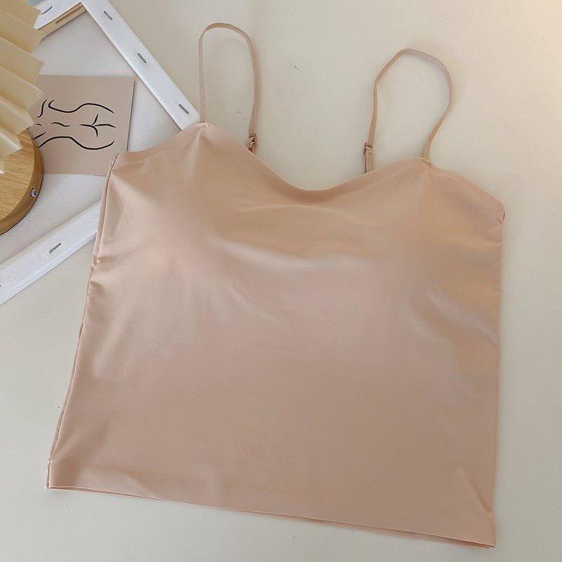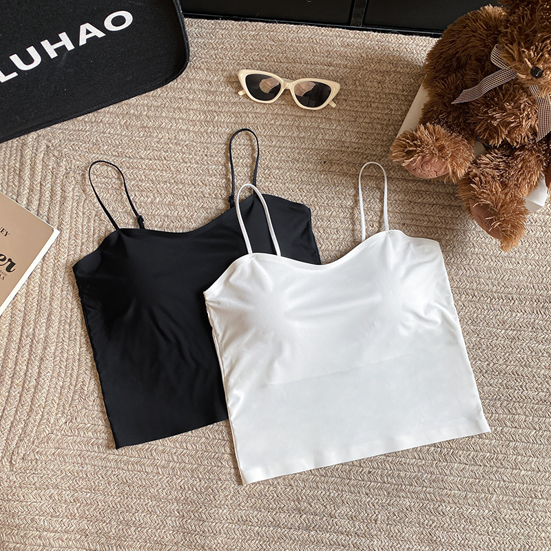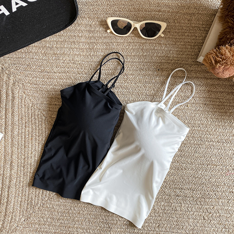 실사 한 단어 와이 얼음 실크 없음 흔적 만나는 속옷 인사이드 가져 가라. 캐미솔 미니멀리즘 바람 외출용 민소매 맨위