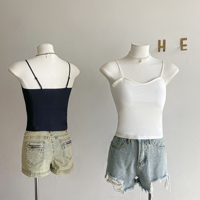 실사 봄 여름 섹션 망사 만나는 캐미솔 벨트 가슴 패드 인사이드 가져 가라. 기본 셔츠 쇼트 스타일 미니멀리즘 바람 포장 가슴