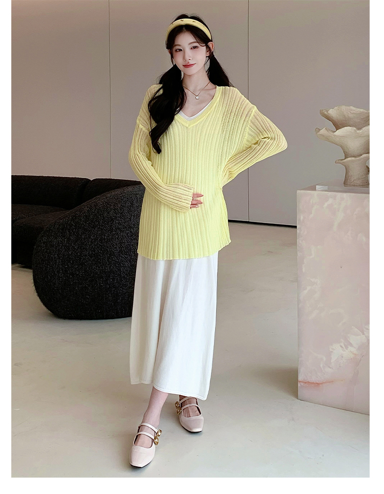 실사 한국 스타일 루즈핏 투피스 세트 초박형 니트 태양 보호 셔츠 슬립 드레스 느긋한 바람 임산부 투피스 세트
