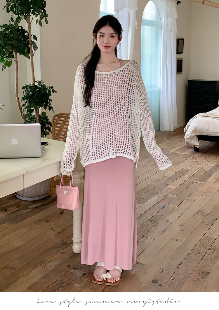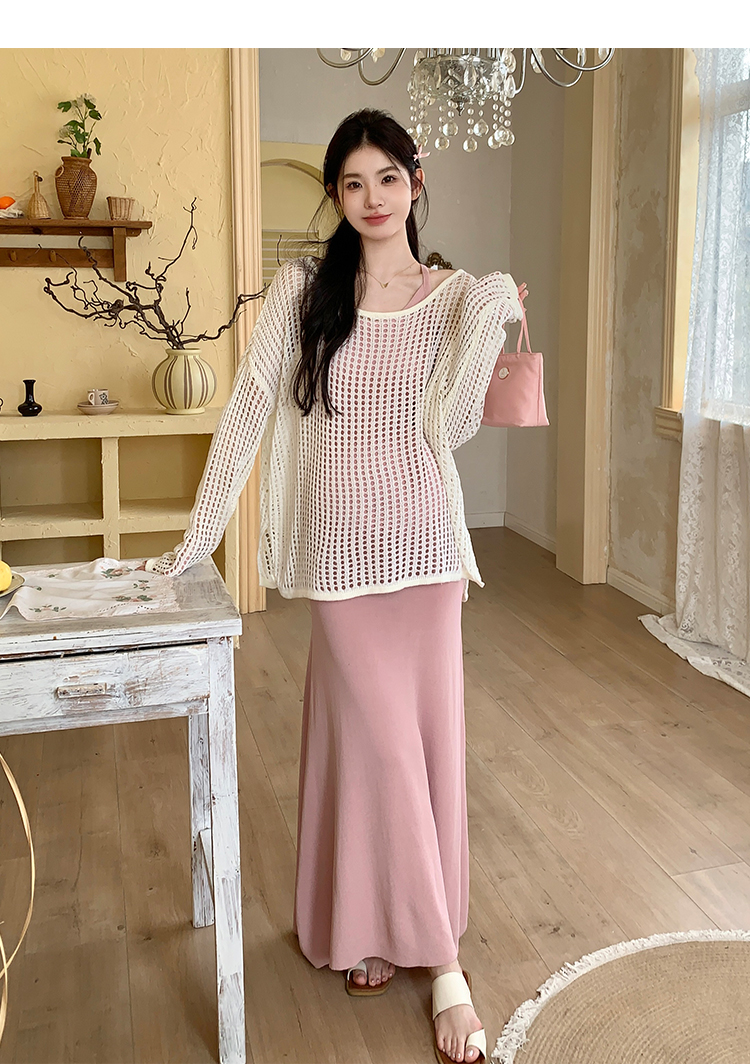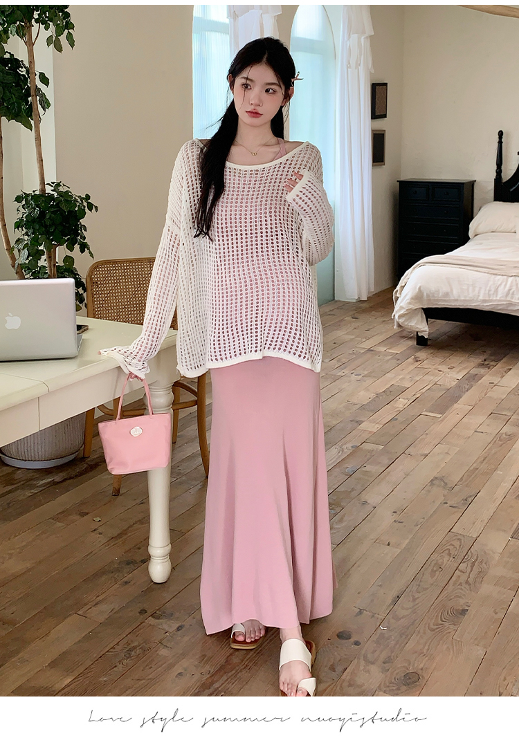 실사 한국 스타일 루즈핏 투피스 세트 초박형 니트 태양 보호 셔츠 슬립 드레스 느긋한 바람 임산부 투피스 세트