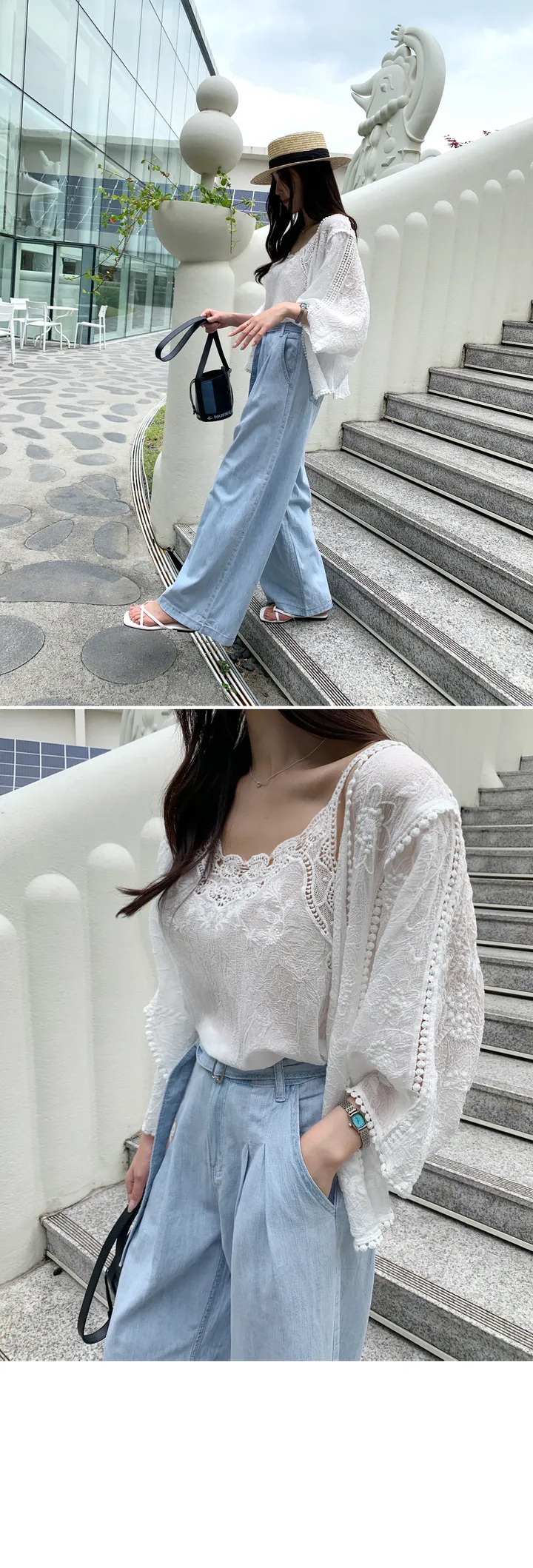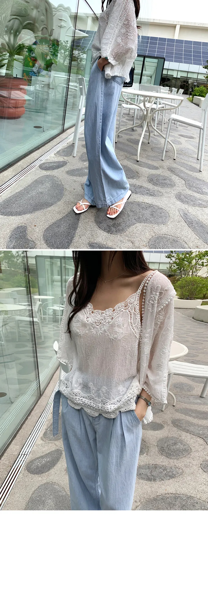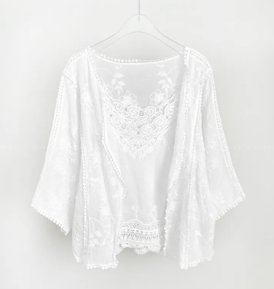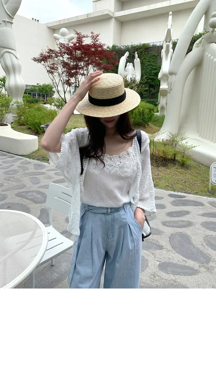 2026 년 조기 봄 한 부서 패션 새로운 고급 센스 물 용해 자수 자외선 차단 작은 셔츠 캐미솔 세트 여성