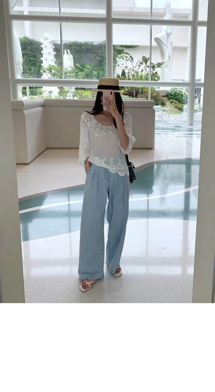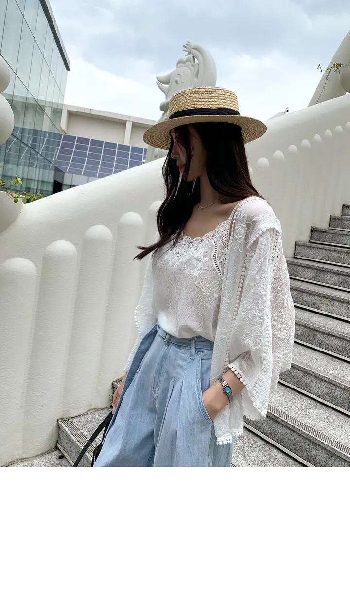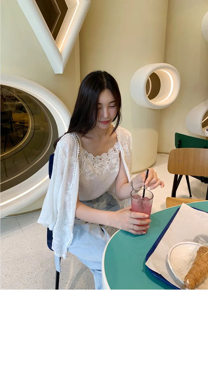 순수한 욕망 바람 얇은 스타일 마이크로 ~을 통해 슬림해 보이는 루즈핏 레이스 셔츠