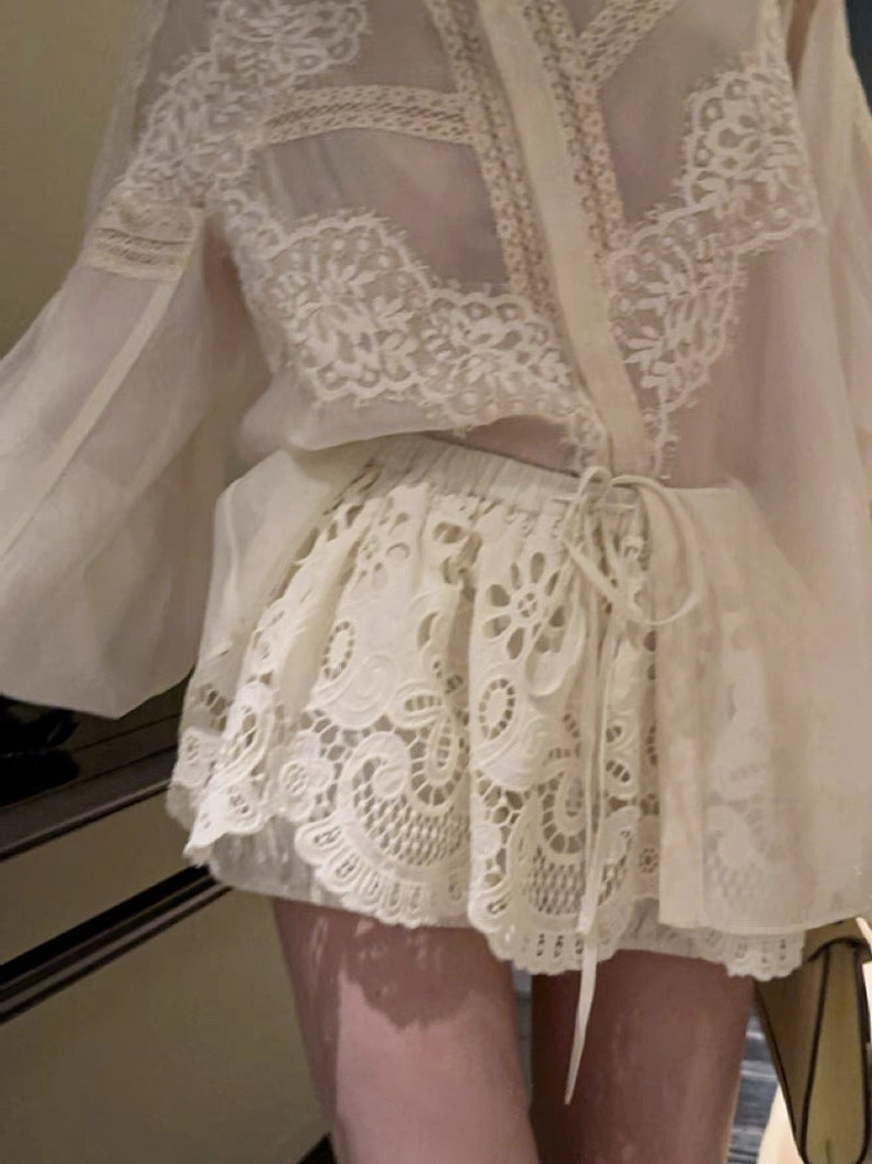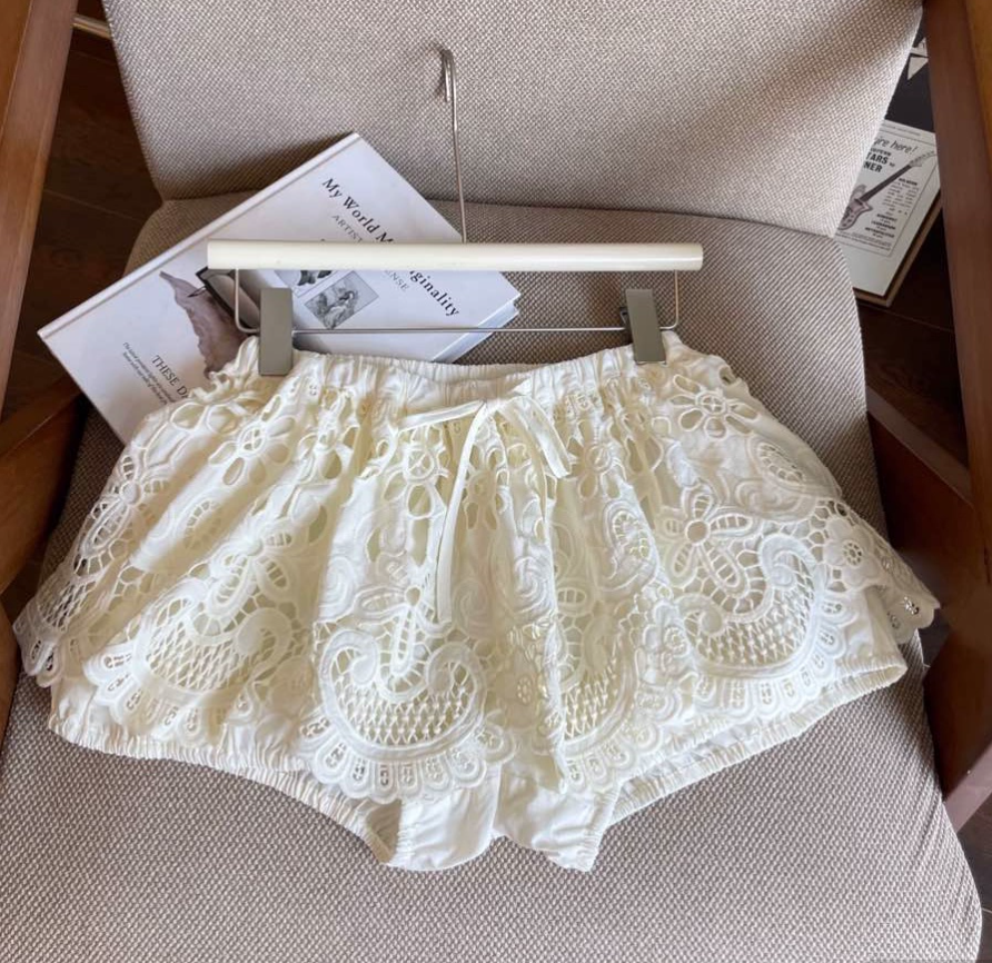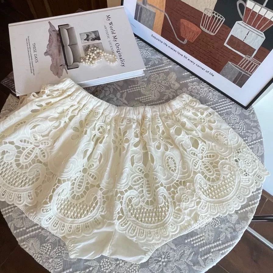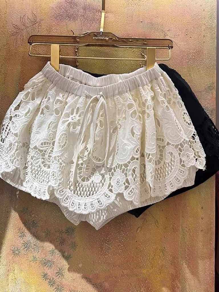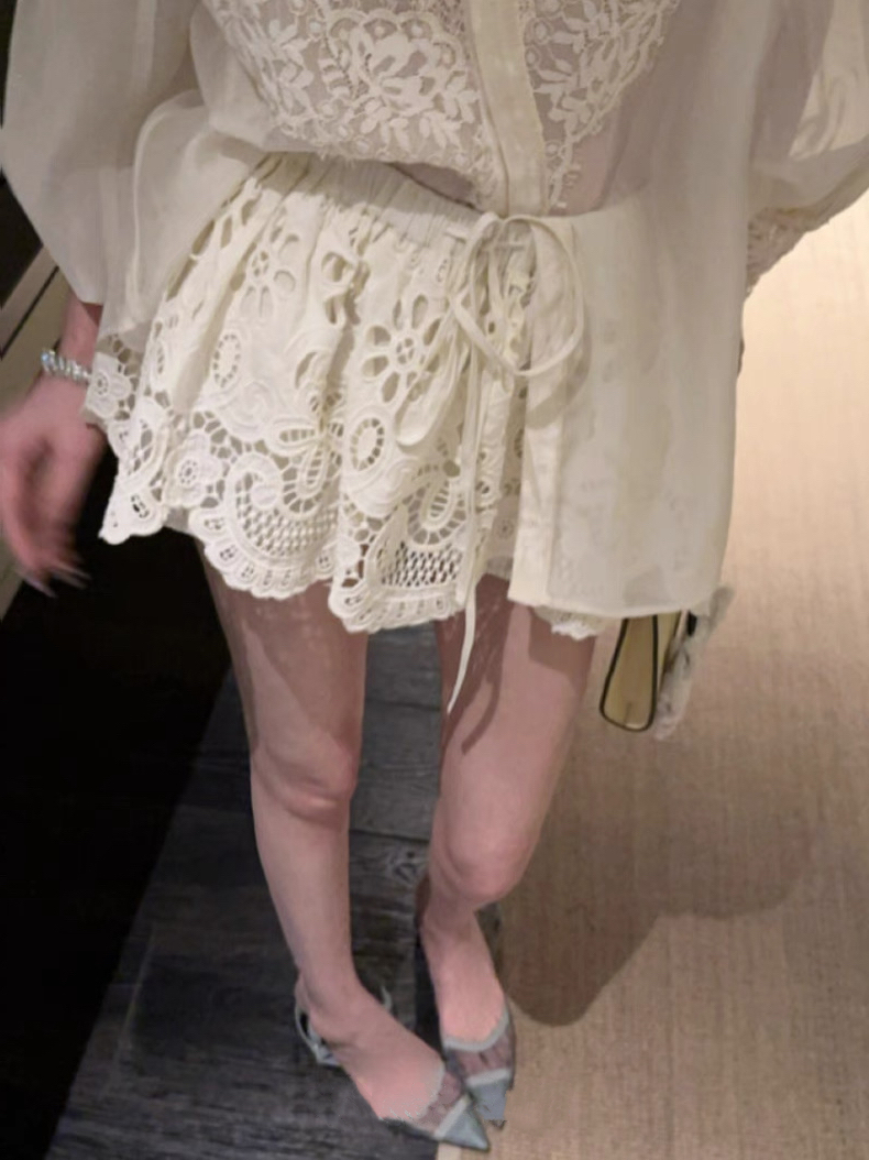 실사 프랑스식 홀로우 아웃 레이스 자수 2026 폭발 레이스업 높음 비율 퍼프 미니 스커트