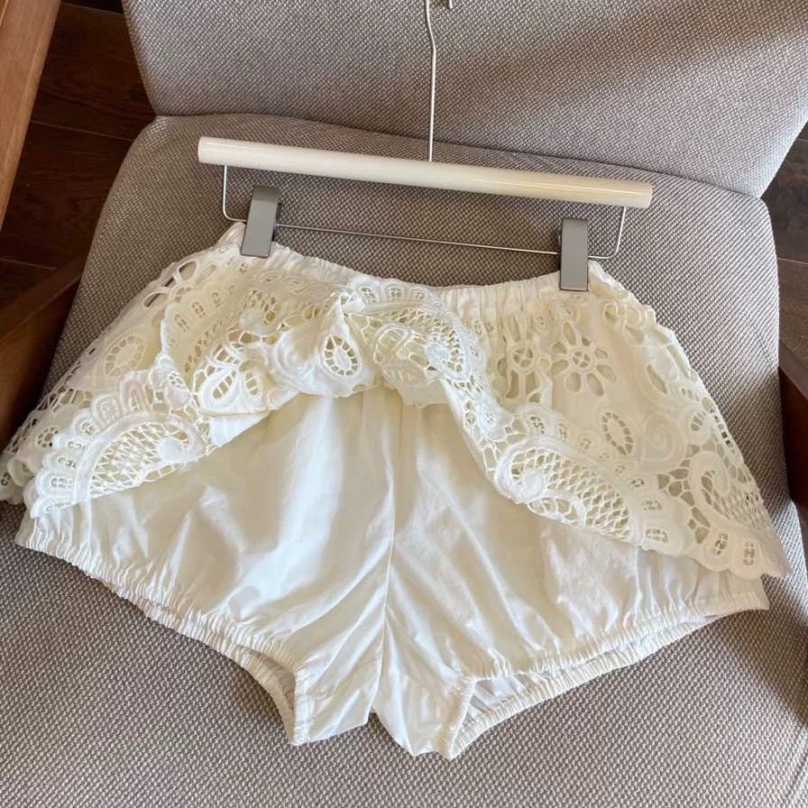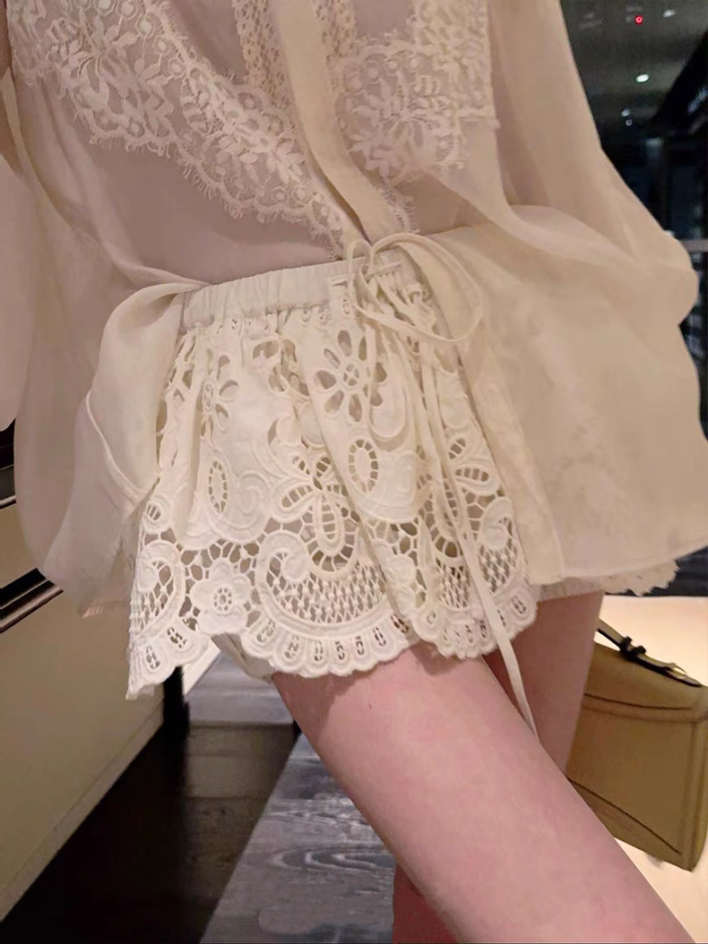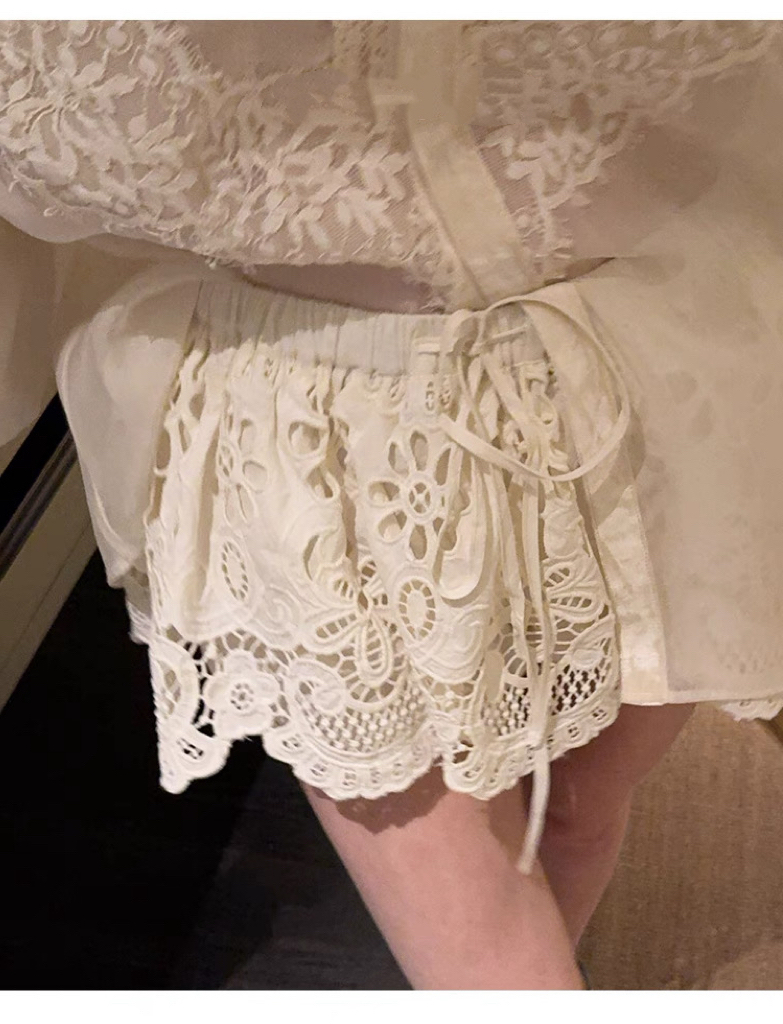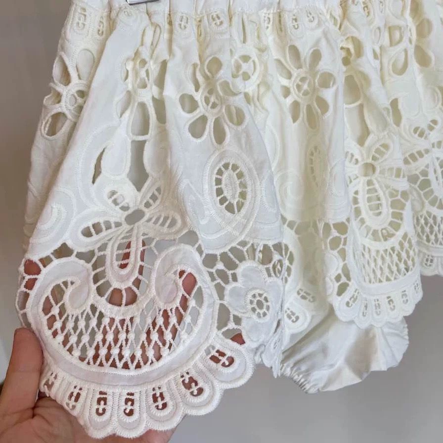 실사 프랑스식 홀로우 아웃 레이스 자수 2026 폭발 레이스업 높음 비율 퍼프 미니 스커트