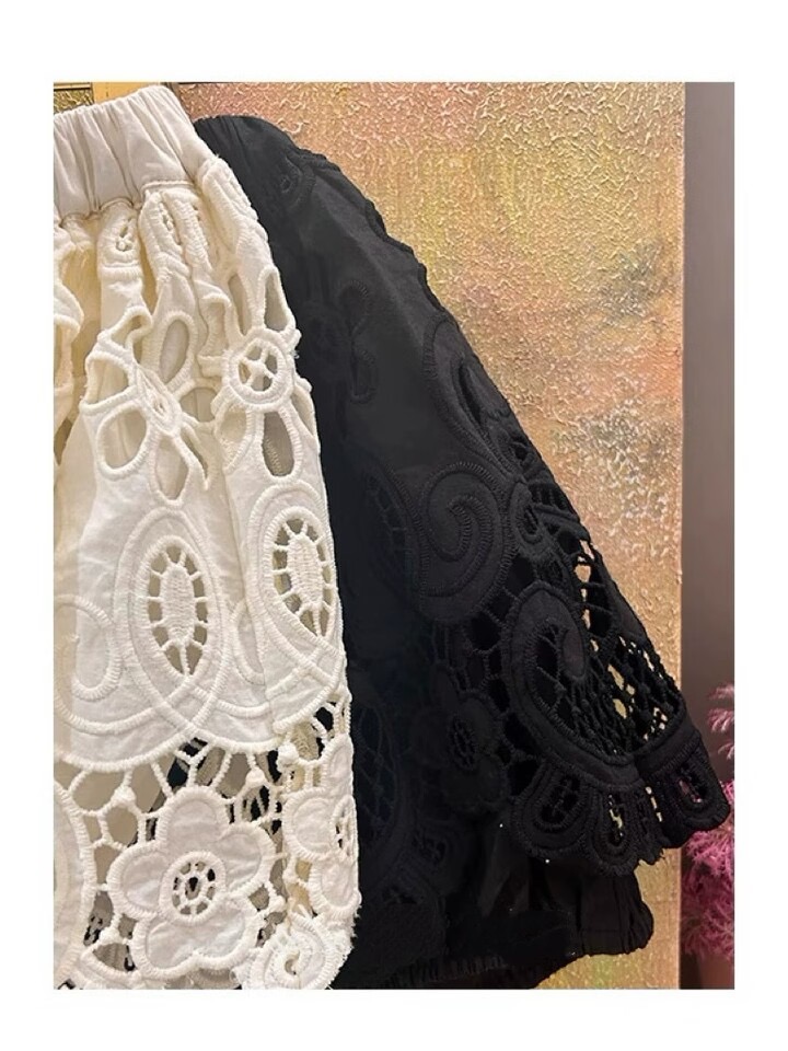 실사 프랑스식 레트로 짜임 홀로우 아웃 반신 스커트 여름 얇은 스타일 하이웨이스트 슬림해 보이는 고급 센스 한 마디 타이트 스커트 미니 스커트
