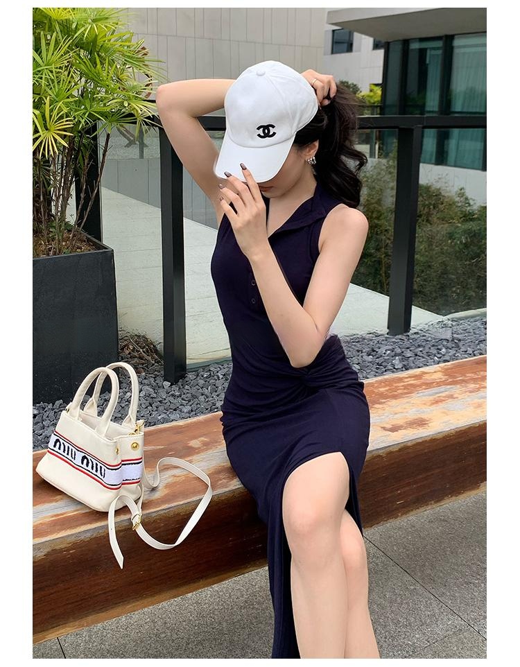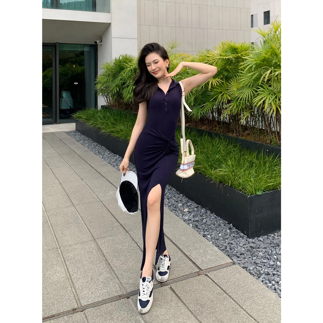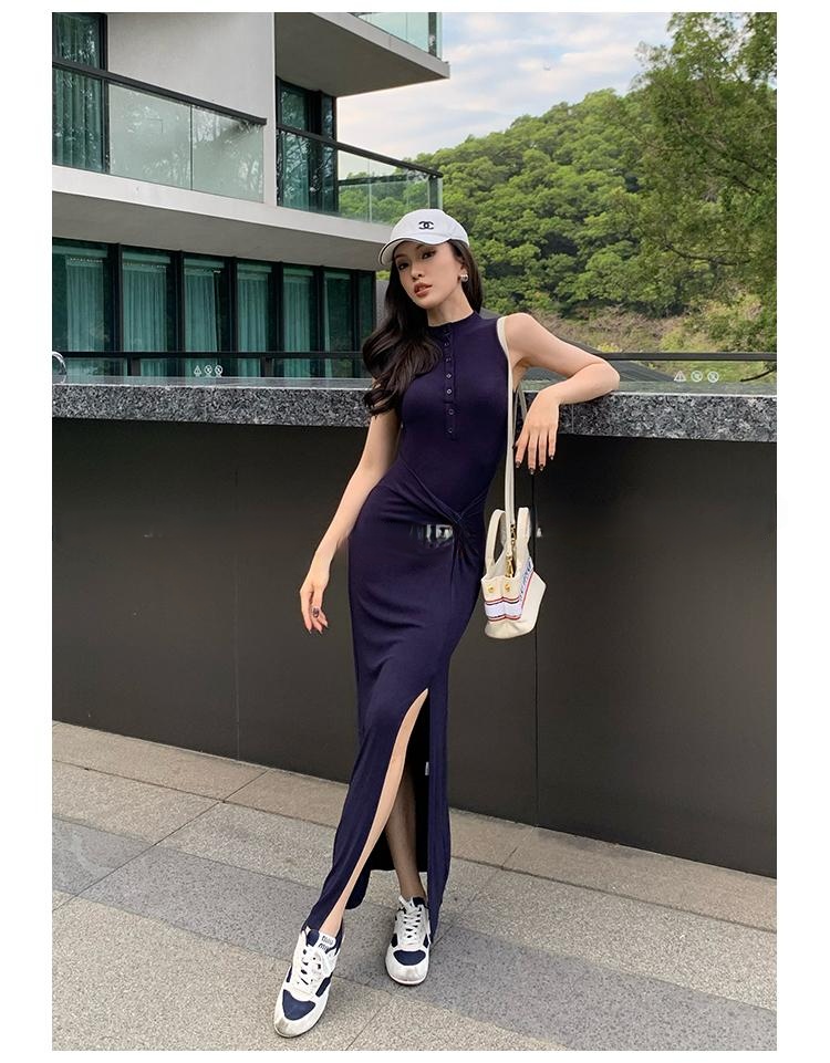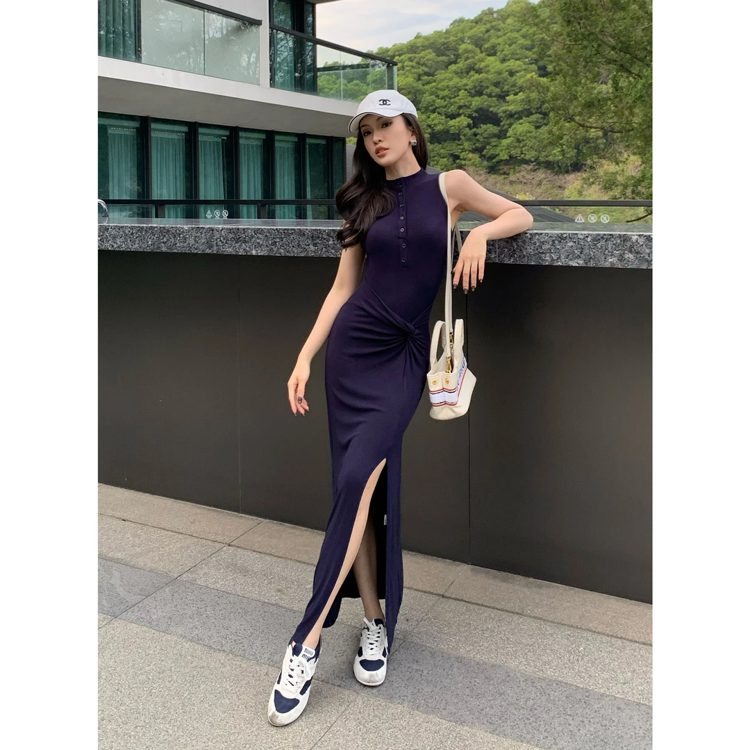 jijinqi 패션 캐주얼 바람 풀오버 섹션 민소매 허리 수축 봄 여름 일반 드레스