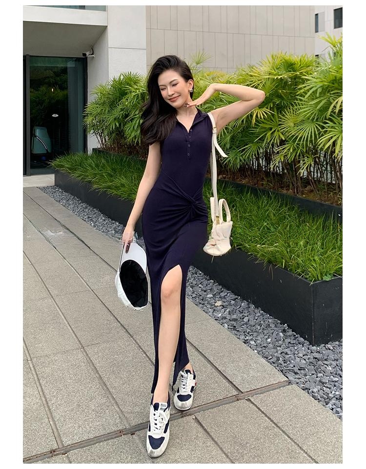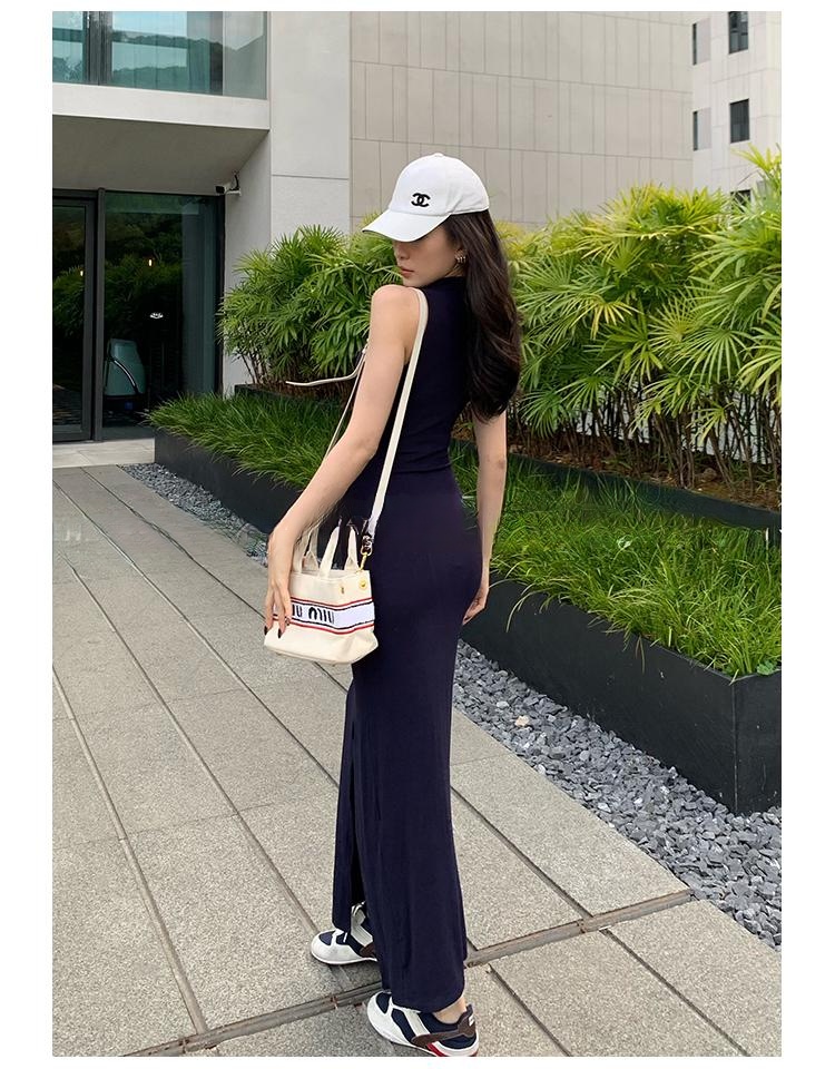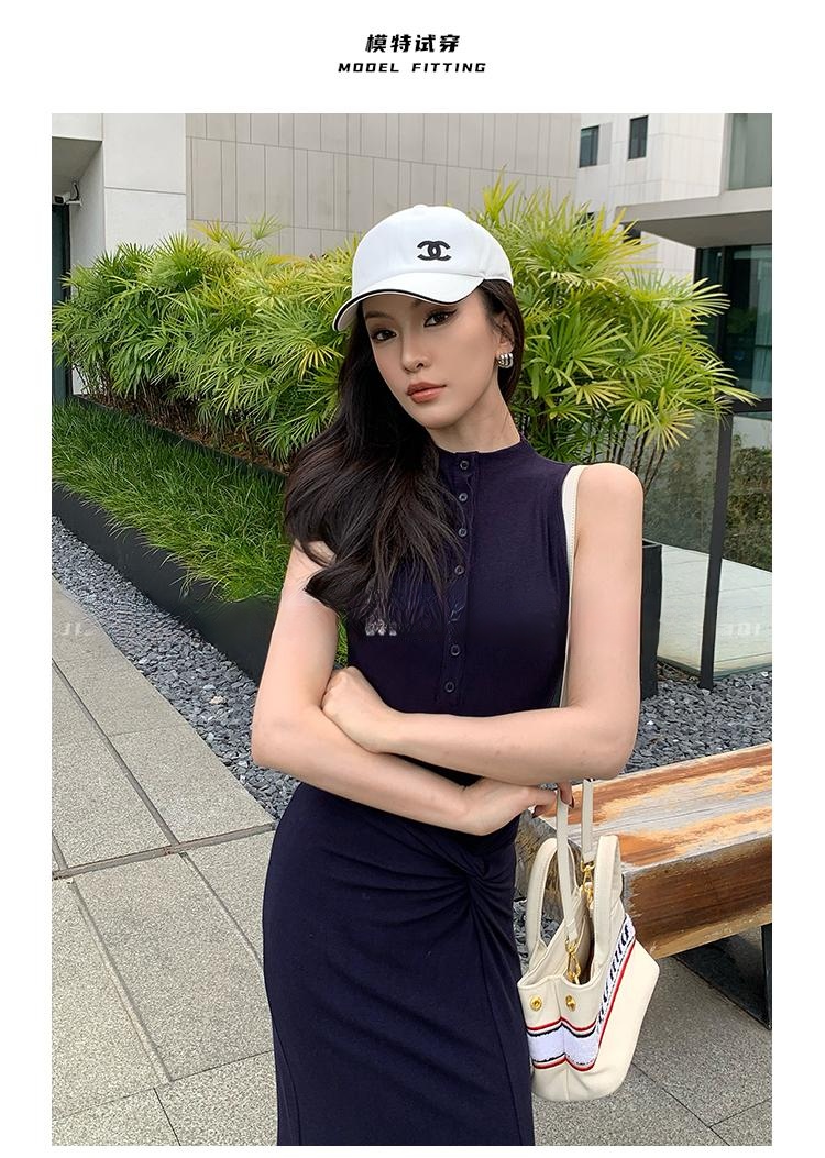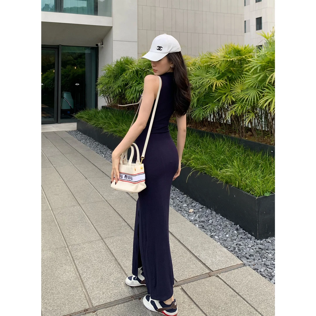 jijinqi 패션 캐주얼 바람 풀오버 섹션 민소매 허리 수축 봄 여름 일반 드레스