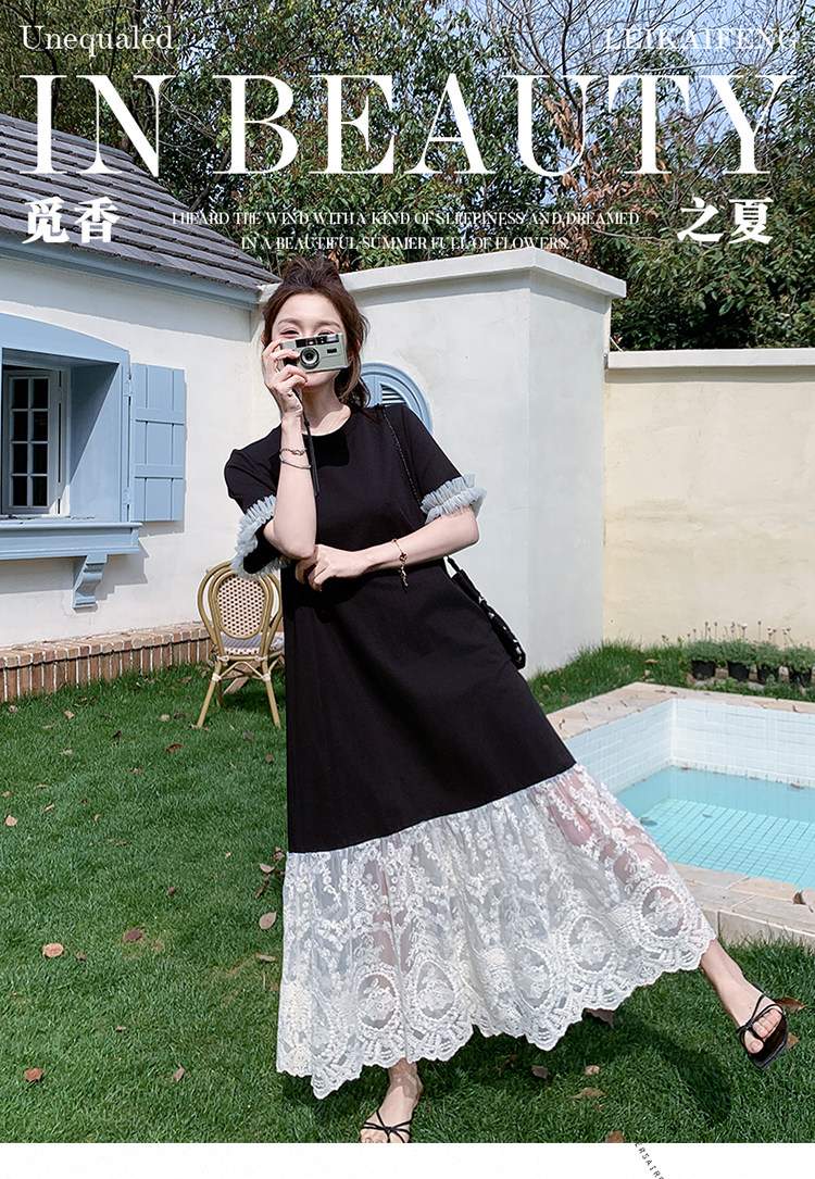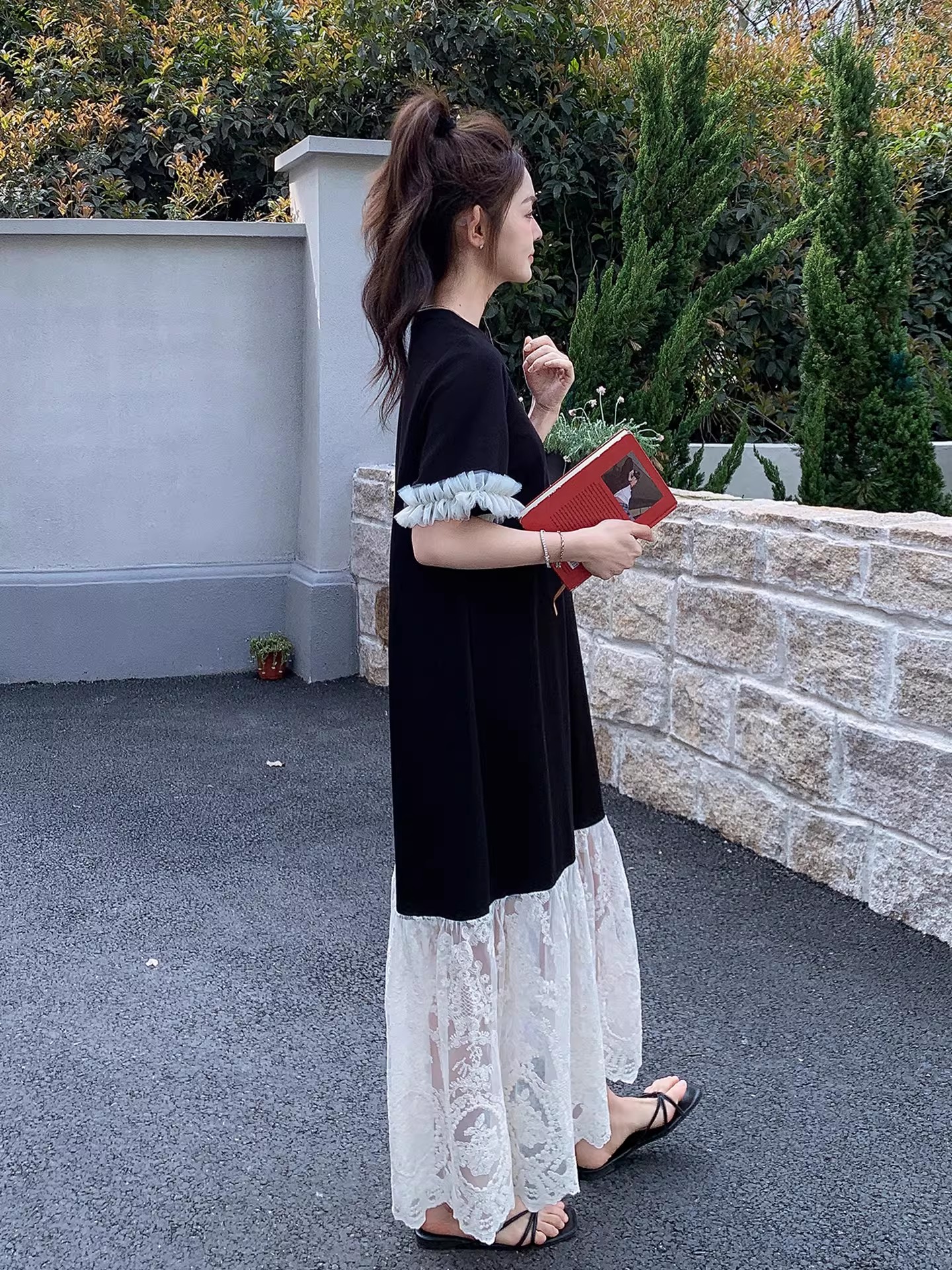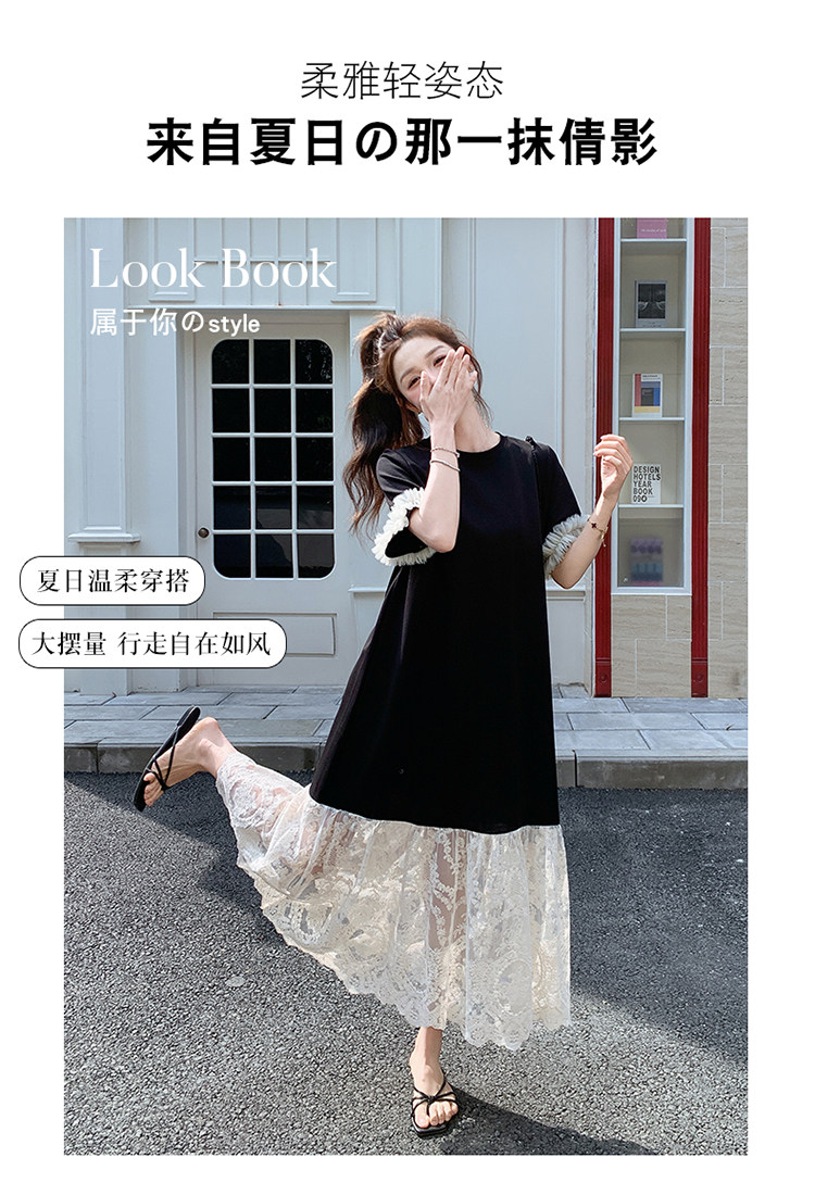 2026 여름 손 솔기 조개 자수 패치워크 슬림해 보이는 티셔츠 드레스
