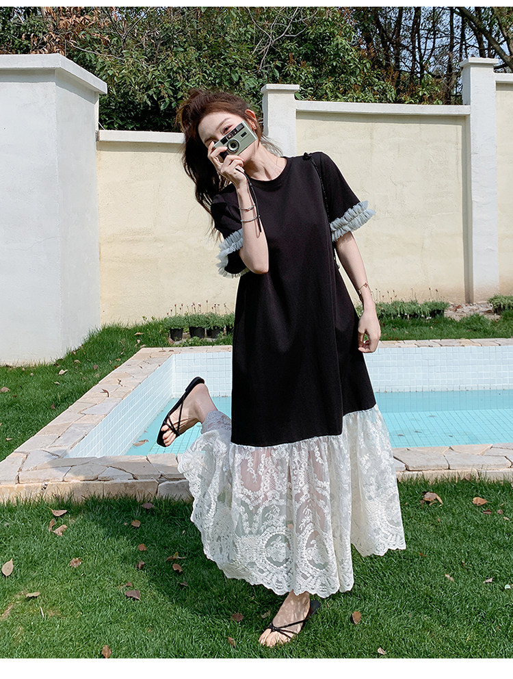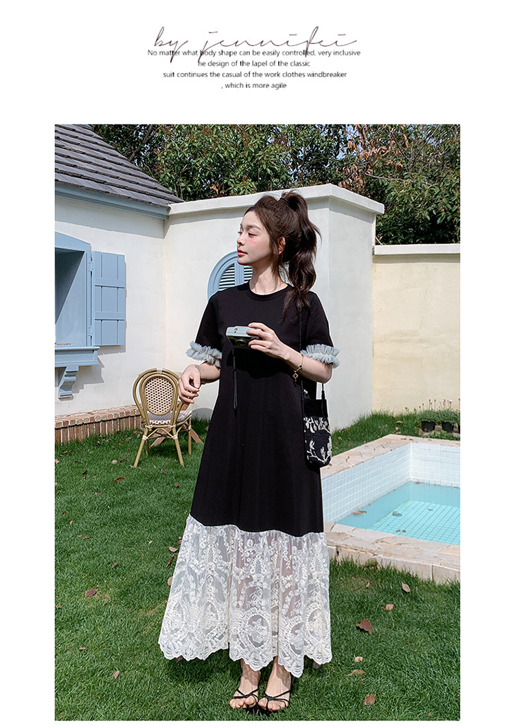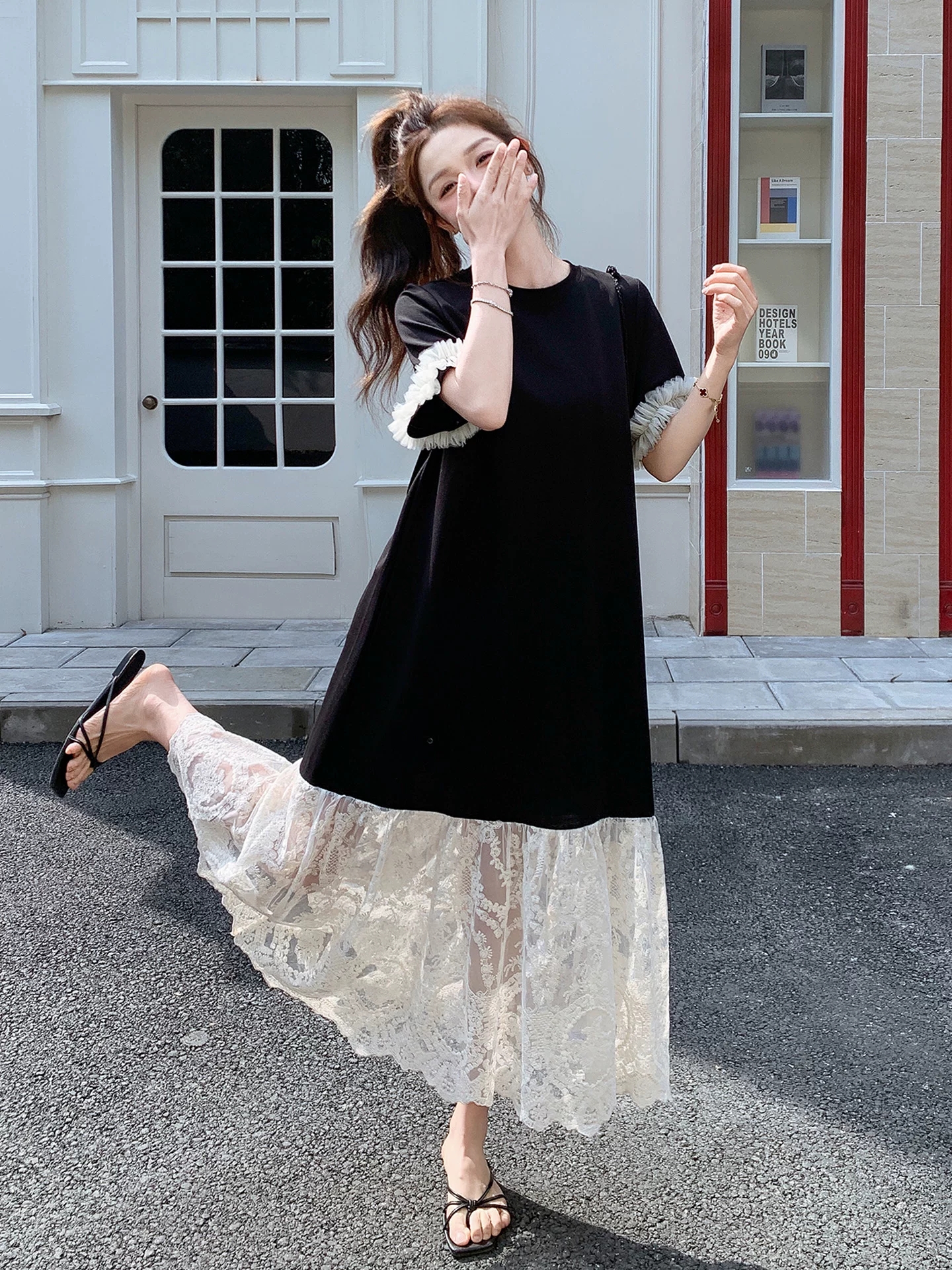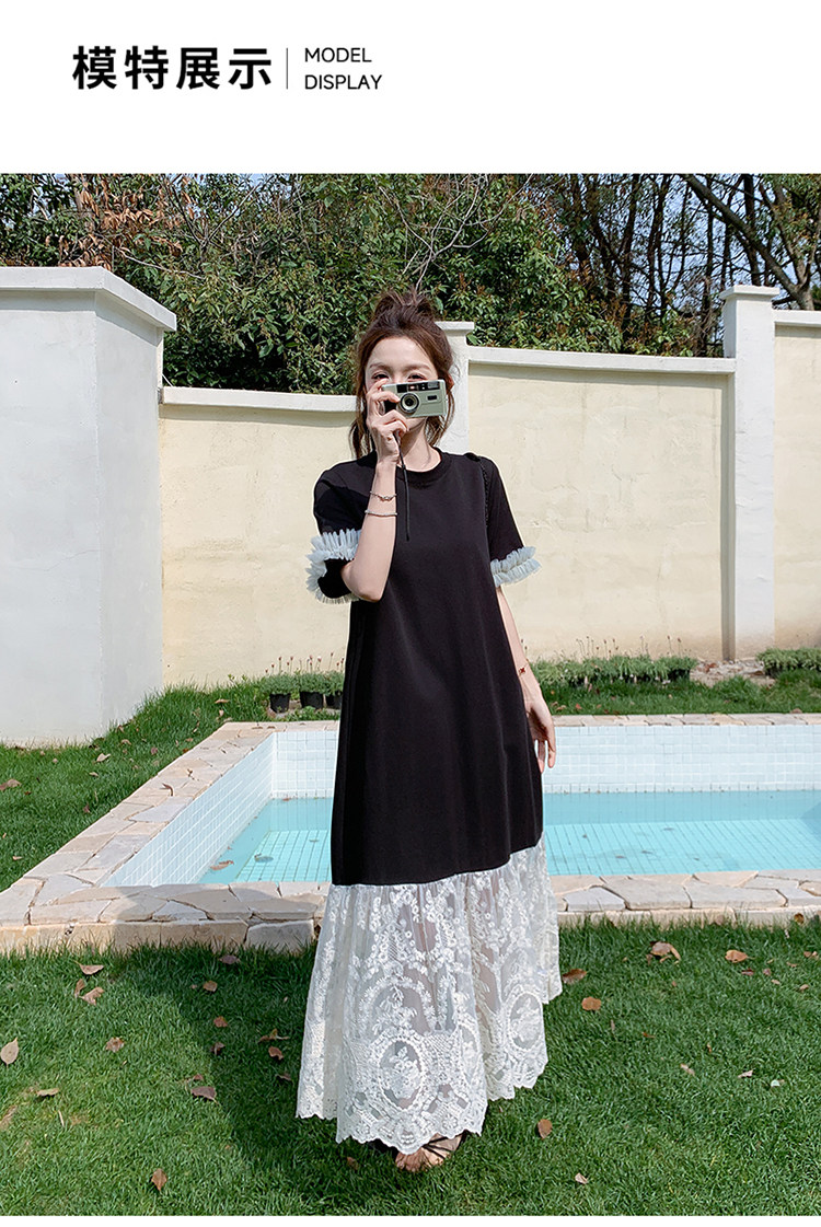 2026 여름 손 솔기 조개 자수 패치워크 슬림해 보이는 티셔츠 드레스