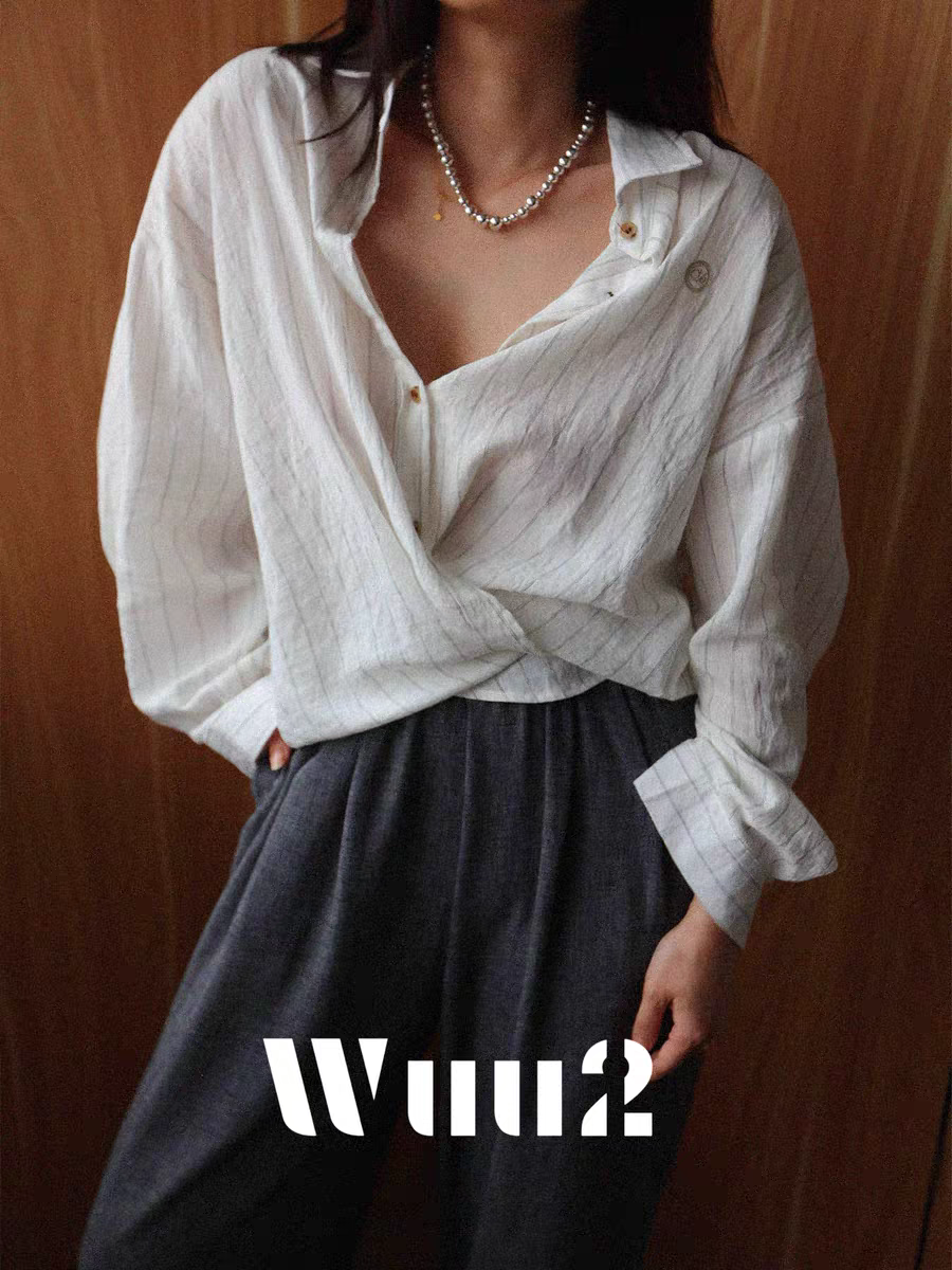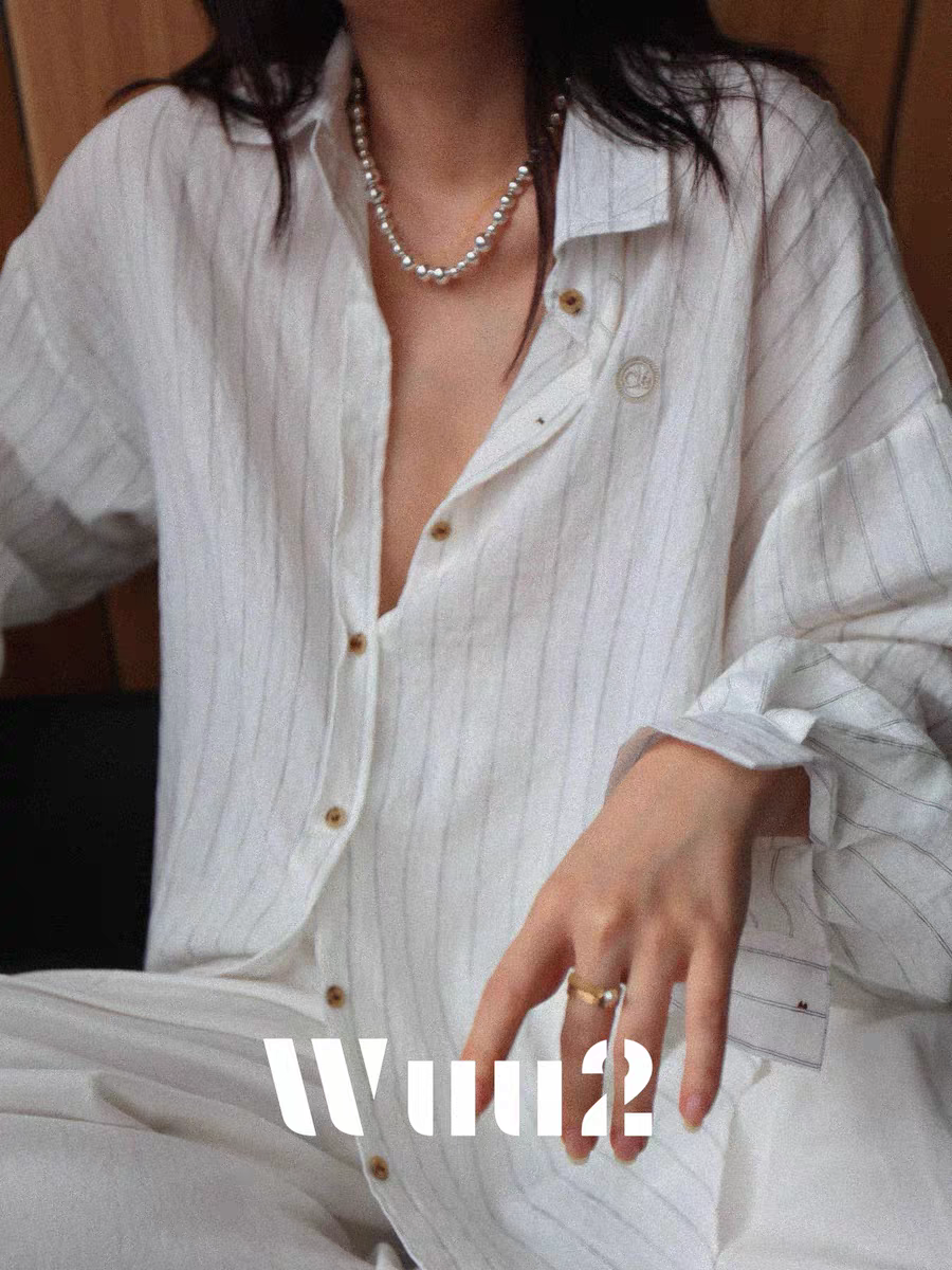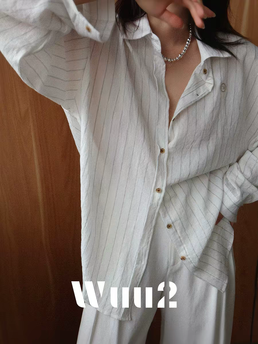 전체 아마 느슨함 센스 마이크로 주름 질감 여성 셔츠 봄 구슬 빛 단추 다용도 프로필 모양 셔츠