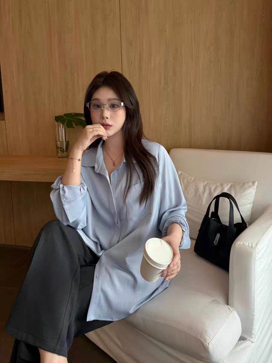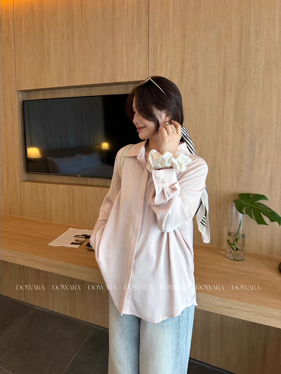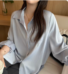 패션 긴팔 캐주얼 다용도 단색 여성 셔츠 2026 로얄 자매 팬 고급 센스 새틴 맨위