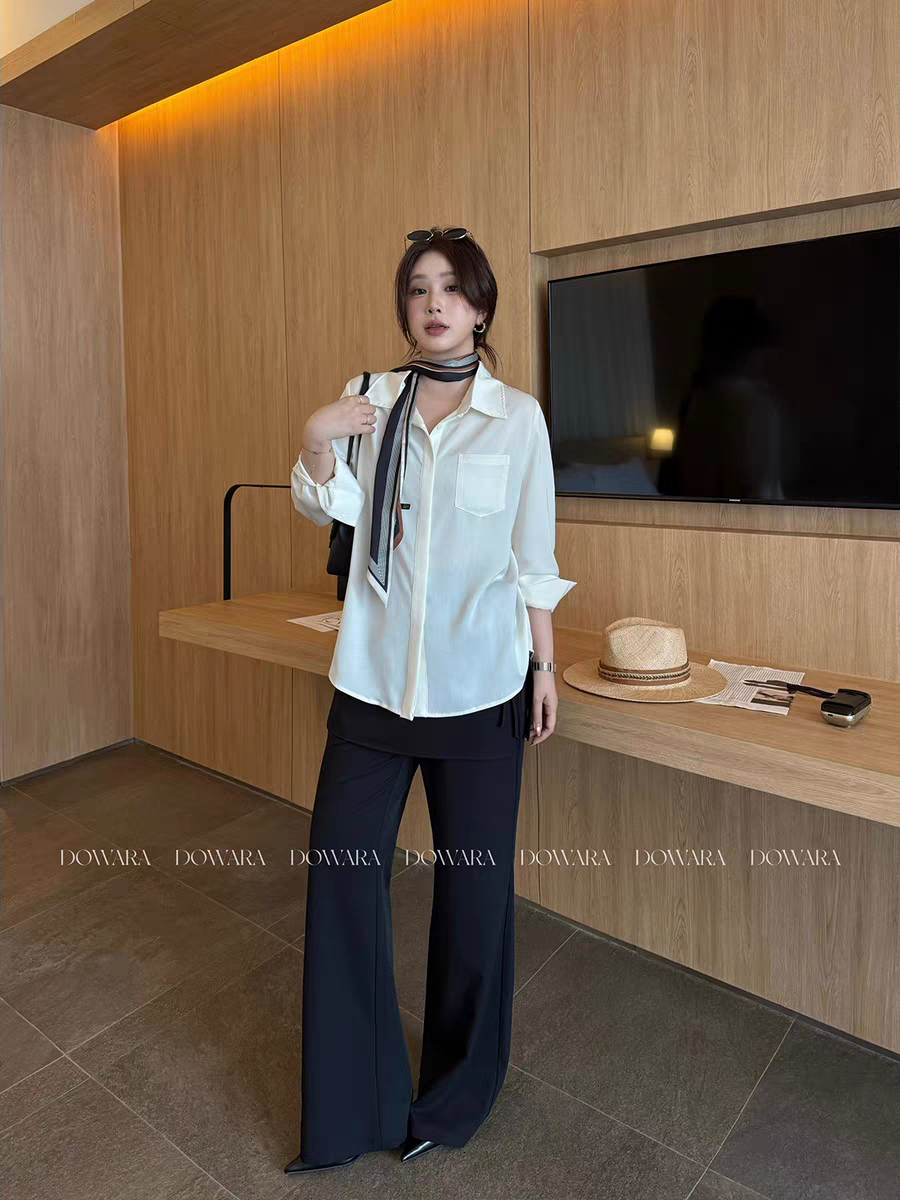 fol else 법 좋은 맨 데이 실크 양모 레이스업 리본 긴팔 셔츠 루즈핏 슬림해 보이는 맨위 여성