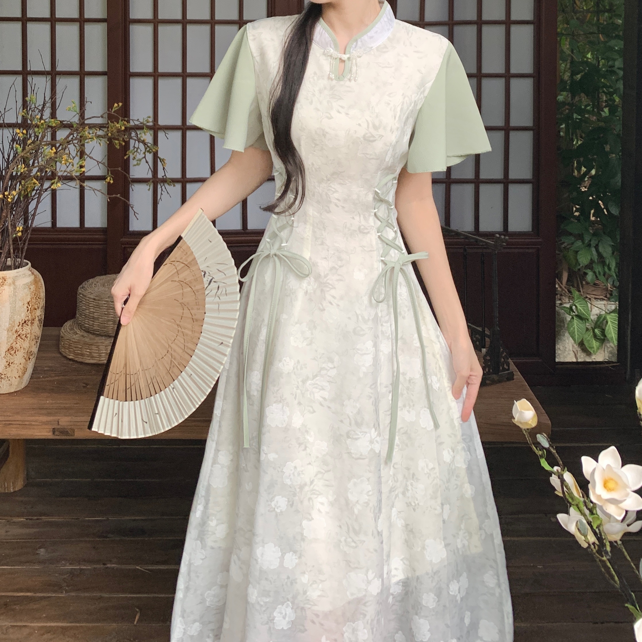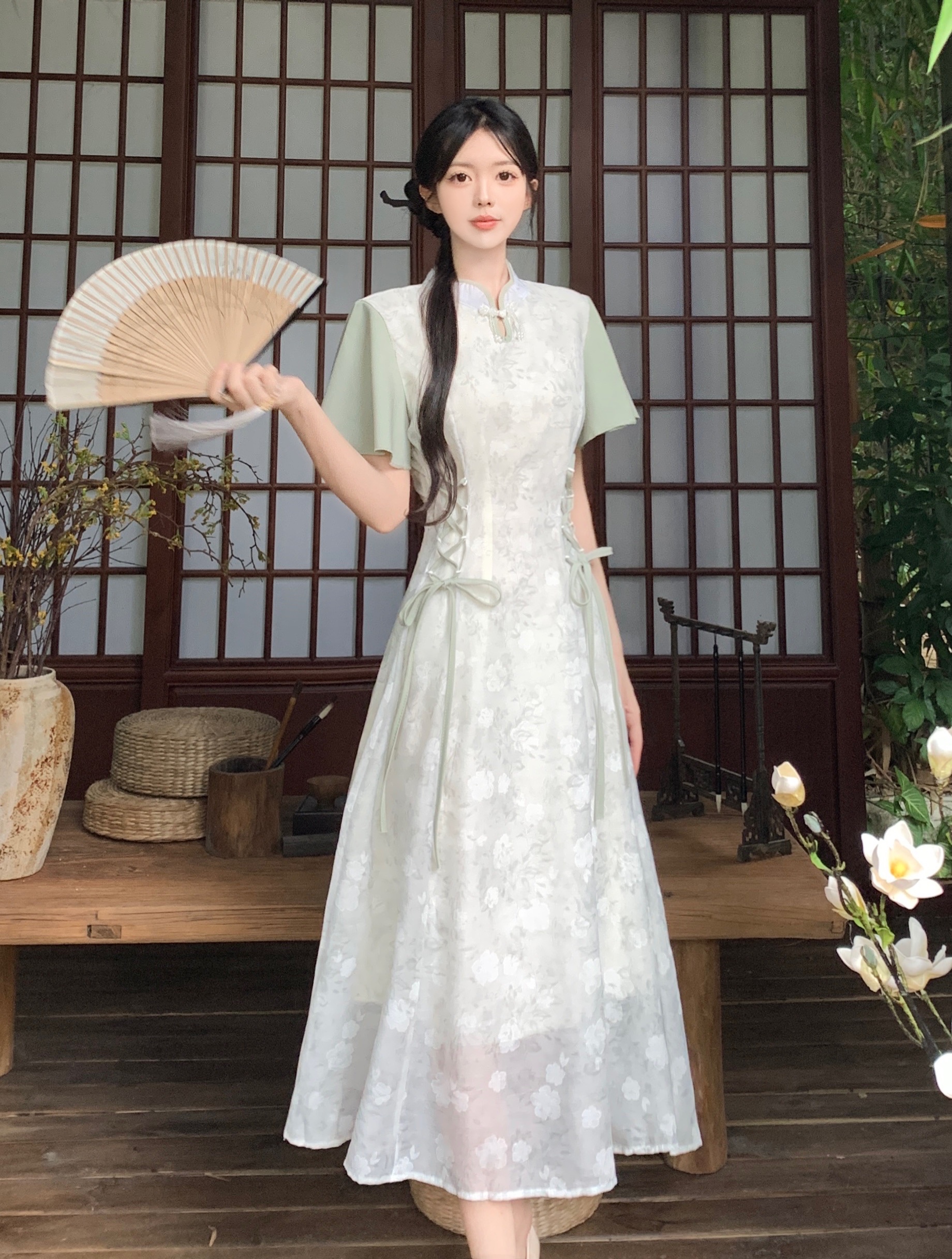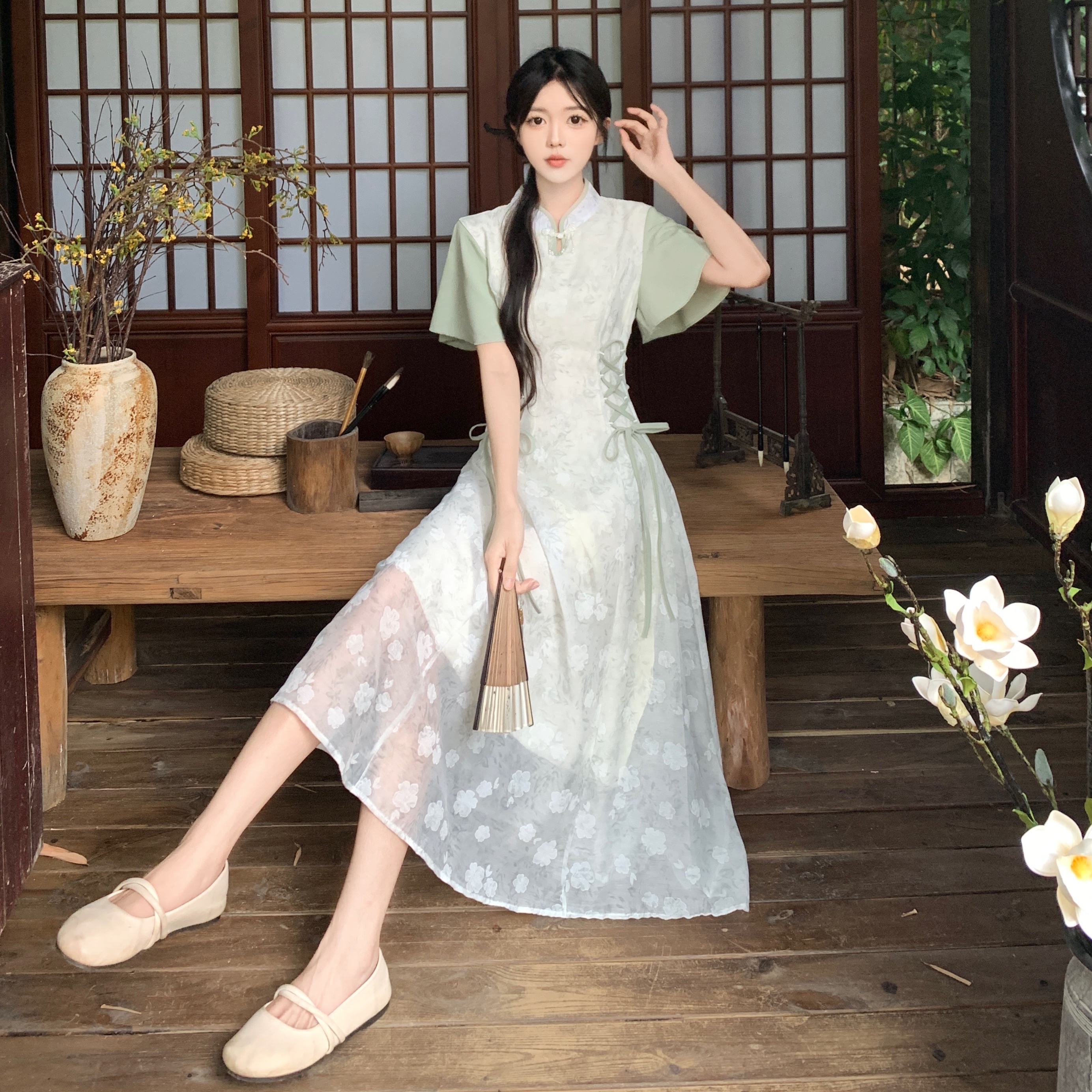 실사 빅 사이즈 여성 의류 새로운 중식 개선 치파오 영 섹션 드레스 여름 새로운 국풍 젠 치마