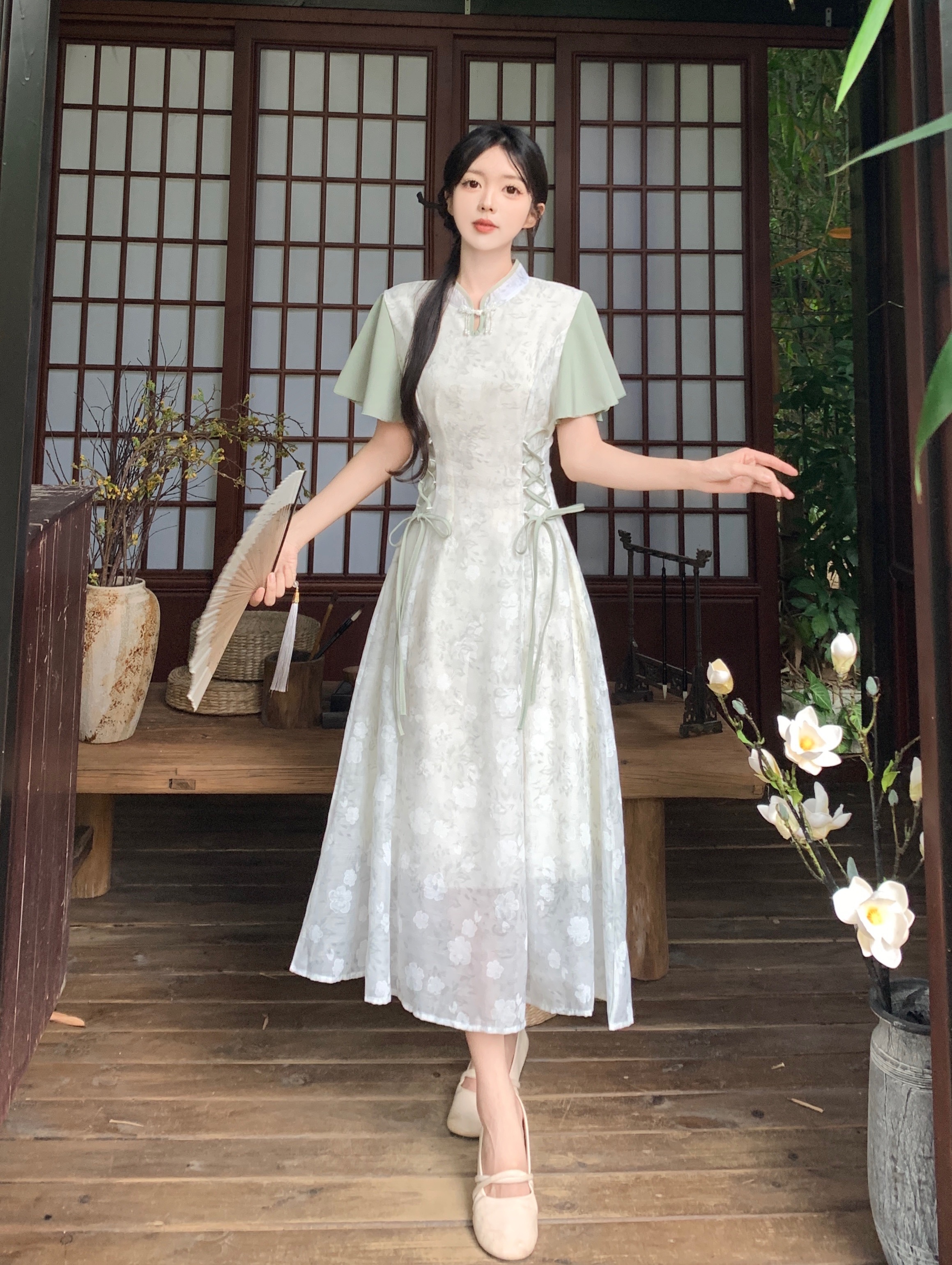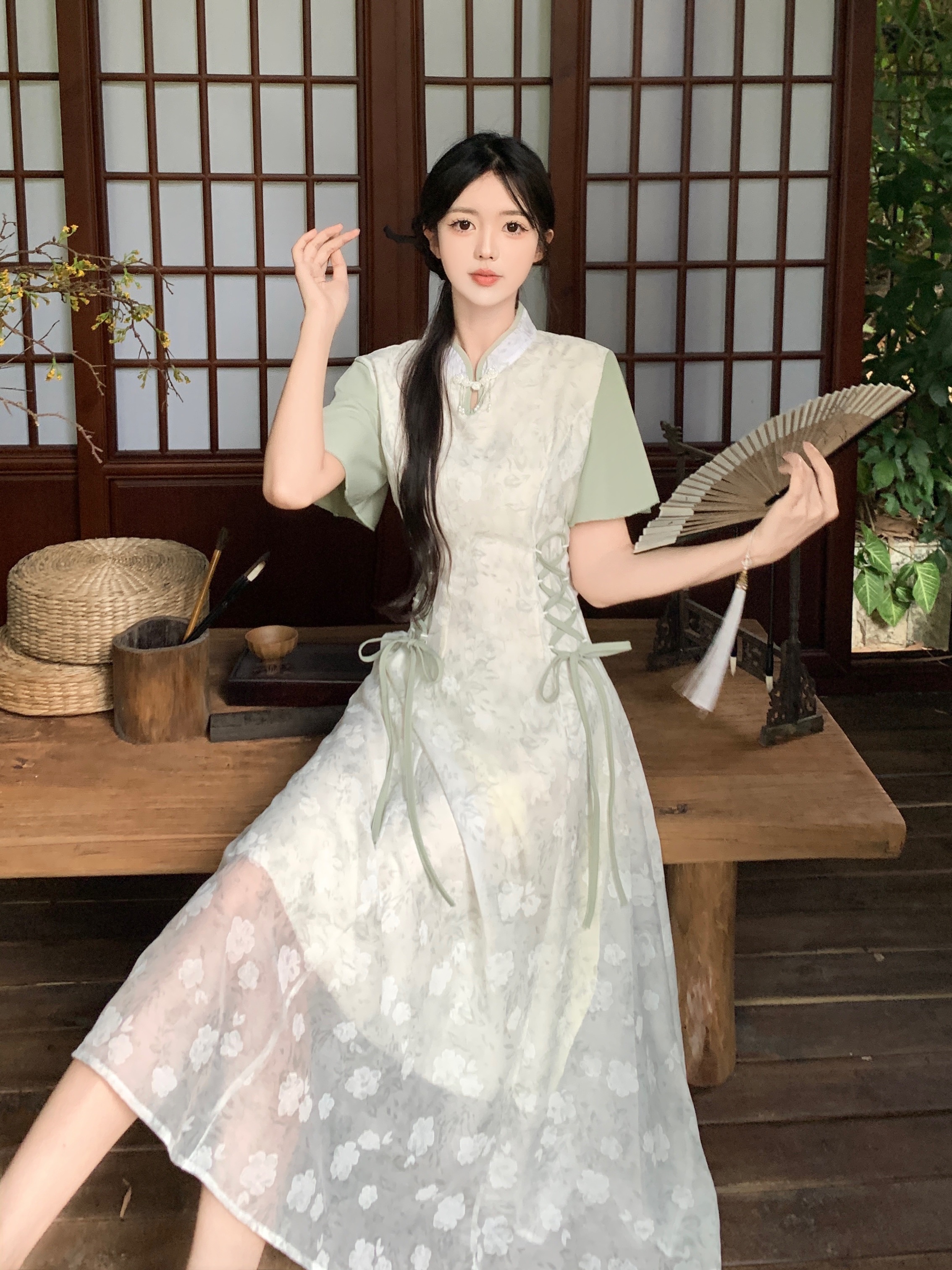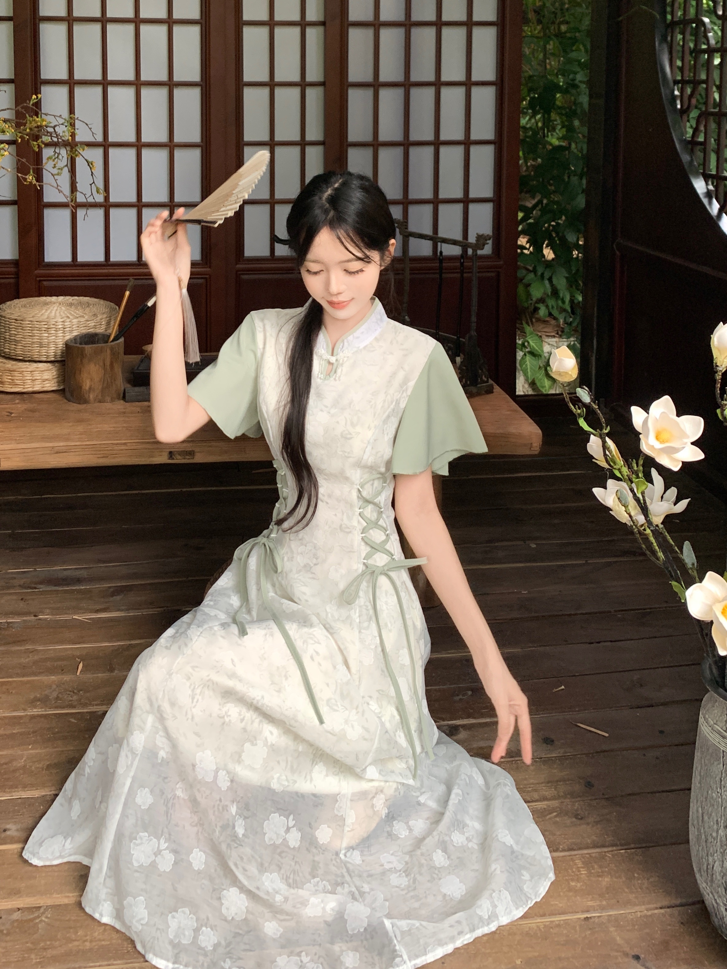 실사 빅 사이즈 여성 의류 새로운 중식 개선 치파오 영 섹션 드레스 여름 새로운 국풍 젠 치마